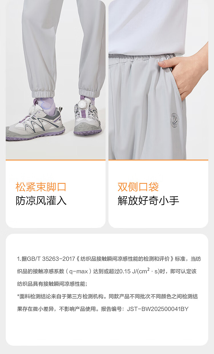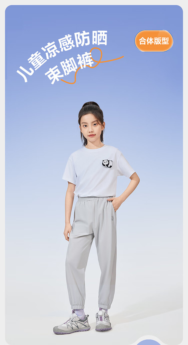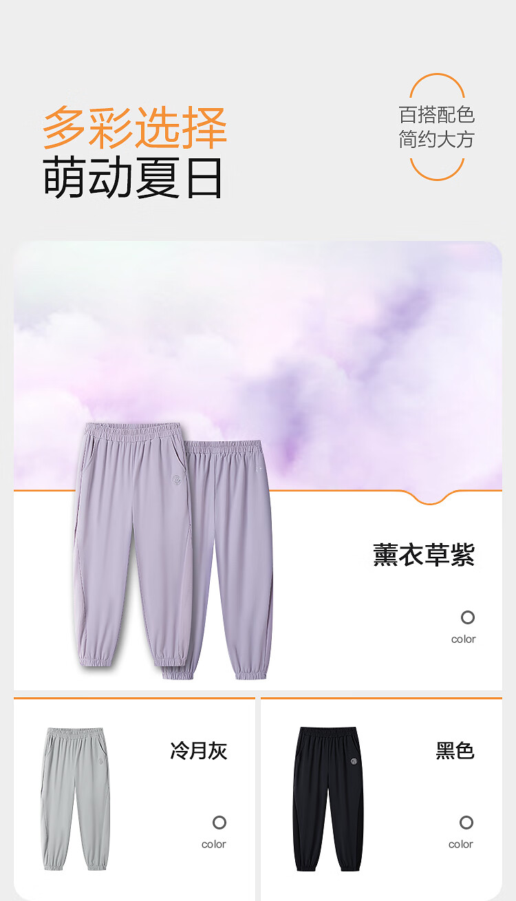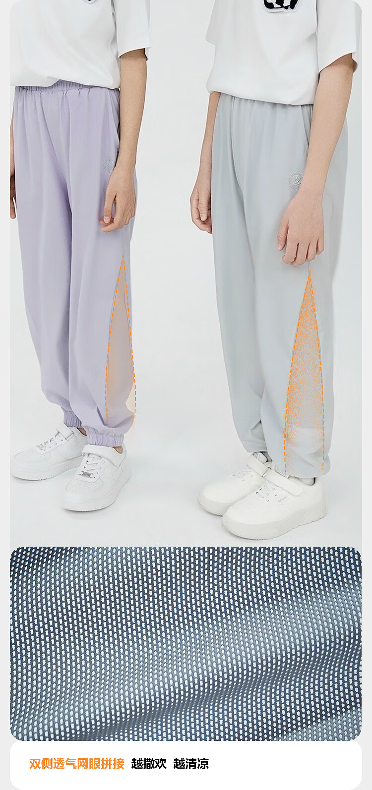 Bosideng 25 new summer sun protection trousers for boys and girls UPF100+ sports cool trousers lavender purple 6001 110/53