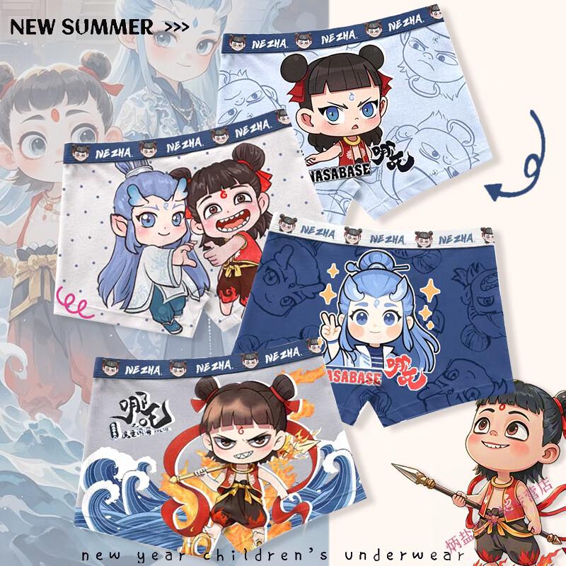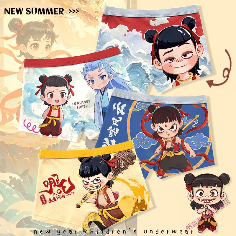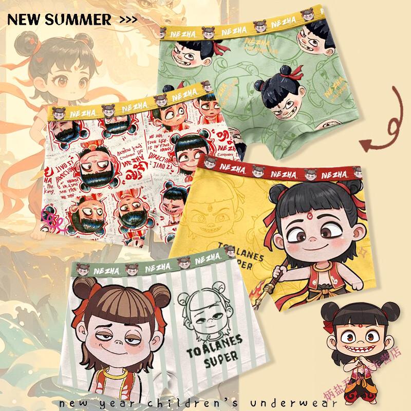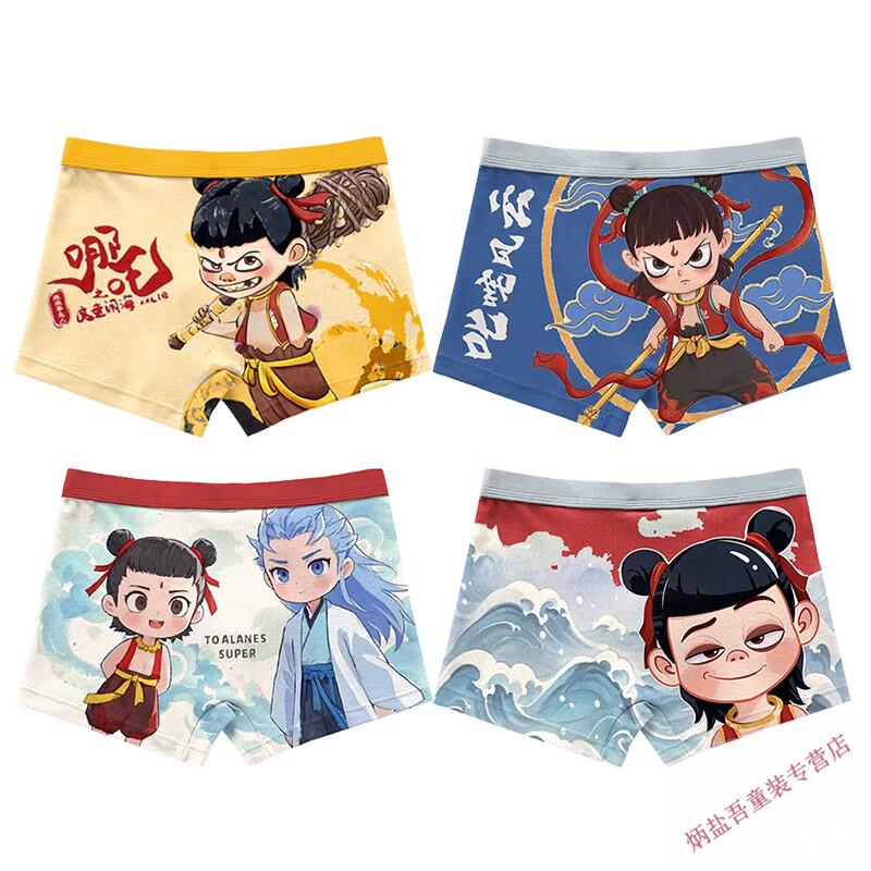 G.duck children's underwear pure cotton type A boxer briefs for boys new style Nezha Ao Bingzhong big children's cotton boxer briefs do not pinch the butt ST-60637 Nezha Ao Bing pack 4 pieces 165 S size (weight 30-40Jin Jin equals 0.5 kg)