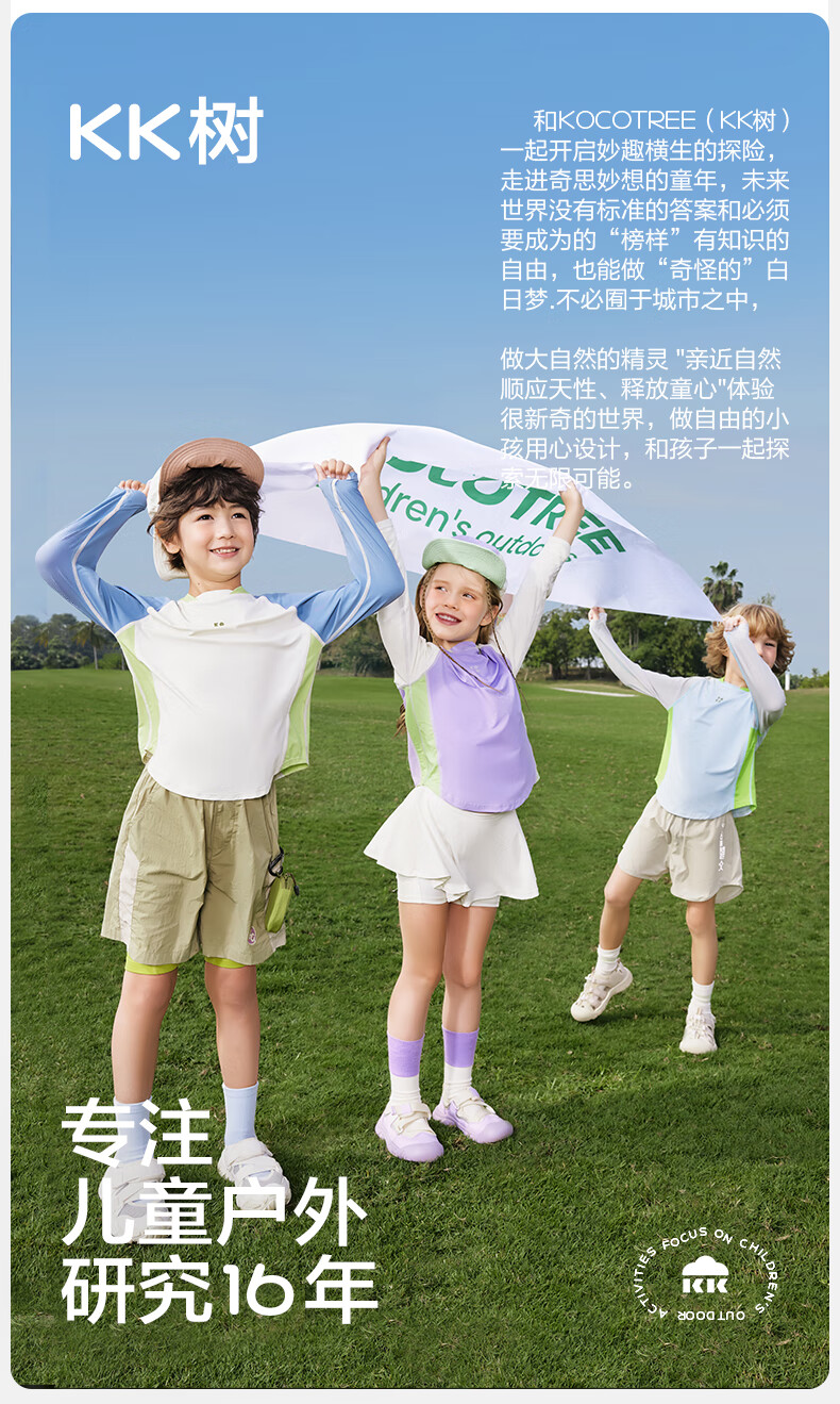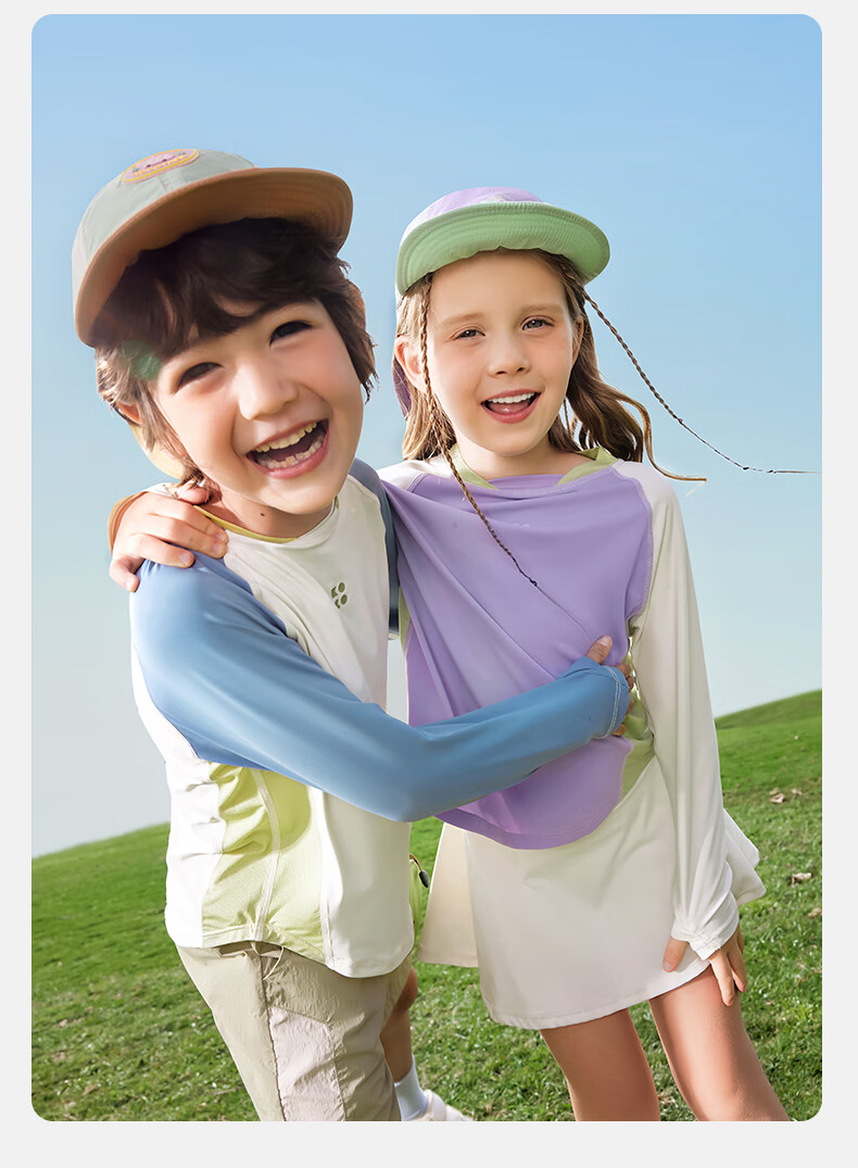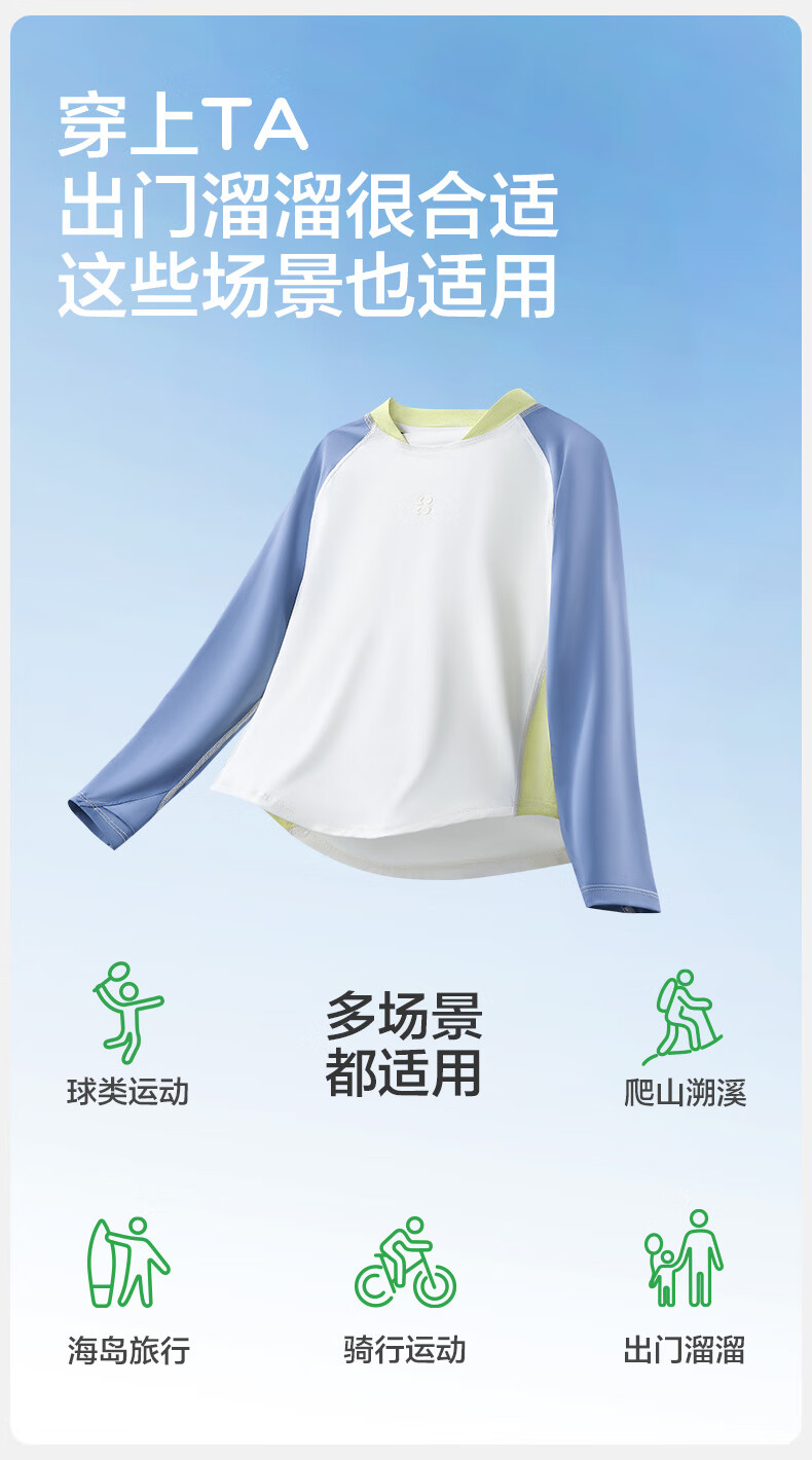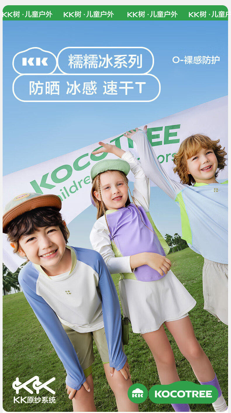 KocotreeKK tree original yarn children's sun protection clothing, UV protection, ice silk cool sun protection clothing for boys and girls, 2025 summer new style, clear sky blue 110, height 95-110, weight 25-35