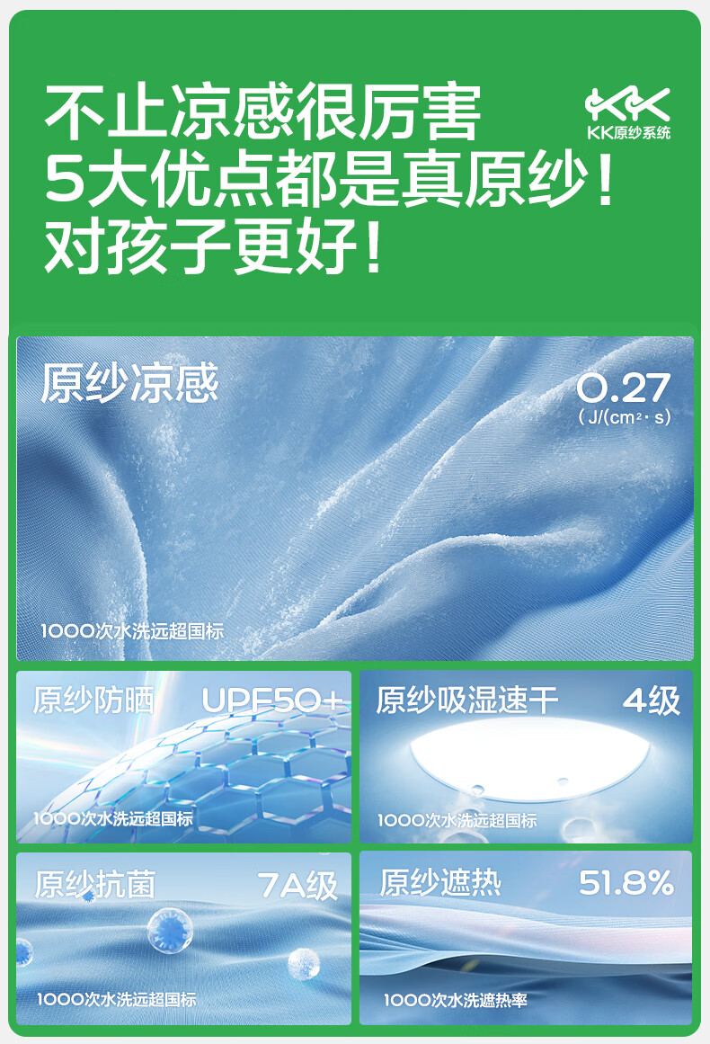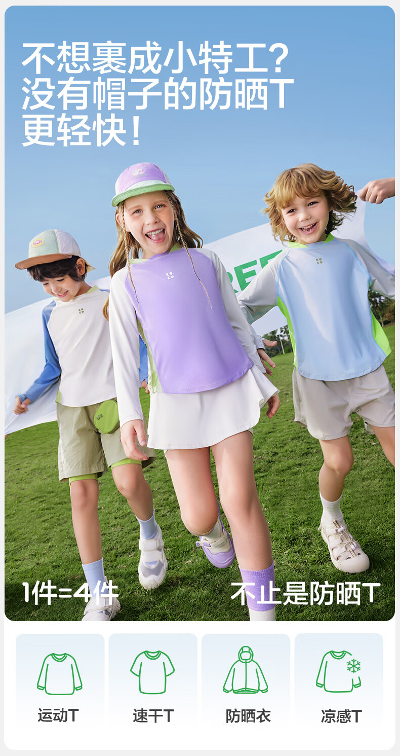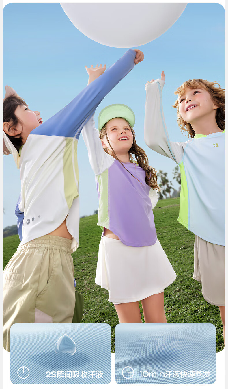 KocotreeKK tree original yarn children's sun protection clothing, UV protection, ice silk cool sun protection clothing for boys and girls, 2025 summer new style, clear sky blue 110, height 95-110, weight 25-35