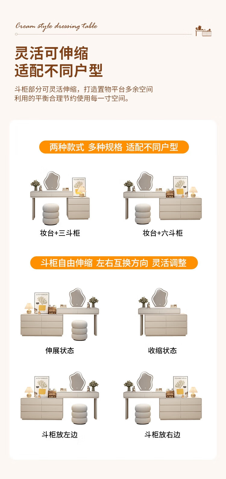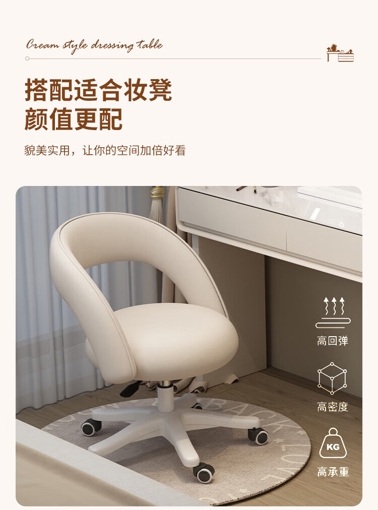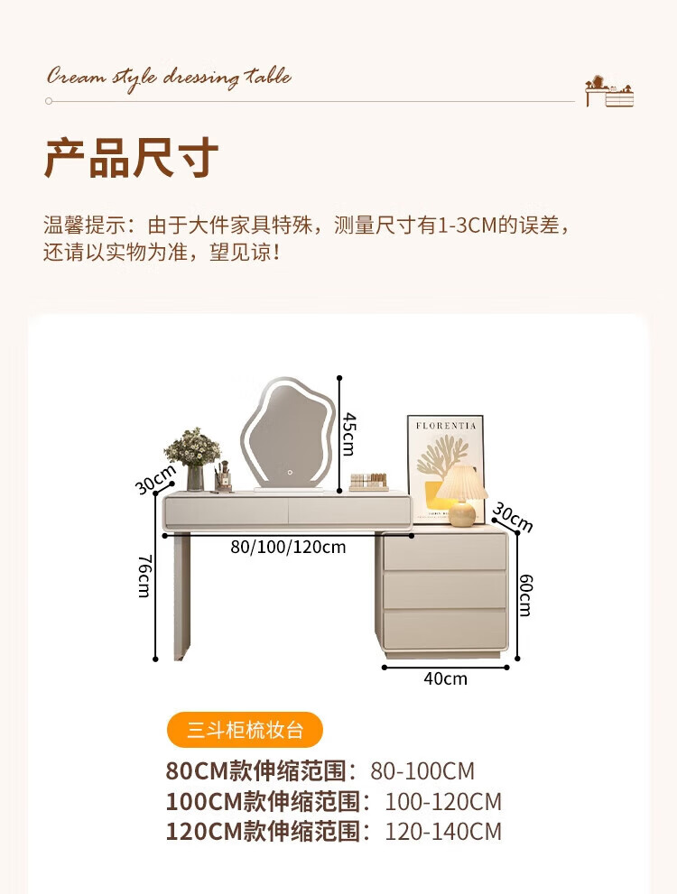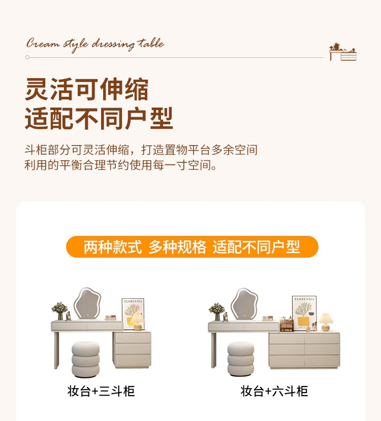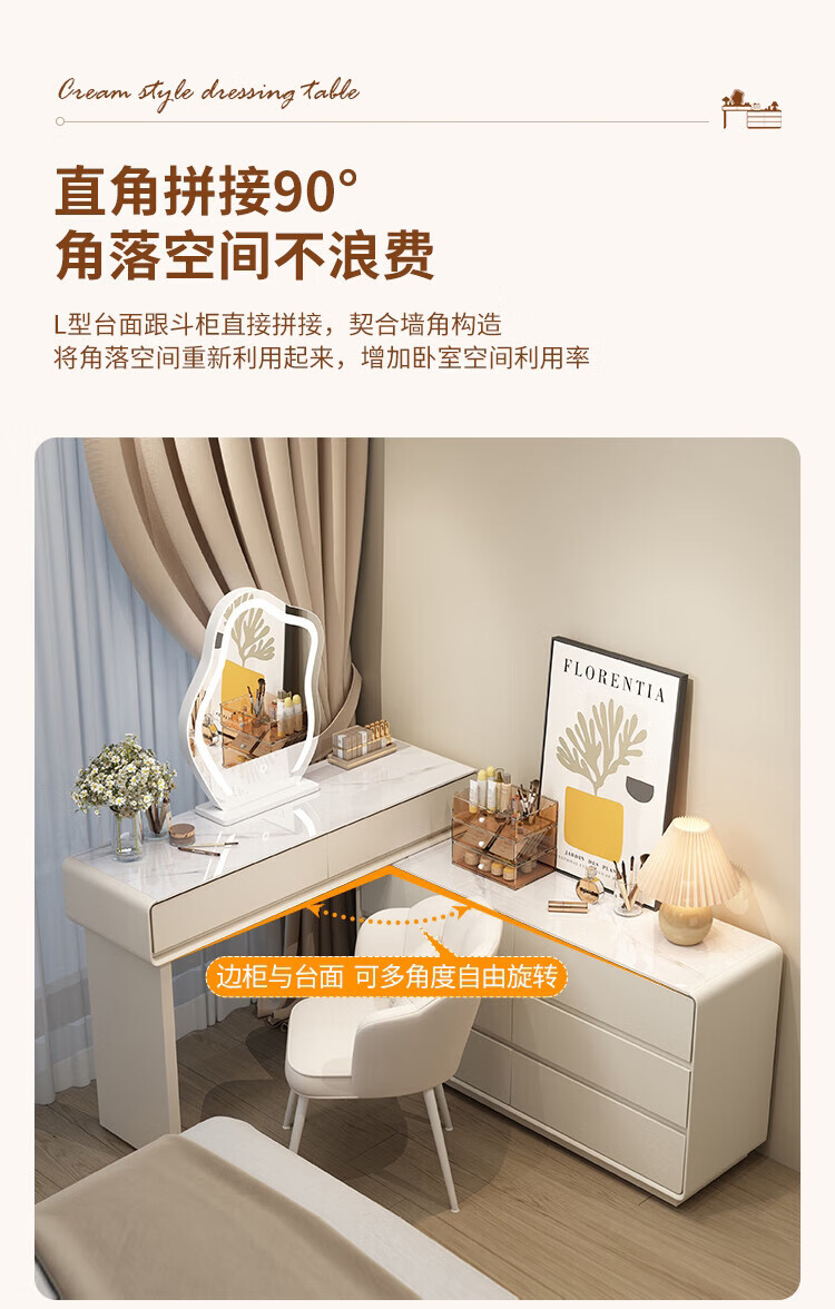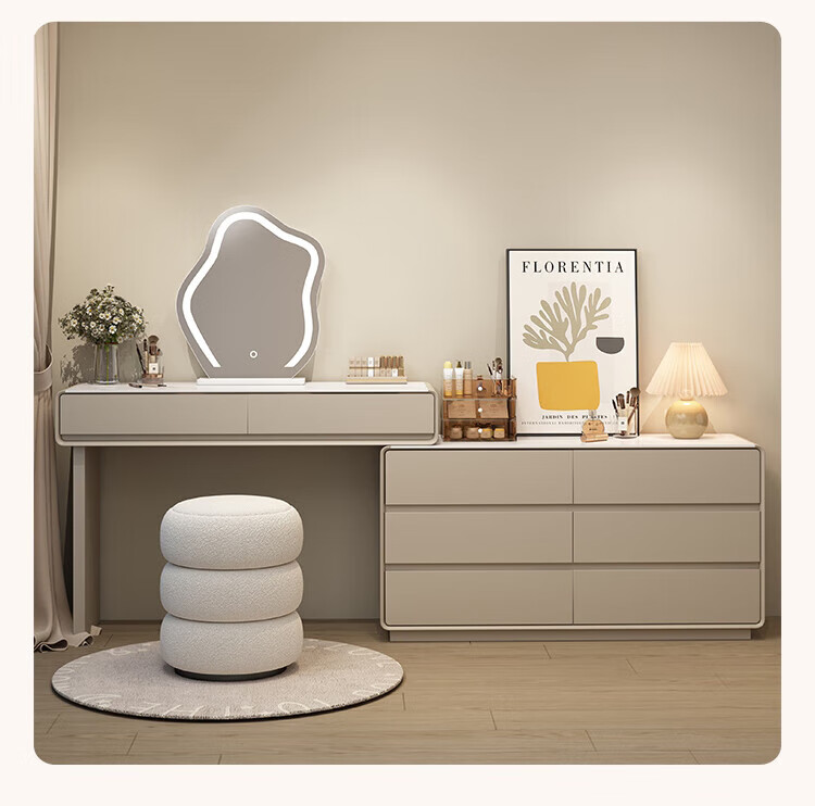 Xinang Dressing Table Modern 2025 Cream Style Slate Bedroom Simple New Light Luxurious Style Solid Wood Dressing Table and Cabinet In One 80cm White + Three Drawer Cabinet + Cloud Mirror + Petal Chair
