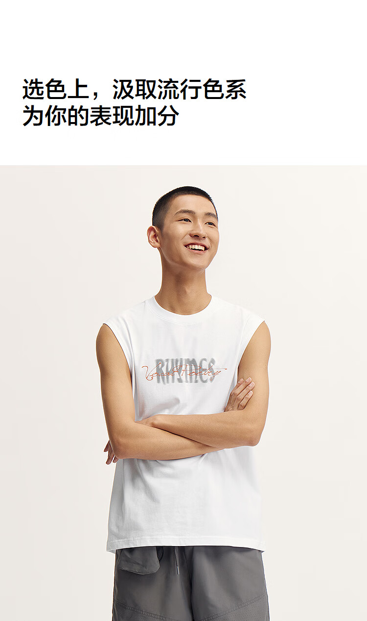 Semir vest men's wide shoulder sleeveless t-shirt teenagers loose sports vest summer inner top trendy print bleached 10007 M