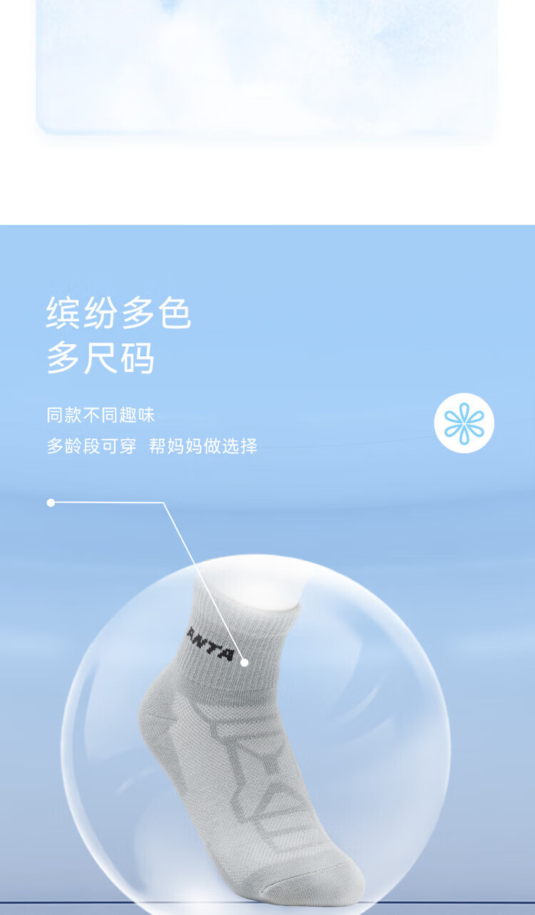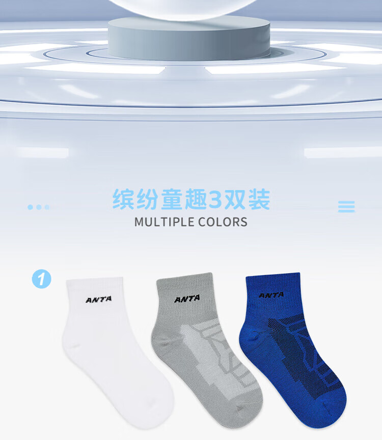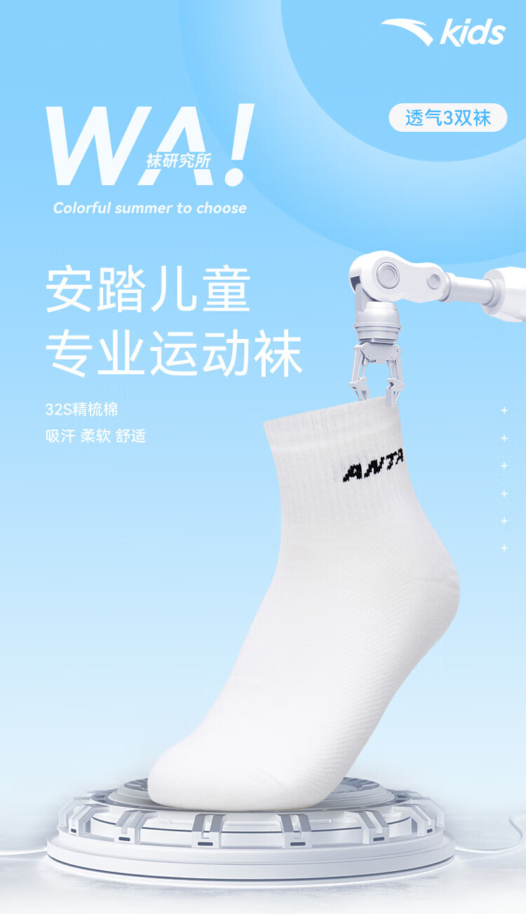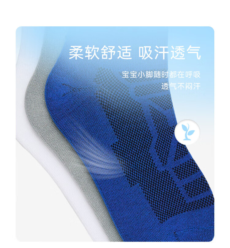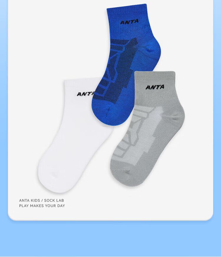 Anta three pairs of children's socks for boys and girls in spring and summer, skin-friendly, comfortable and breathable sports cotton socks for children, mid-calf socks - boys, white/black/grey, 3 pairs, 5-7 years old (M)