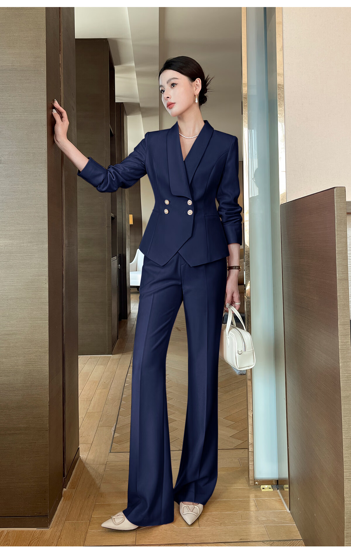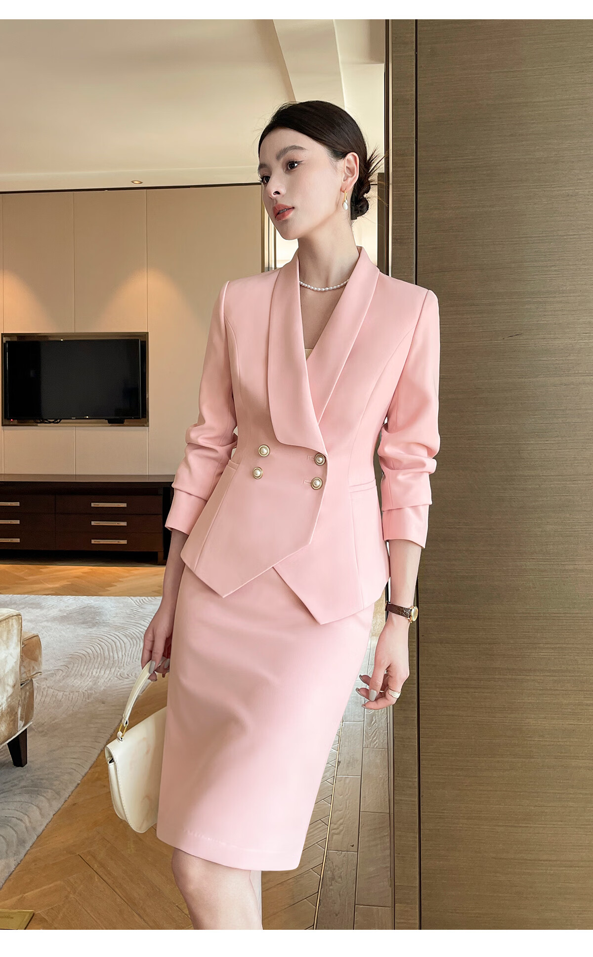 Baiyan high-end suit jacket female broadcast host lecturer work clothes fashionable temperament socialite professional wear formal wear light luxury apricot long-sleeved suit + skirt XL