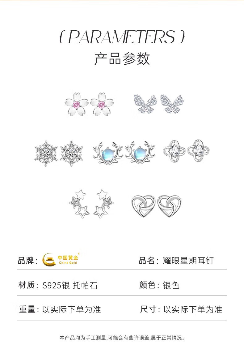 China Gold S925 Silver Dazzling One Week Earrings Women's Weekly Earrings Practical Birthday Gifts for Girlfriends and Wife Dazzling Weekly Earrings *Shipping from Yakura* Same Day/Next Day Delivery