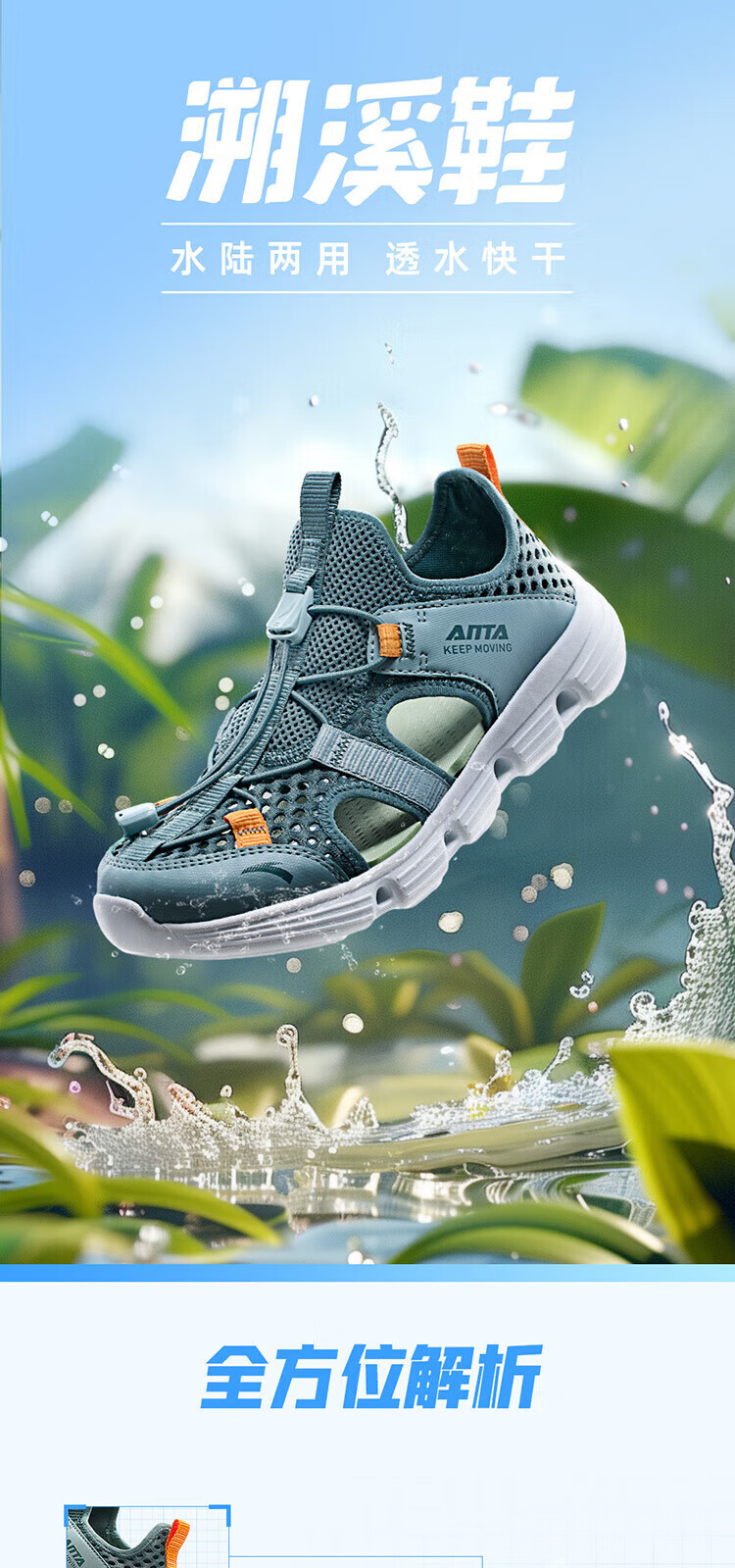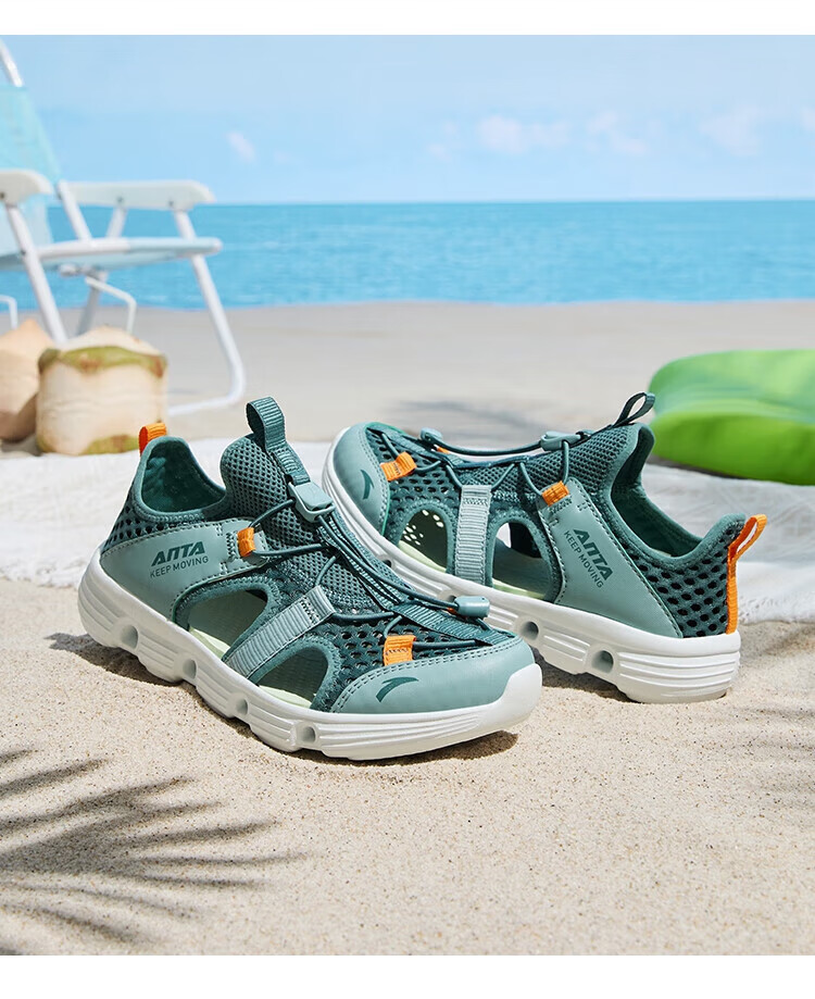ANTA Children's Sandals Men's and Women's Shoes 2026 Summer New Breathable Water and Land Tracing Shoes Beach Shoes Men's Sage Green/Fish Eye Green-5 39 Shoe Inner Length 24.5cm
