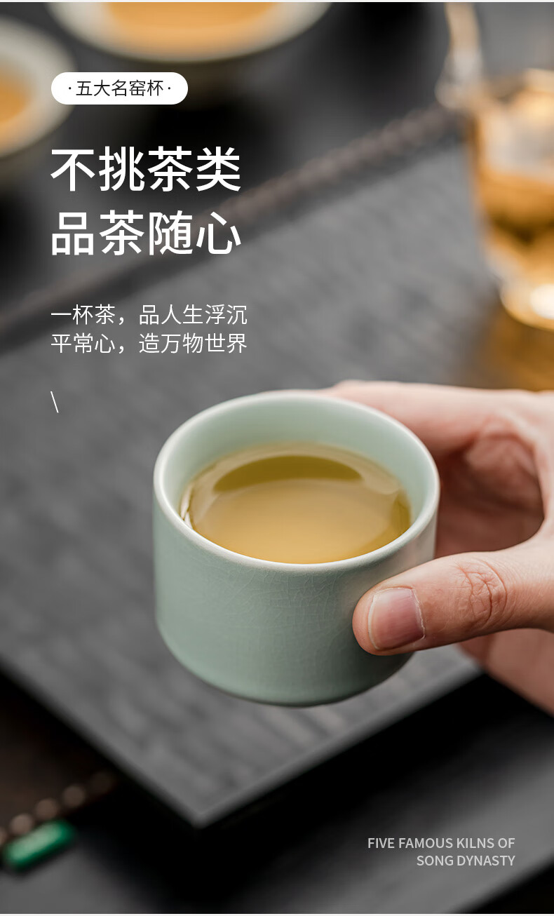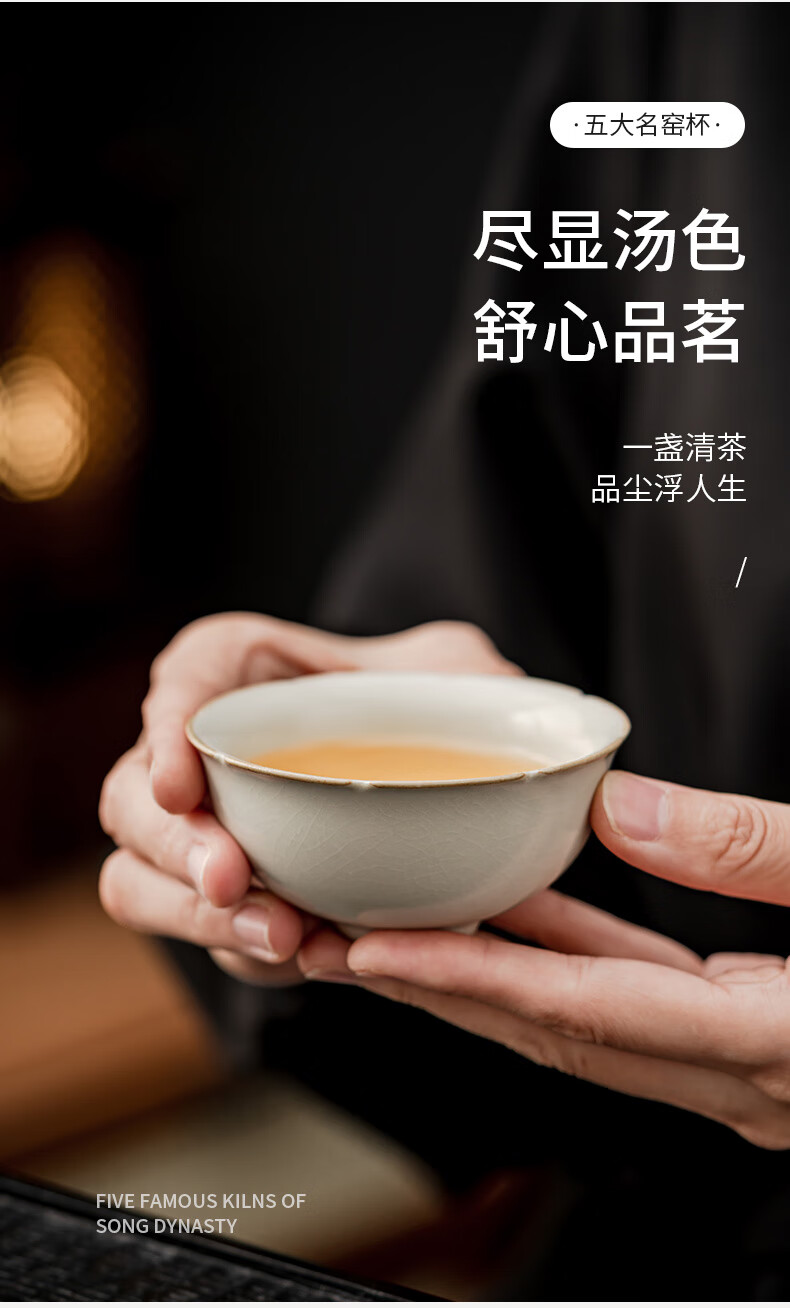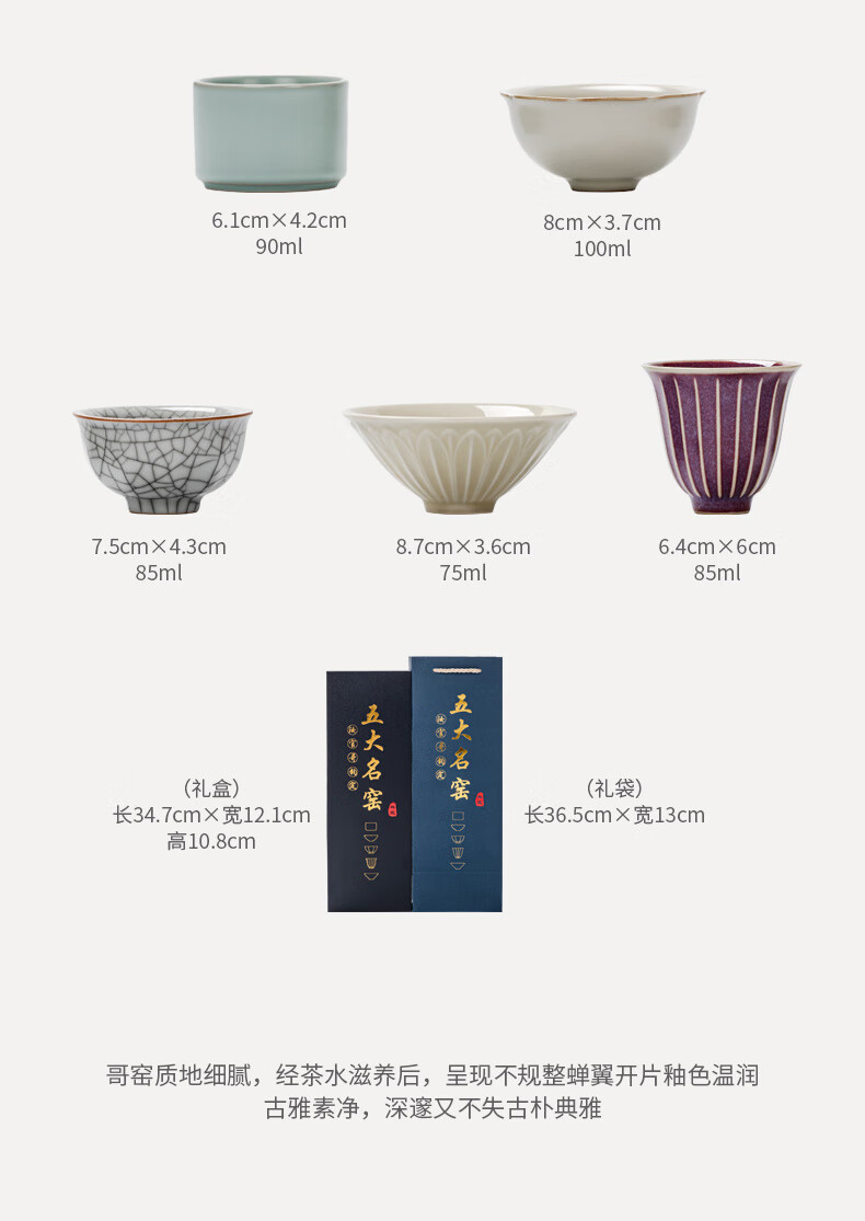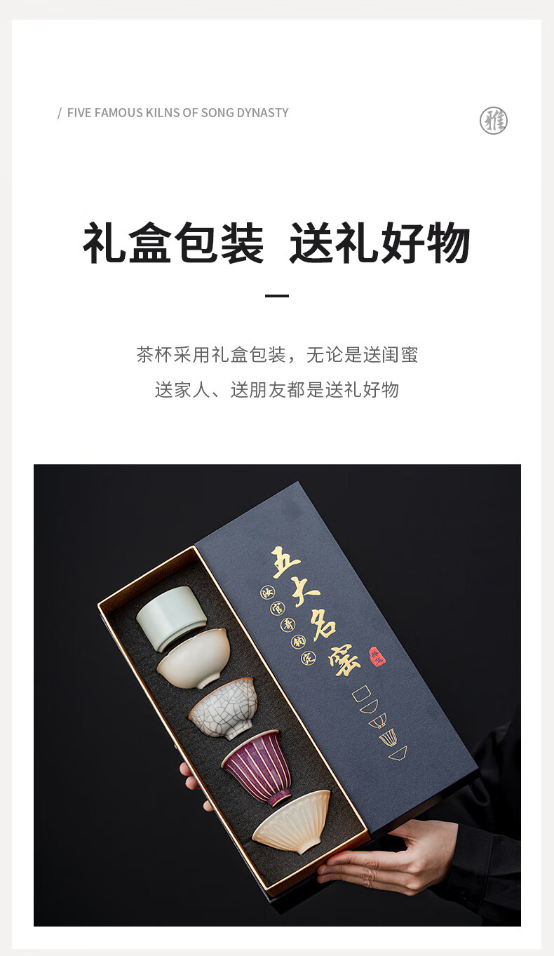 Yundi's Five Famous Kilns Tea Cup Set Chinese-style High-end Ceramic Master Single Cup Tea Cup Tea Cup Tea Set Gift Box Souvenir Collection-Five Famous Kiln Cups-Gift Box