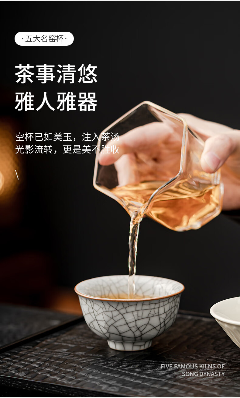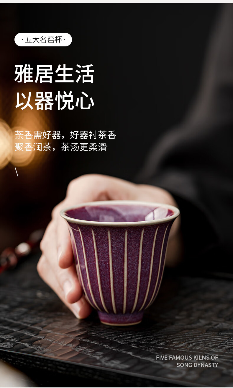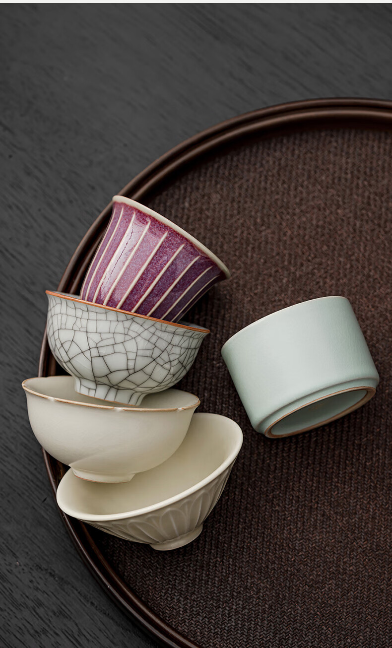 Yundi's Five Famous Kilns Tea Cup Set Chinese-style High-end Ceramic Master Single Cup Tea Cup Tea Cup Tea Set Gift Box Souvenir Collection-Five Famous Kiln Cups-Gift Box