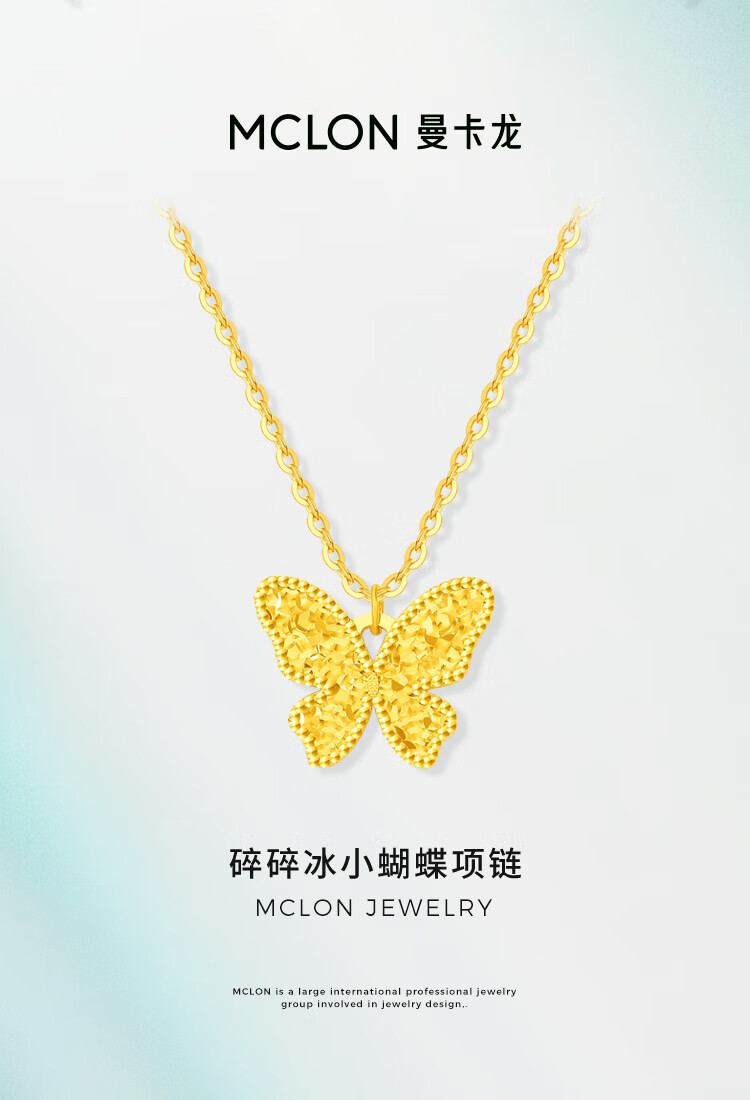 Mankalong 18K gold necklace for women, crushed ice butterfly necklace, clavicle chain is smart and shiny, a birthday gift for your girlfriend, crushed ice butterfly necklace