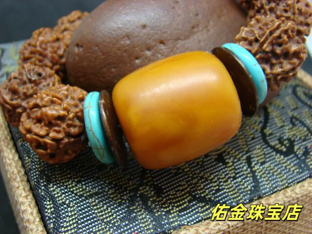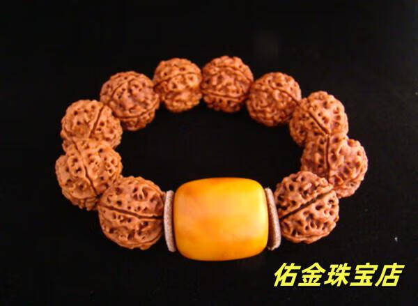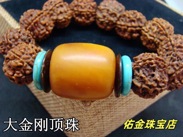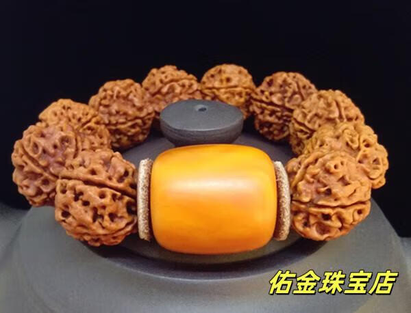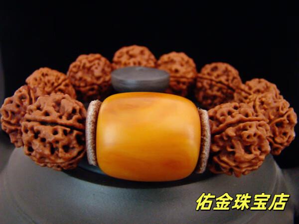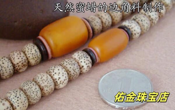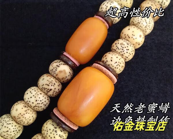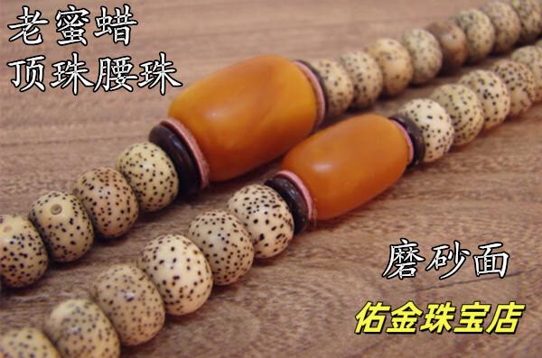 Feng Ruihuang Natural Old Beeswax Bucket Beads Loose Beads Round Beads Spaced Beads Star and Moon King Kong Top Beads with Bead Waist Beads Bracelet Bodhi Text Play Old Beeswax Diameter 16 Height 16mm (single)