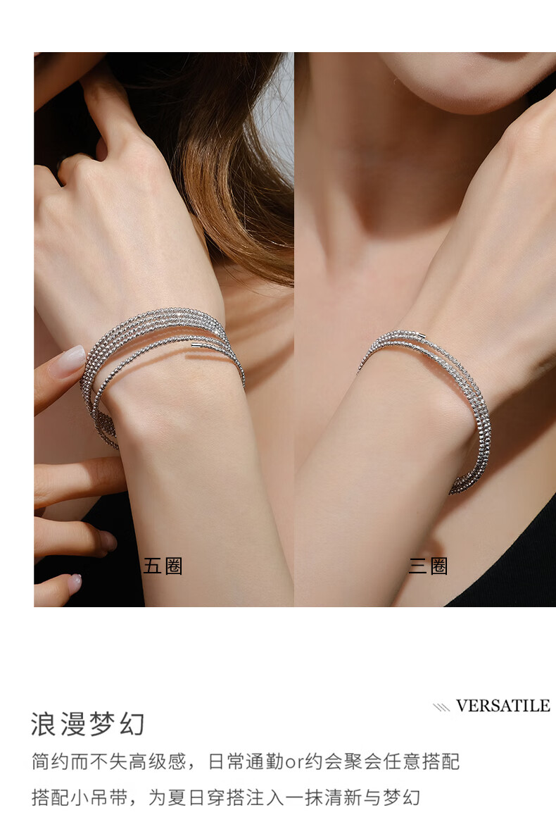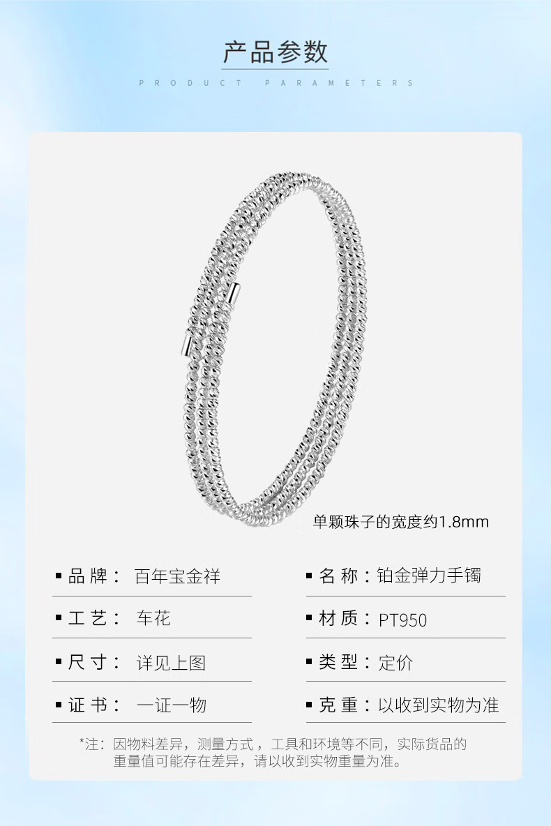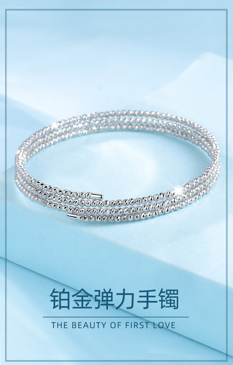 Centennial Baojinxiang pt950 platinum bracelet for women, elastic laser bouncy bead bracelet, flashing round bead platinum bracelet, gift bracelet, gold 7.3-7.5 grams, three-circle bracelet inner diameter 55mm