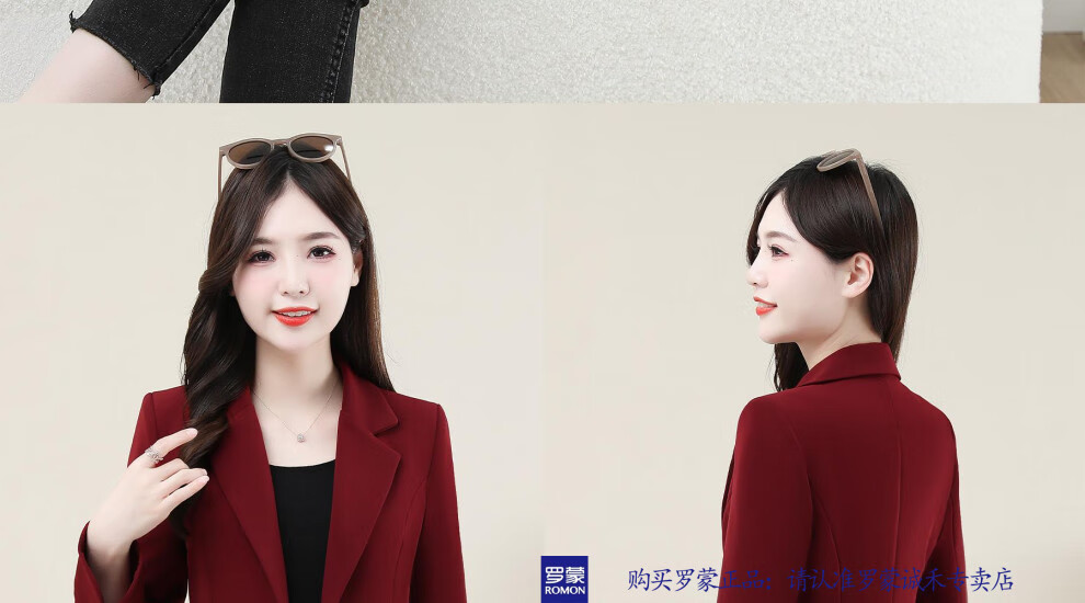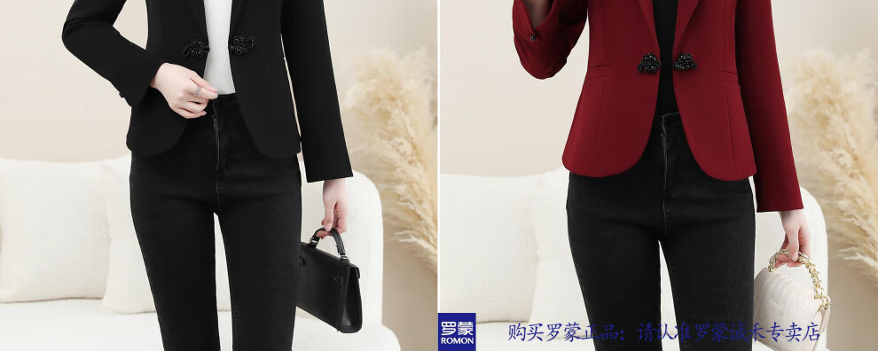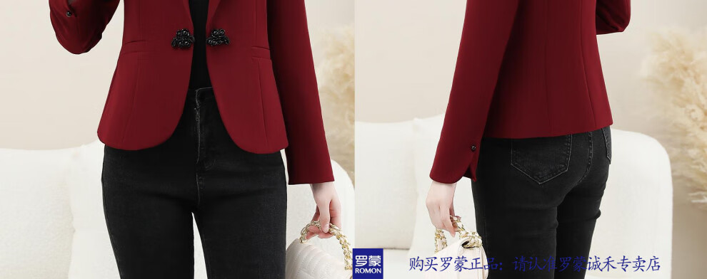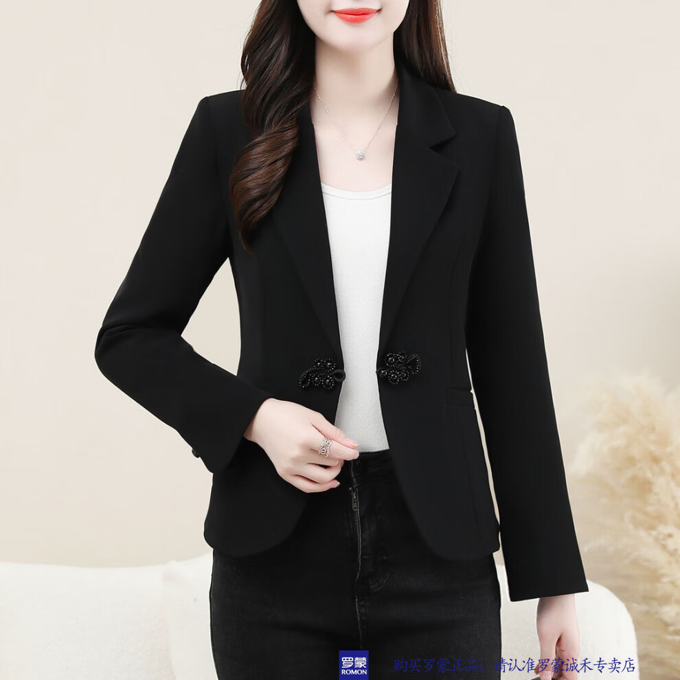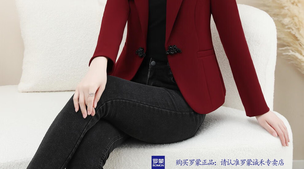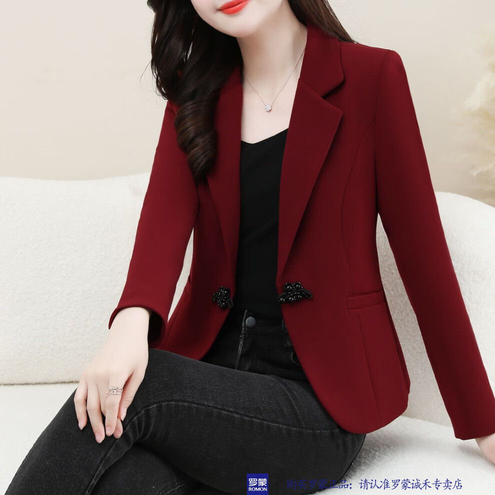 ROMON New Chinese Style Suit Jacket Women's Spring and Autumn New Fashion High-end Feminine Casual Professional Commuting Suit Top Burgundy 2XL Recommended 125-135 Jin Jin equals 0.5 kg