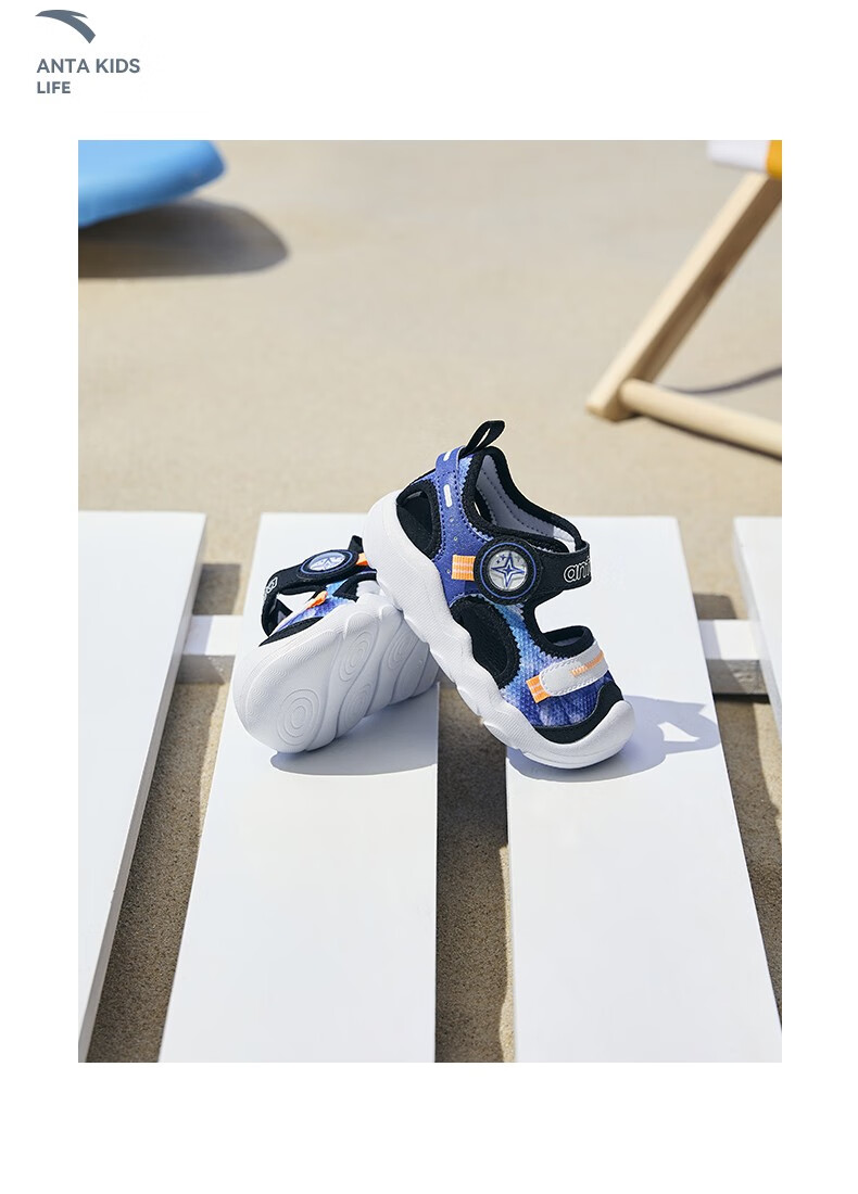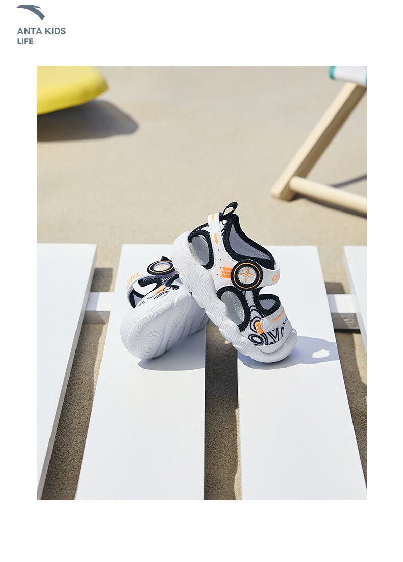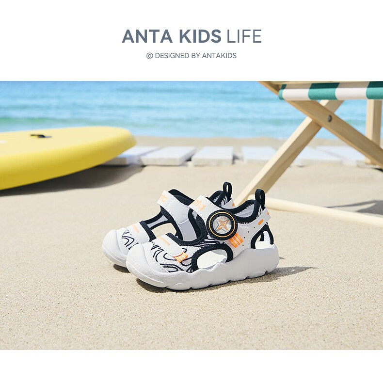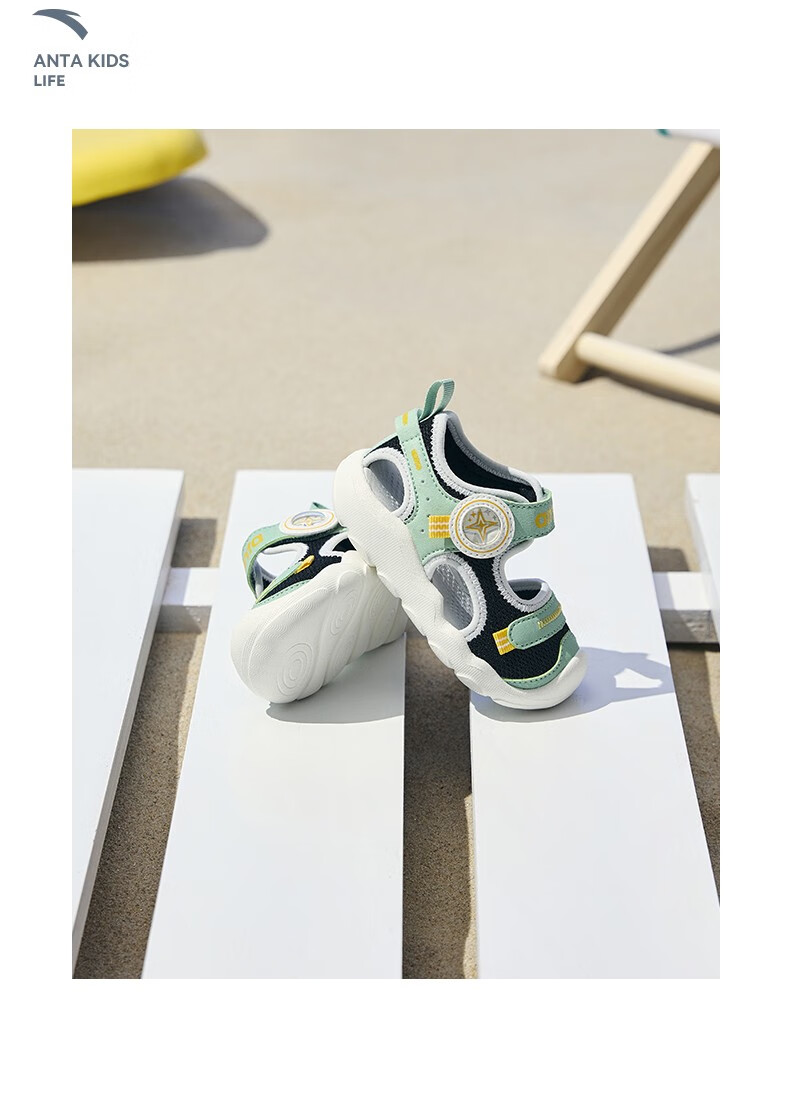 ANTA children's sandals, boys' and girls' shoes, infants' 2026 summer new arrival Octopus breathable toe-cap anti-collision beach shoes for girls, oxygen green/Anta white 0066H-6 27, shoe inner length 16.5cm
