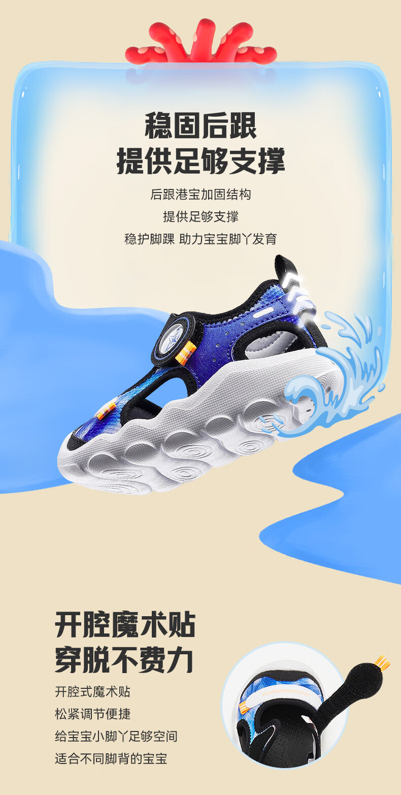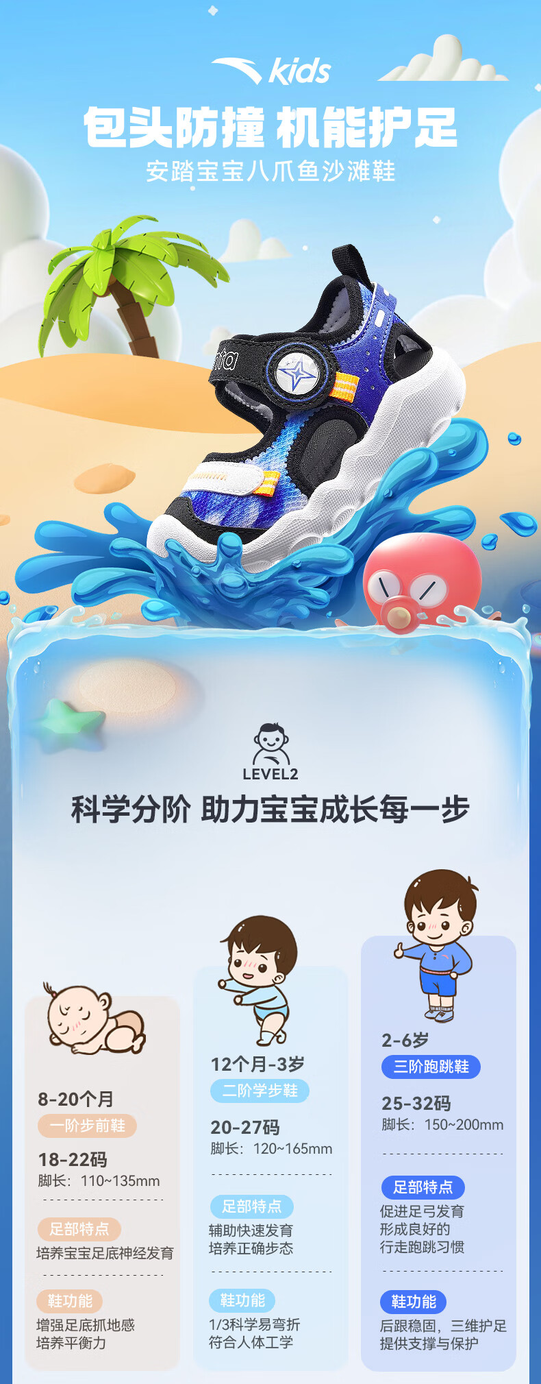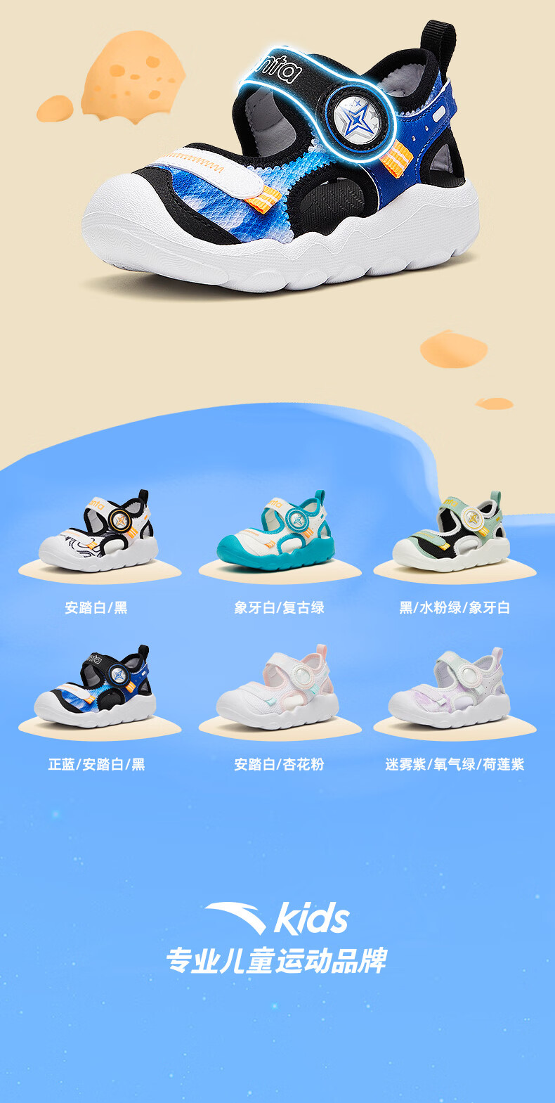 ANTA children's sandals, boys' and girls' shoes, infants' 2026 summer new arrival Octopus breathable toe-cap anti-collision beach shoes for girls, oxygen green/Anta white 0066H-6 27, shoe inner length 16.5cm