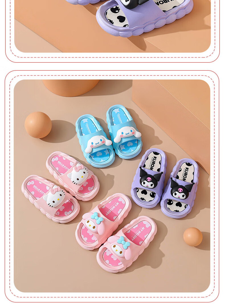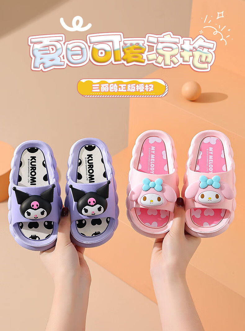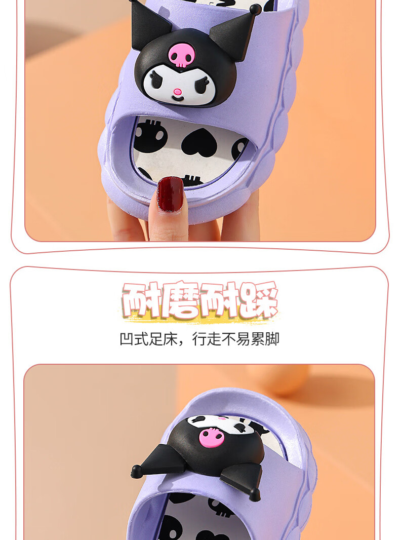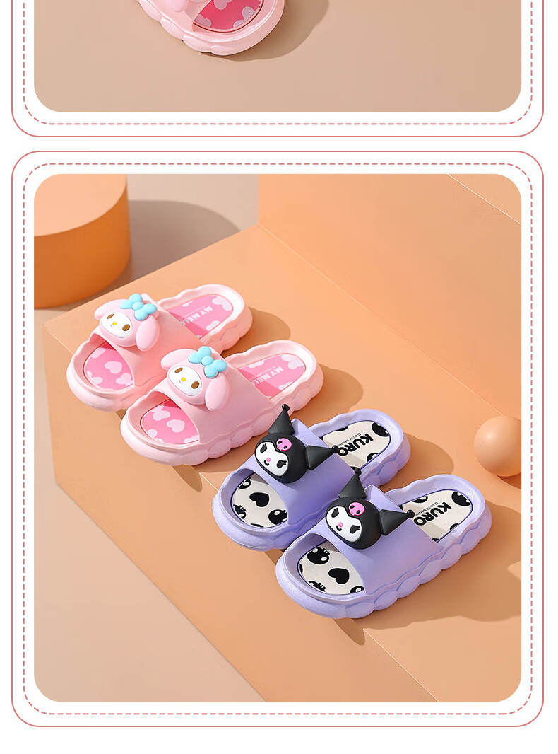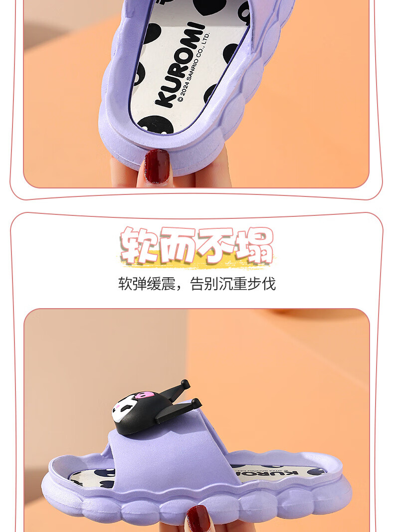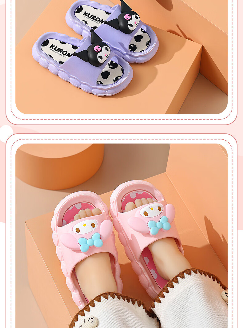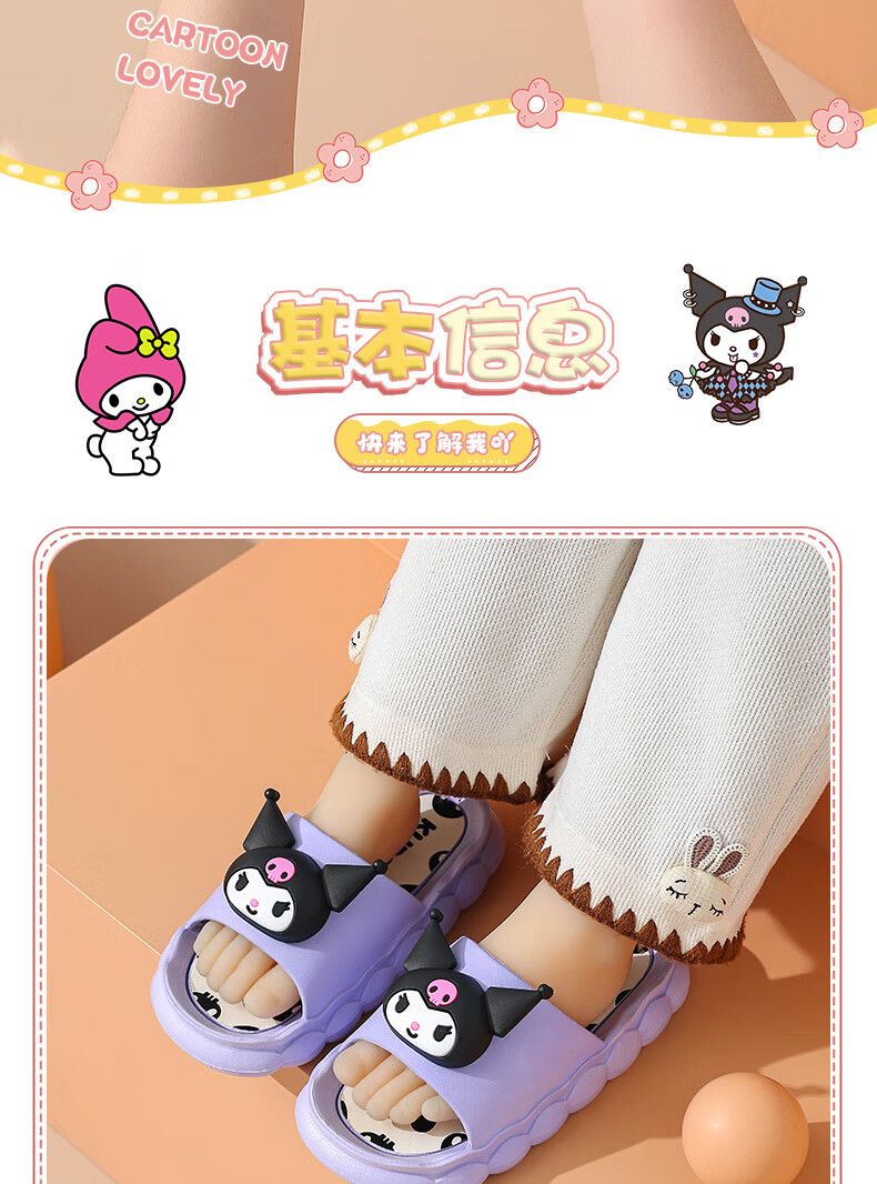2025 New Kuromi Children's Slippers Summer Baby Indoor Home Non-Slip Girls Melody Sandals Girls Pink Melody Sanrio Genuine Authorization 32/33 Inner Length 18.5cm Suitable for Sizes 30-31