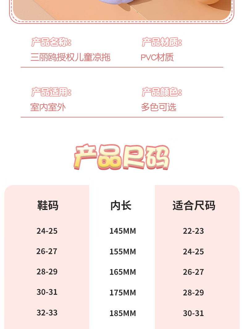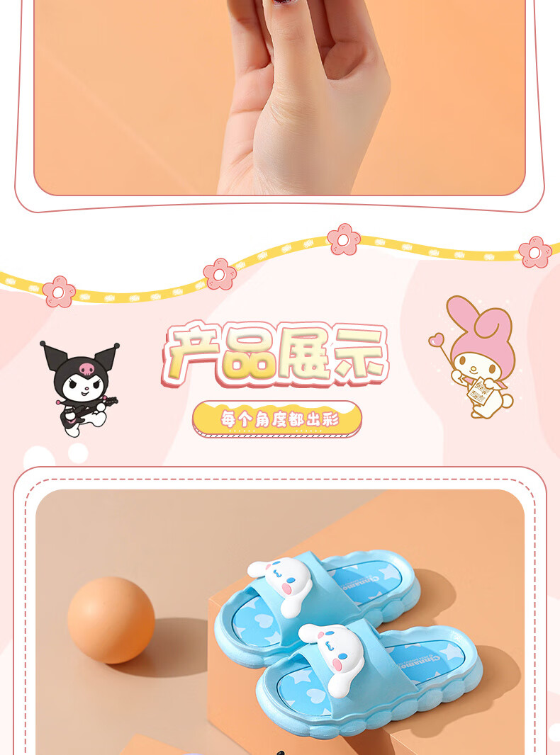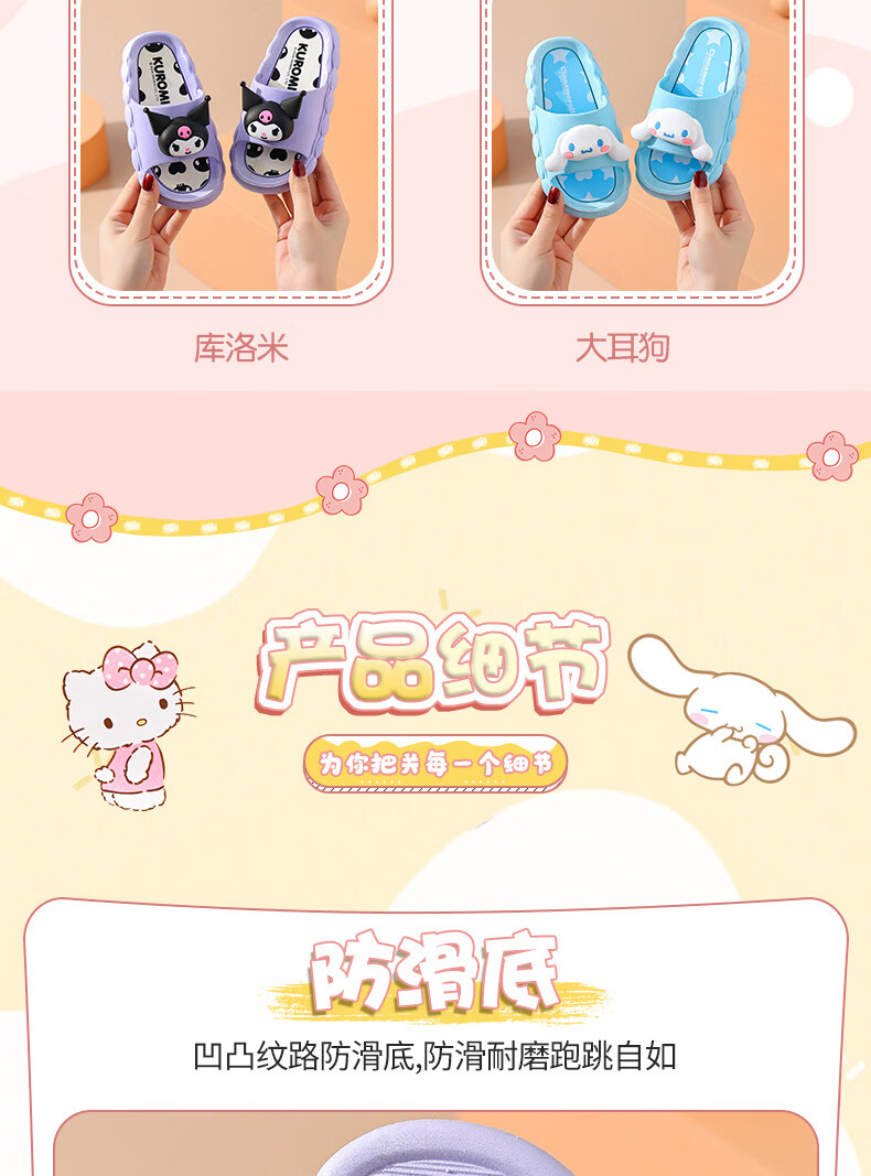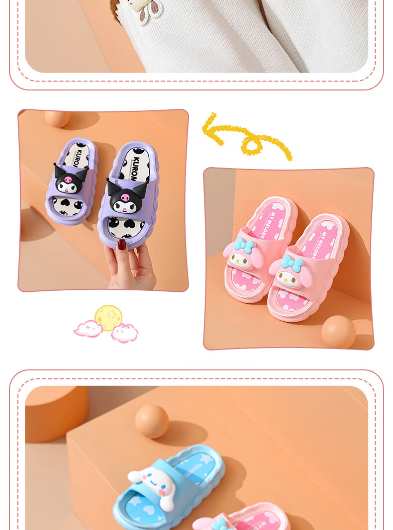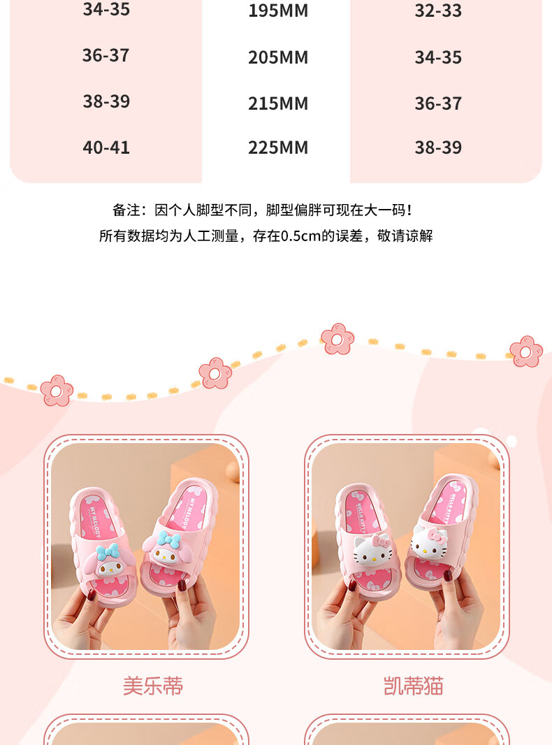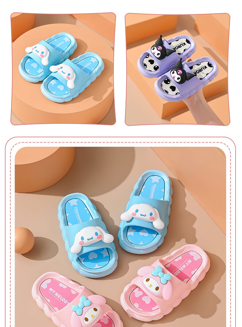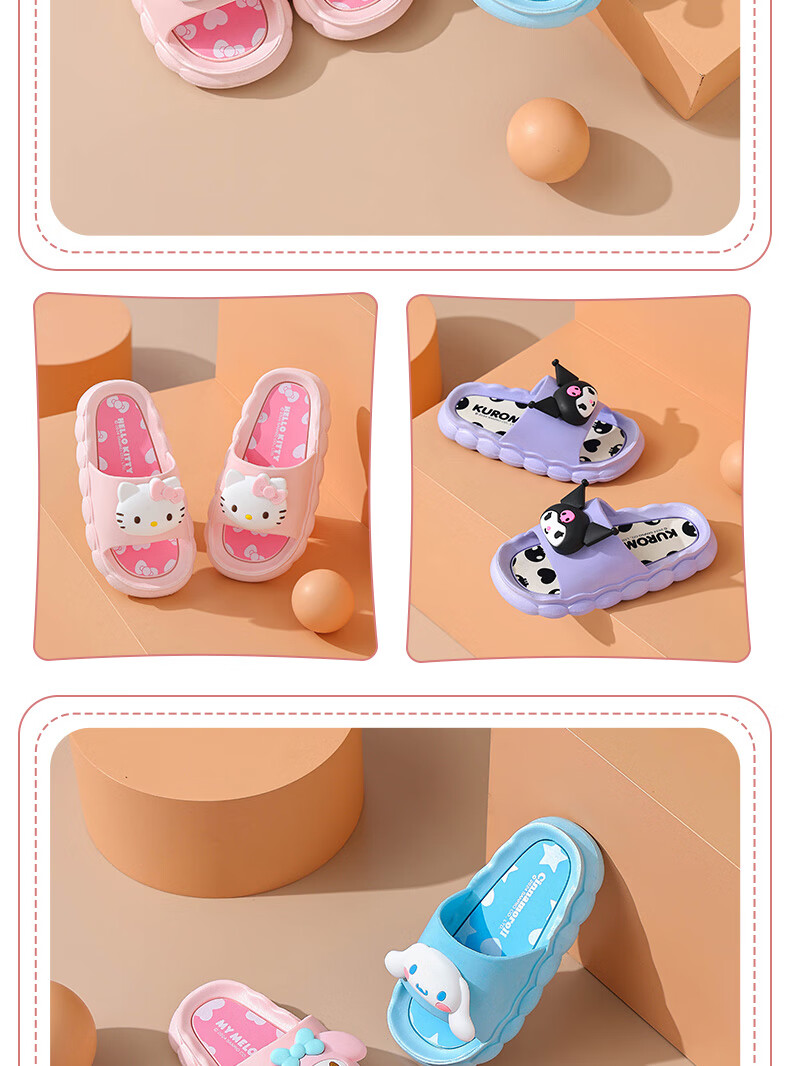 2025 New Kuromi Children's Slippers Summer Baby Indoor Home Non-Slip Girls Melody Sandals Girls Pink Melody Sanrio Genuine Authorization 32/33 Inner Length 18.5cm Suitable for Sizes 30-31