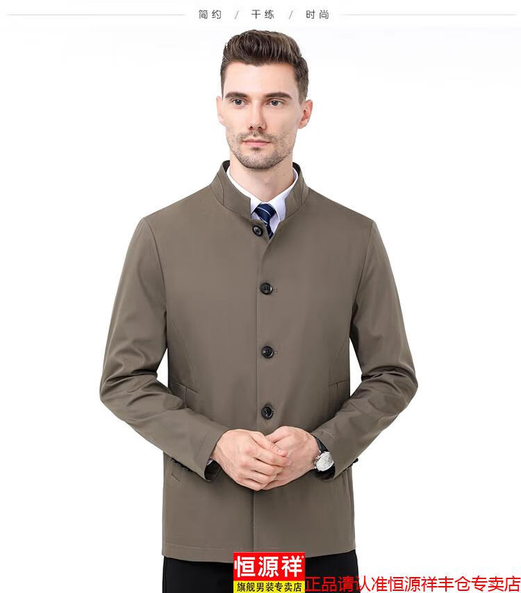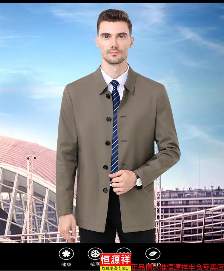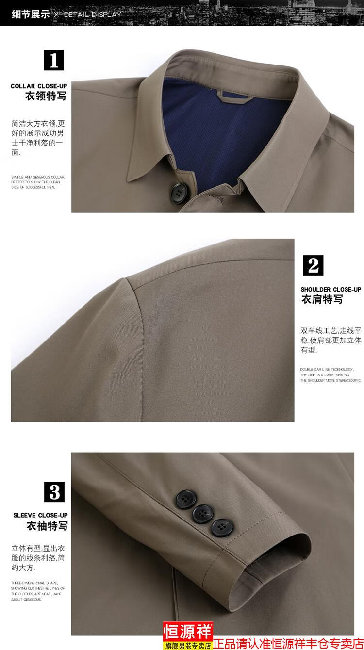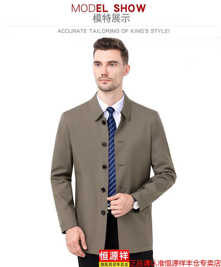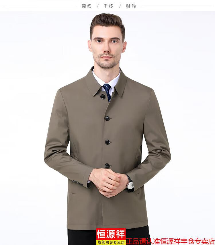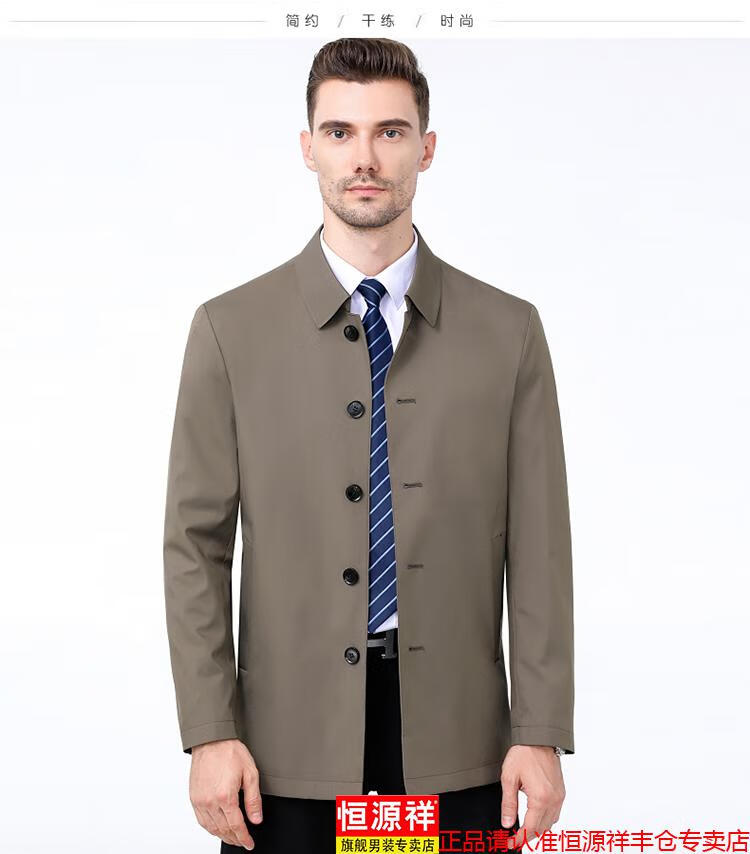 Hengyuanxiang high-end jacket men's middle-aged lapel spring and autumn thin coat middle-aged and elderly dad wear mid-length buttoned windbreaker khaki (lapel) XL 180/96A