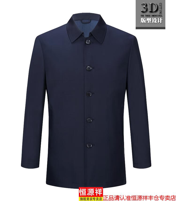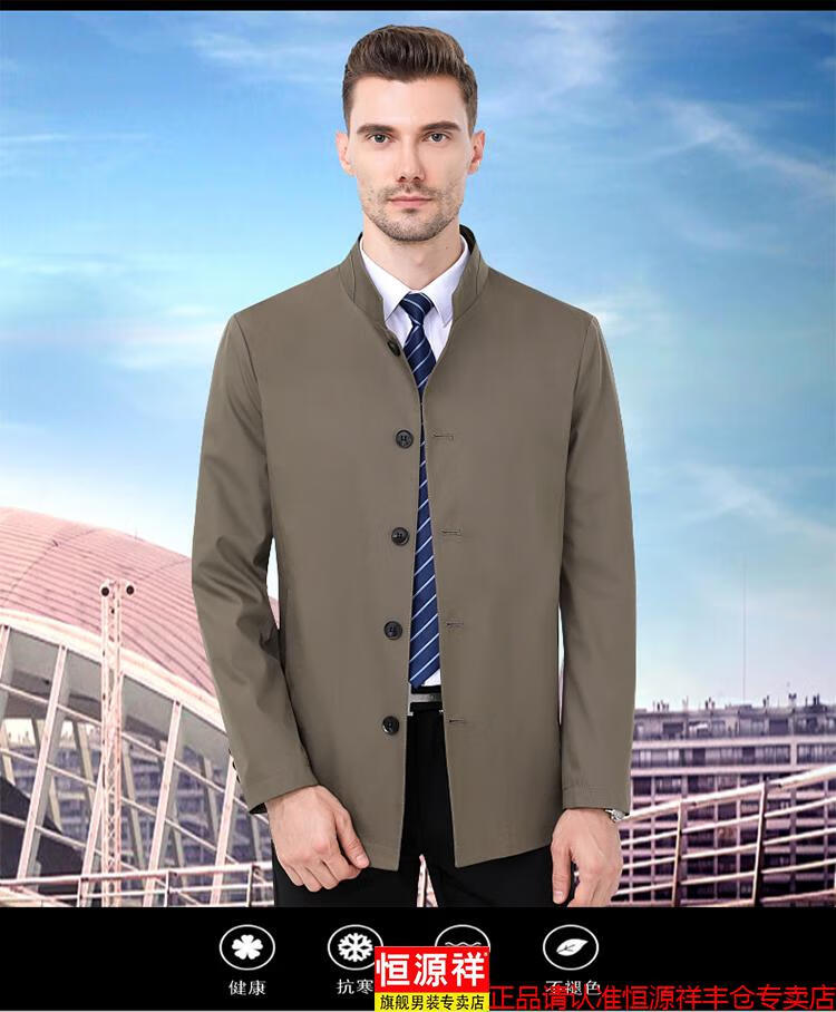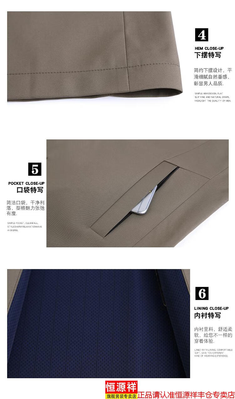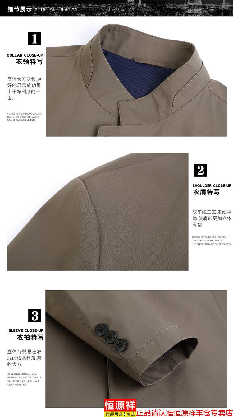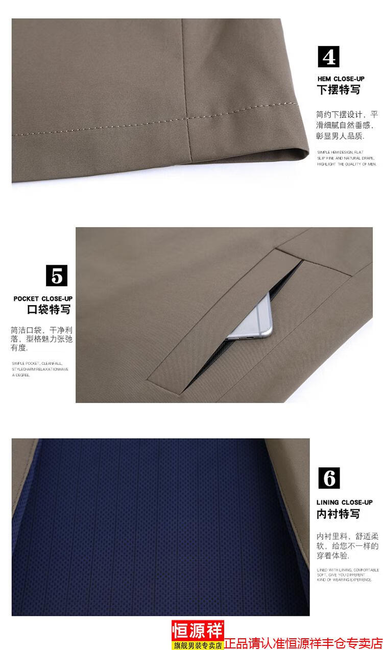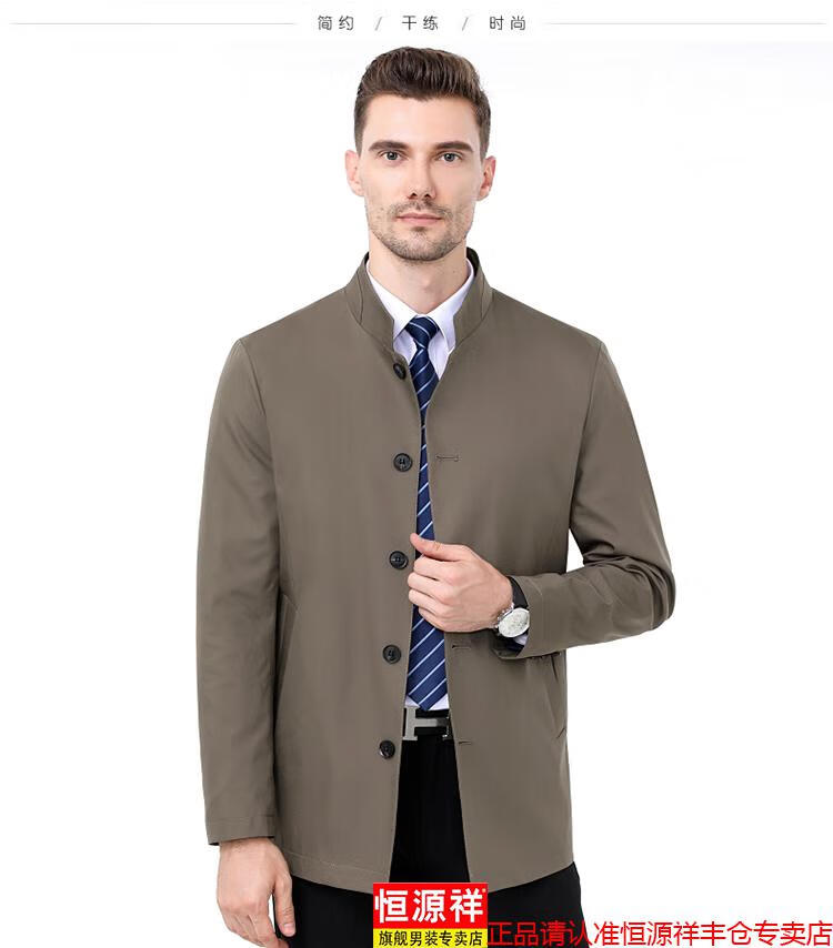 Hengyuanxiang high-end jacket men's middle-aged lapel spring and autumn thin coat middle-aged and elderly dad wear mid-length buttoned windbreaker khaki (lapel) XL 180/96A
