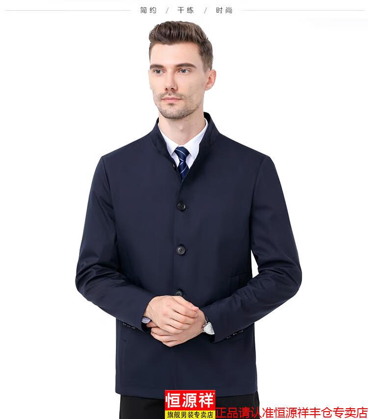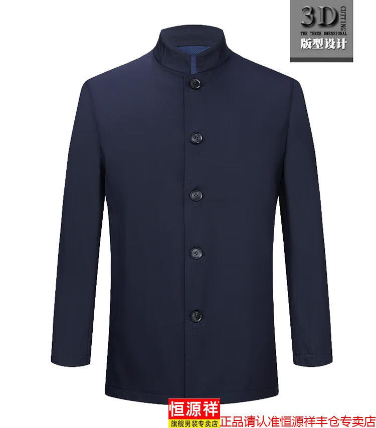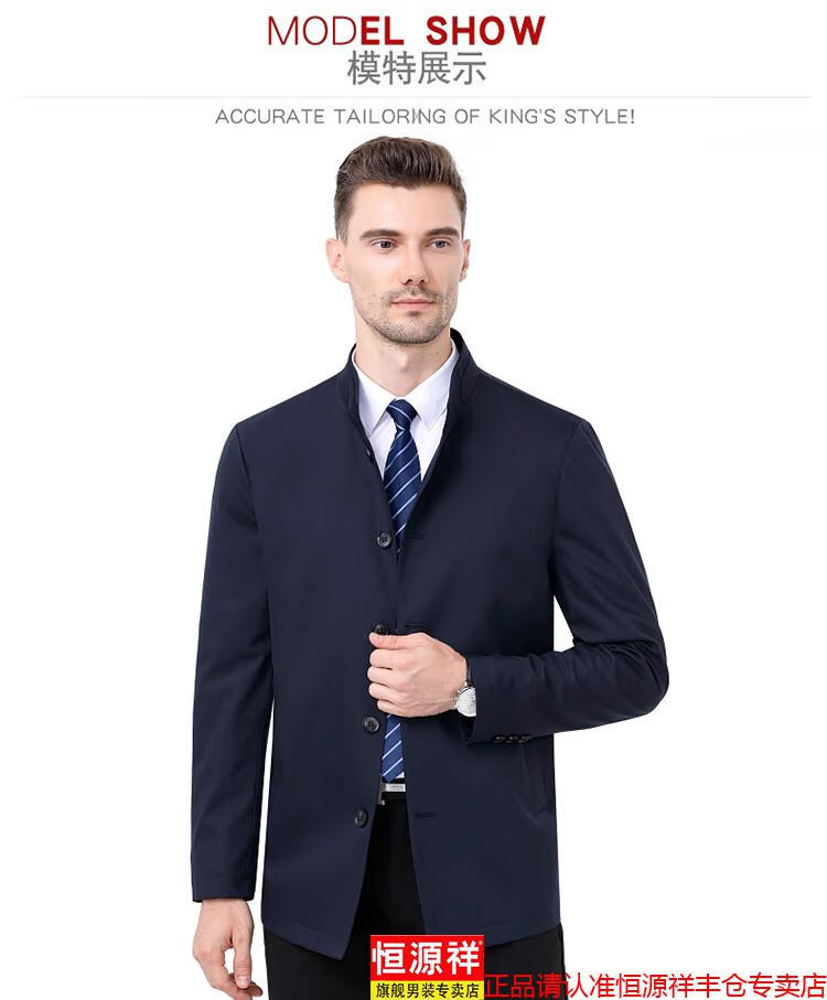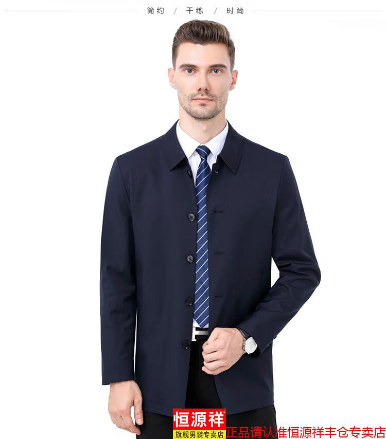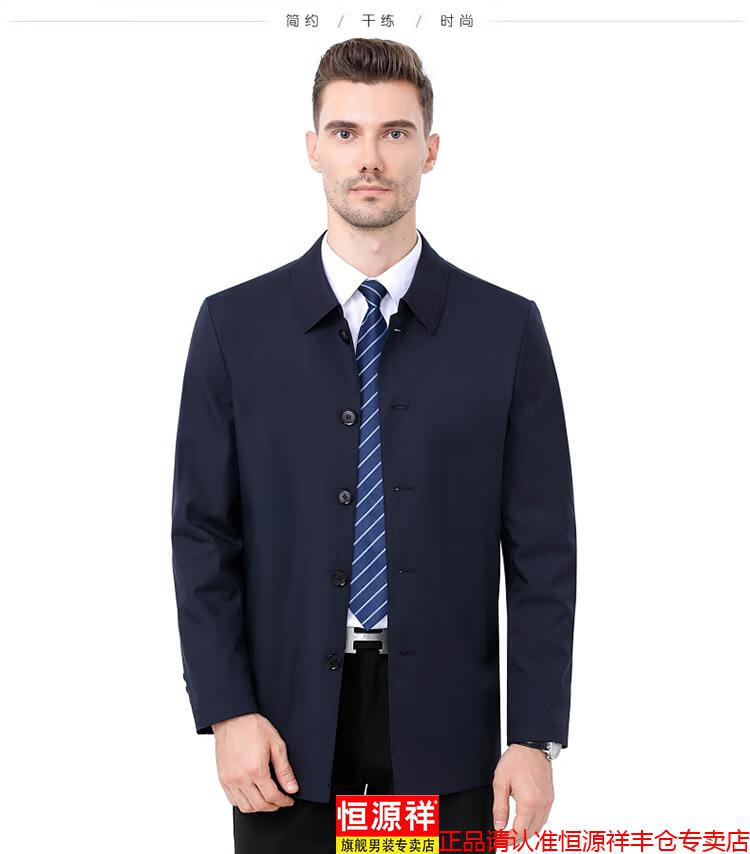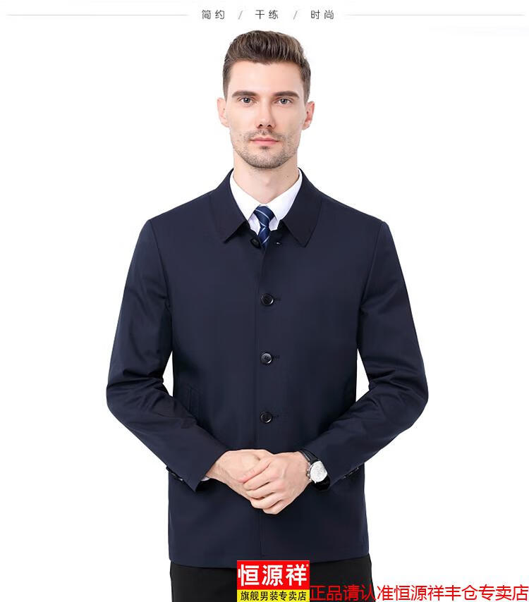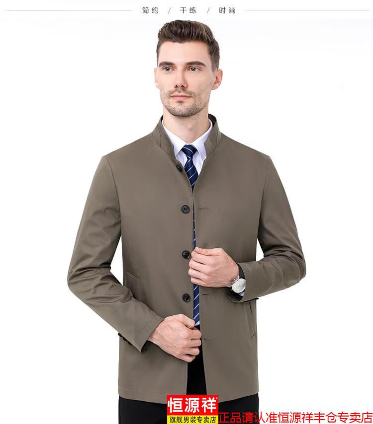 Hengyuanxiang high-end jacket men's middle-aged lapel spring and autumn thin coat middle-aged and elderly dad wear mid-length buttoned windbreaker khaki (lapel) XL 180/96A