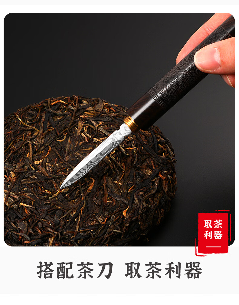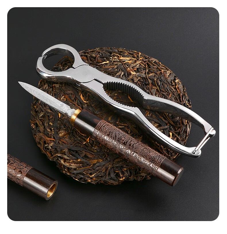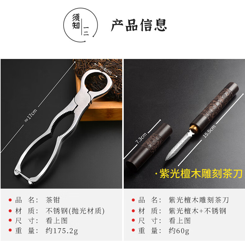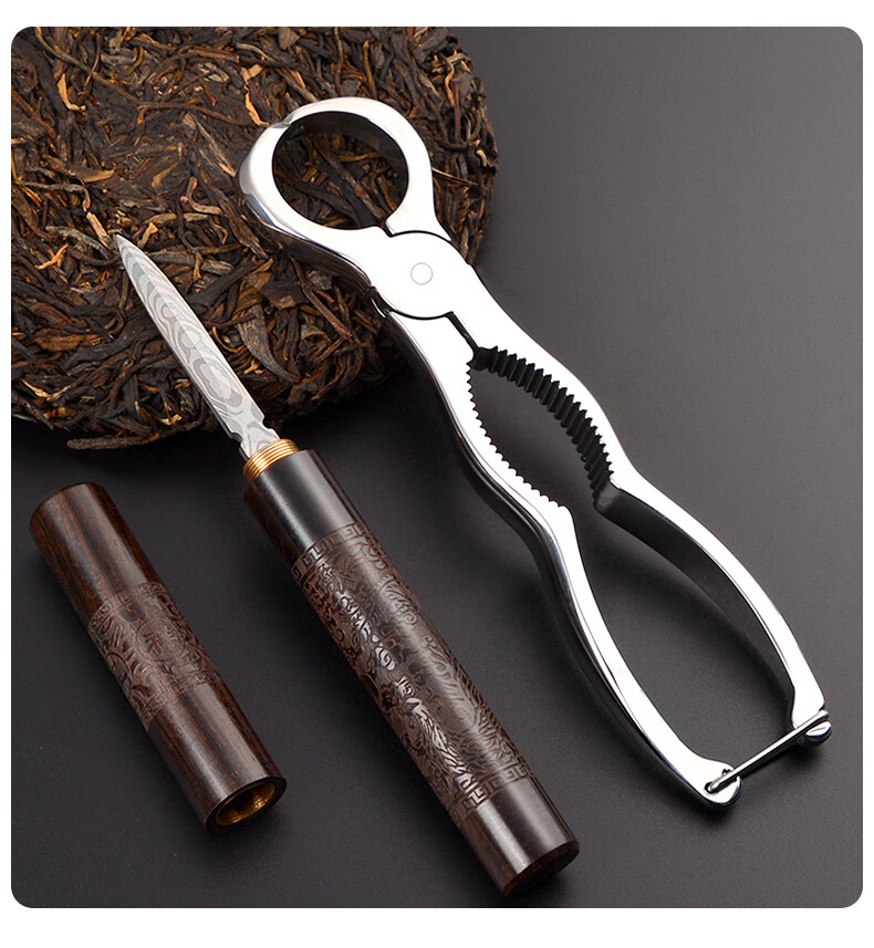 Fat Donglai's same tea cake pry, tea pliers, stainless steel tea needle, tea knife, Pu'er tea knife, hand-made tea cake opening scissors, tea set of two, tea pliers + Damascus wood tea knife
