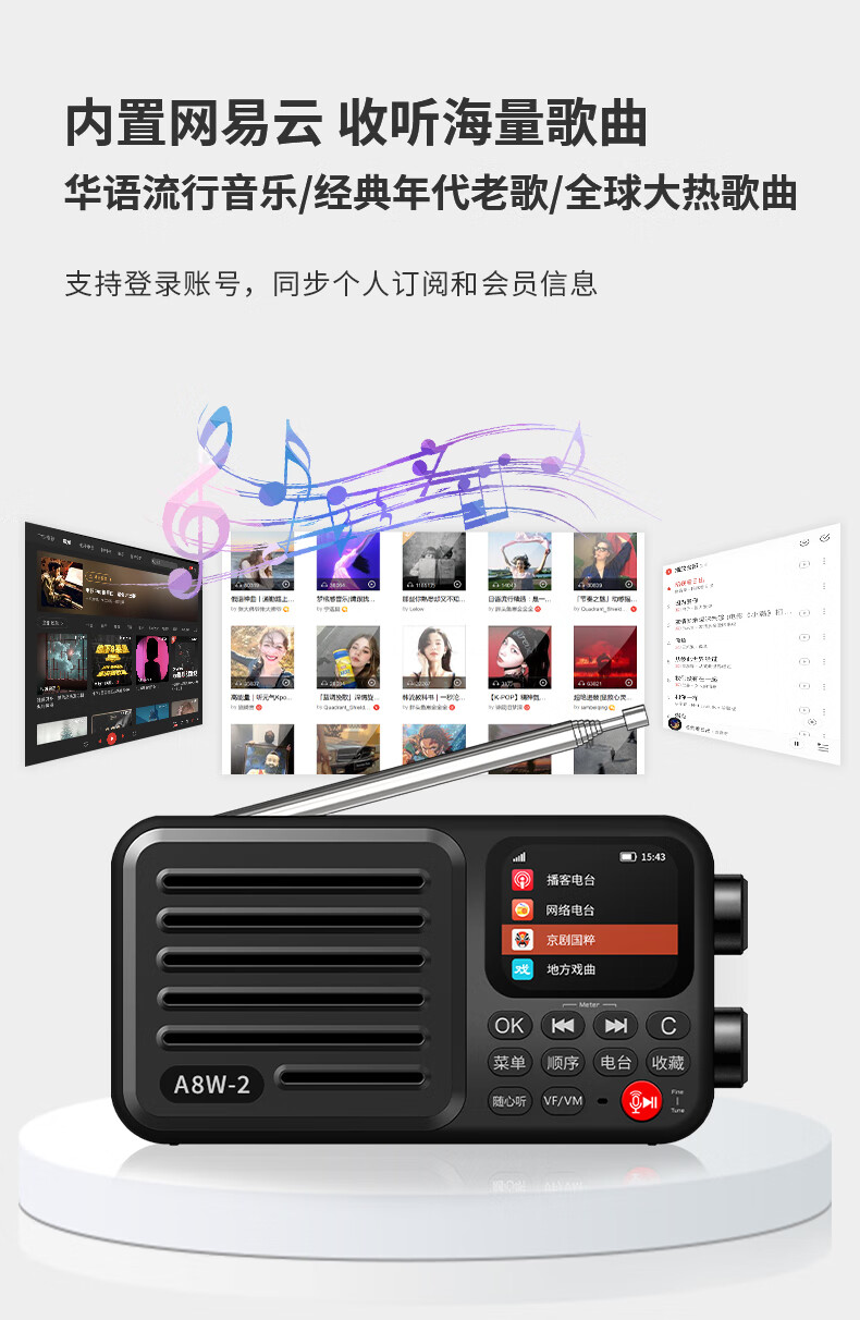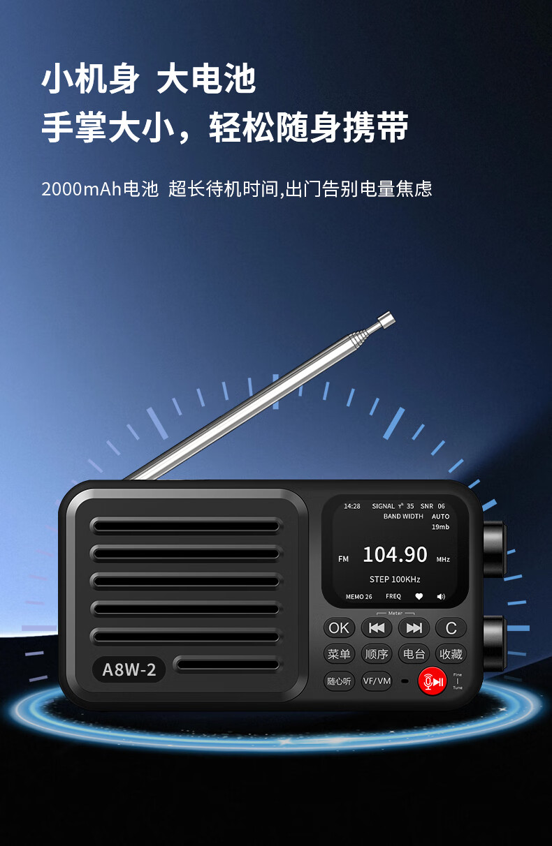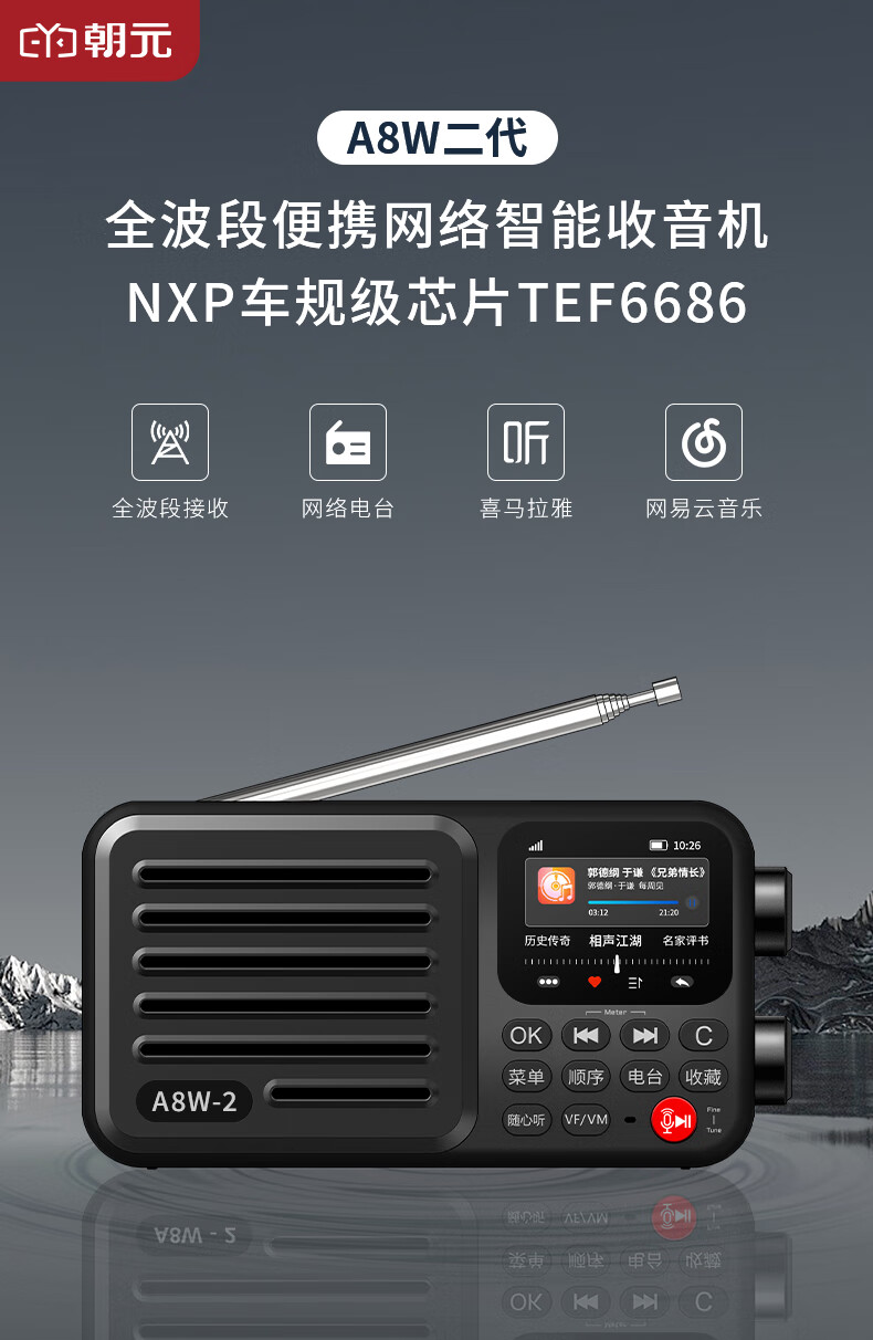Chaoyuan A8W2 generation full-band network radio 2026 new 6686 chip portable high performance high sensitivity professional high-end portable small semiconductor network radio A8W second generation titanium gray
