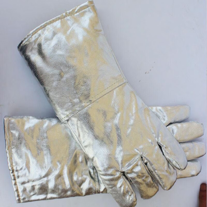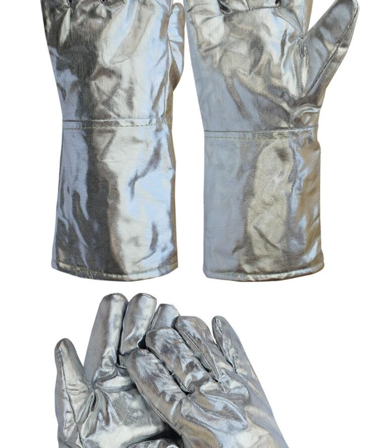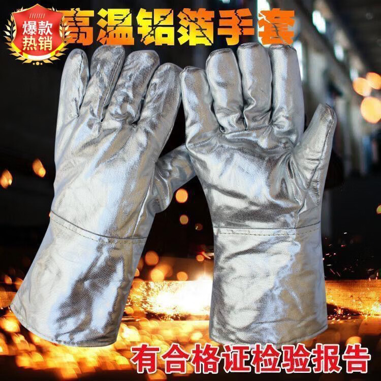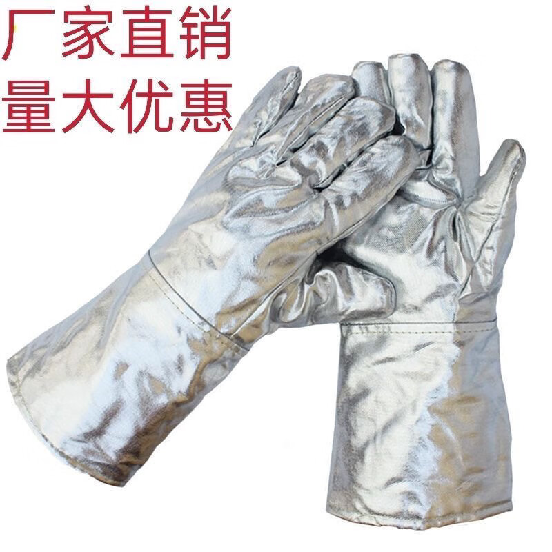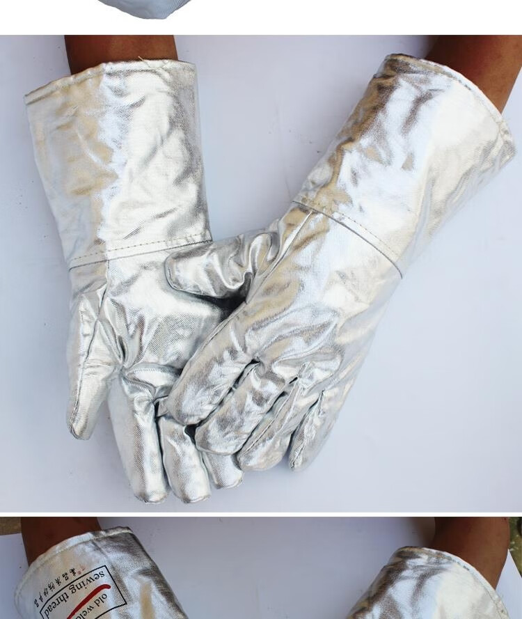 FANCYCHIC aluminum foil anti-scalding gloves resistant to high temperature, heat insulation, smelting five-finger gloves, thermal thickened oven fire-proof gloves, aluminum foil cowhide reinforced gloves, length 39 cm, one pair