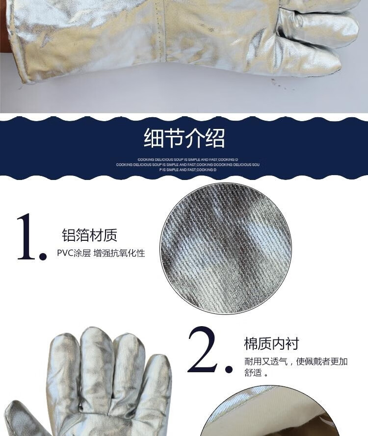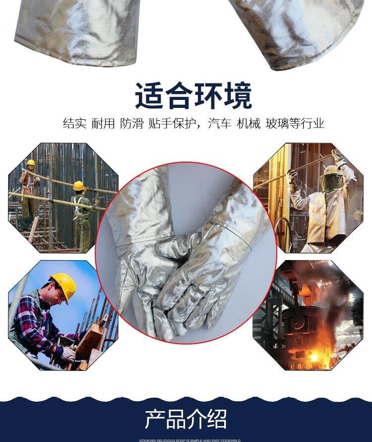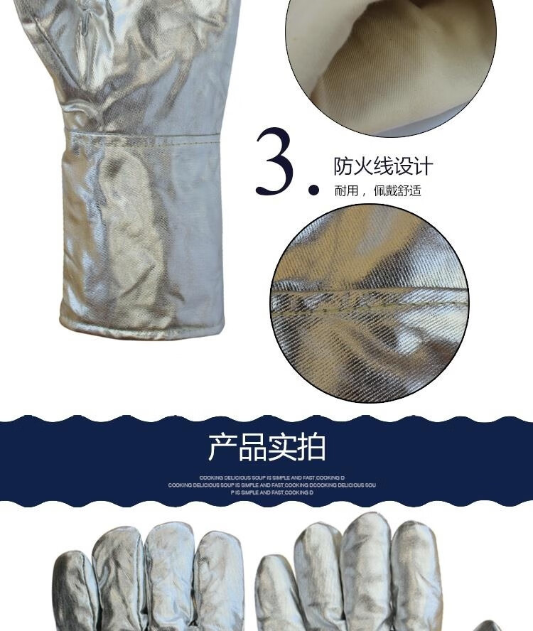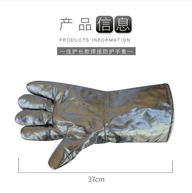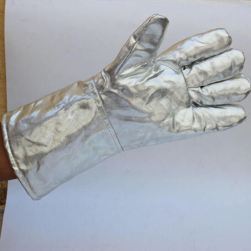 FANCYCHIC aluminum foil anti-scalding gloves resistant to high temperature, heat insulation, smelting five-finger gloves, thermal thickened oven fire-proof gloves, aluminum foil cowhide reinforced gloves, length 39 cm, one pair