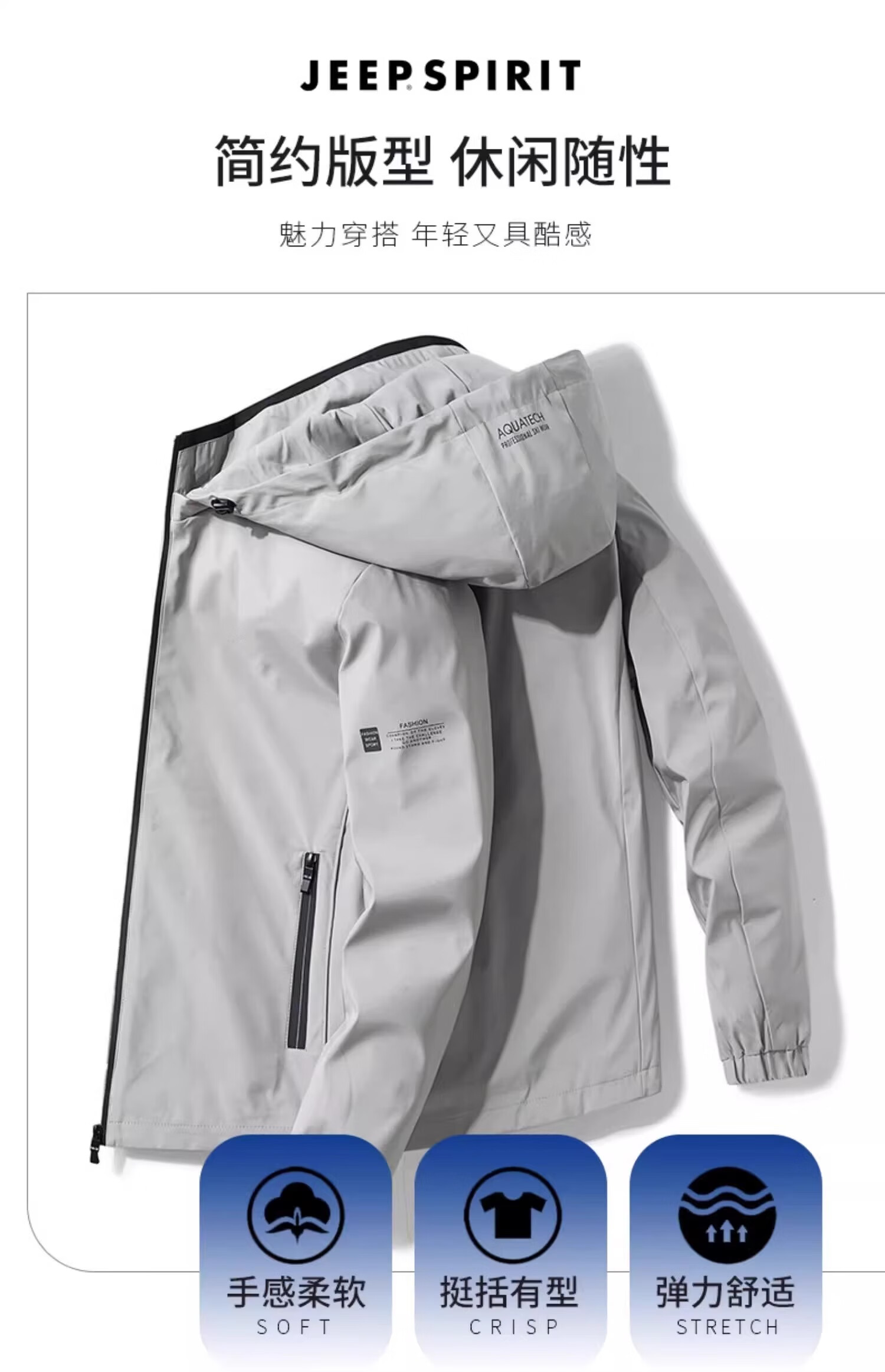 Large size elastic skin-friendly men's casual jacket jacket men's spring and autumn short jacket men's 2236 light gray thin section 5XL