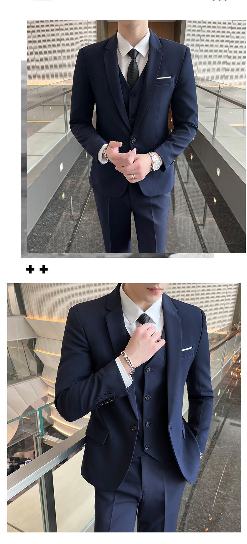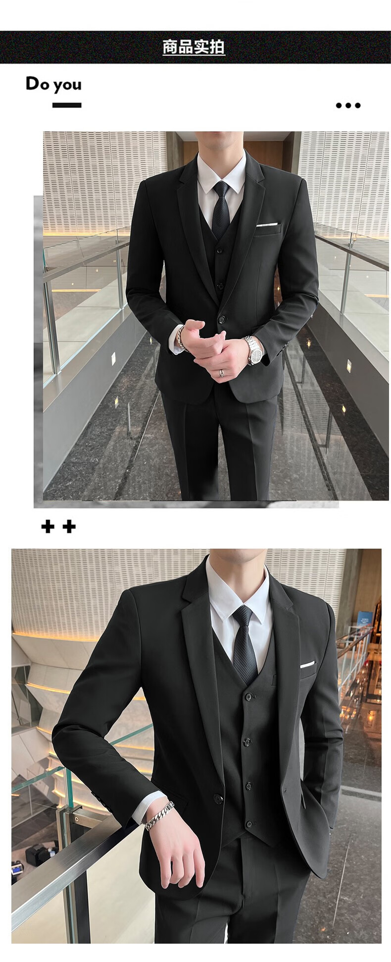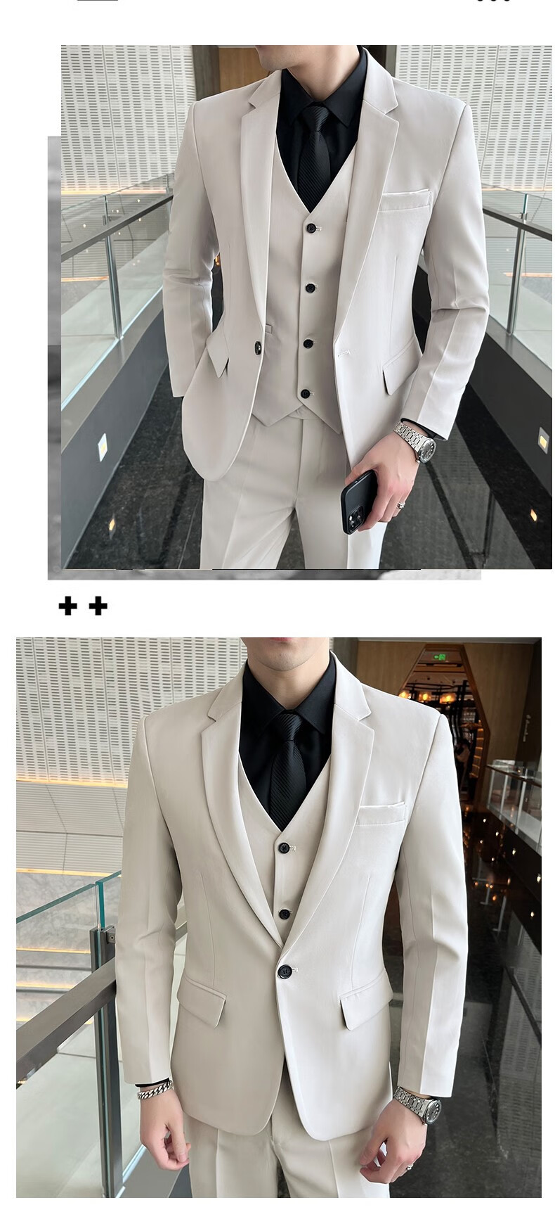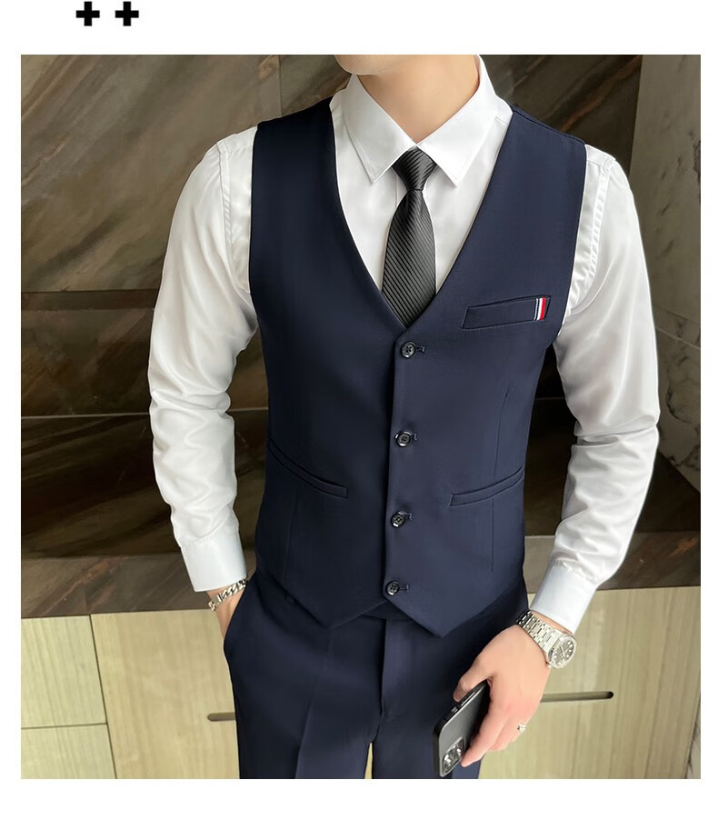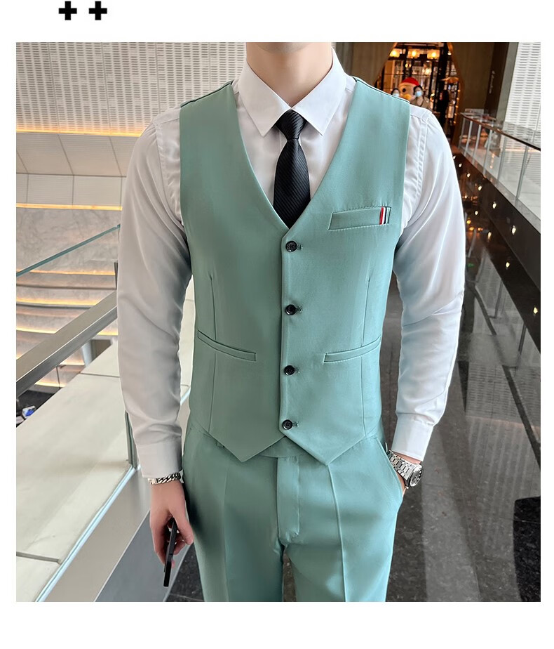 ROMON suit men's slim-fit Korean solid color small suit professional business formal three-piece groom's wedding dress off-white single-piece suit with tie L