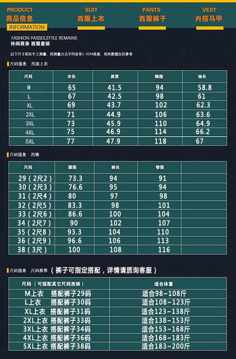 China (cm) 160-165/84-86 165-170 / 88-90 167-172 / 92-96 168-173 / 98-102 170-176 / 106-110