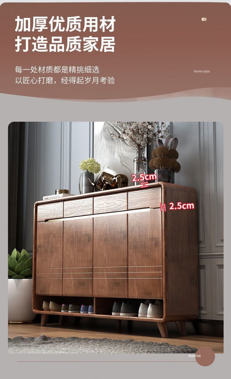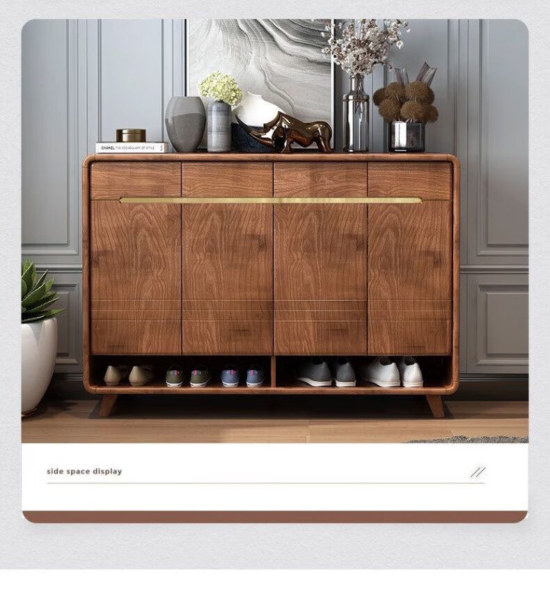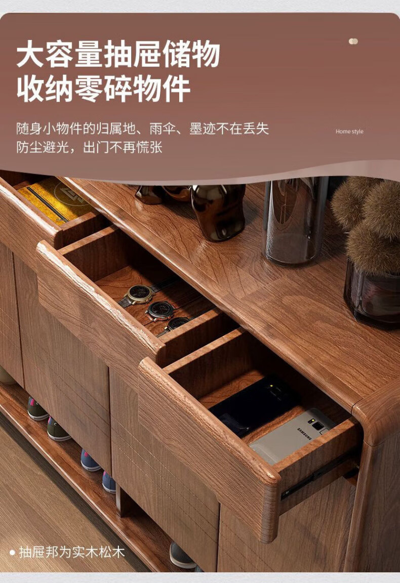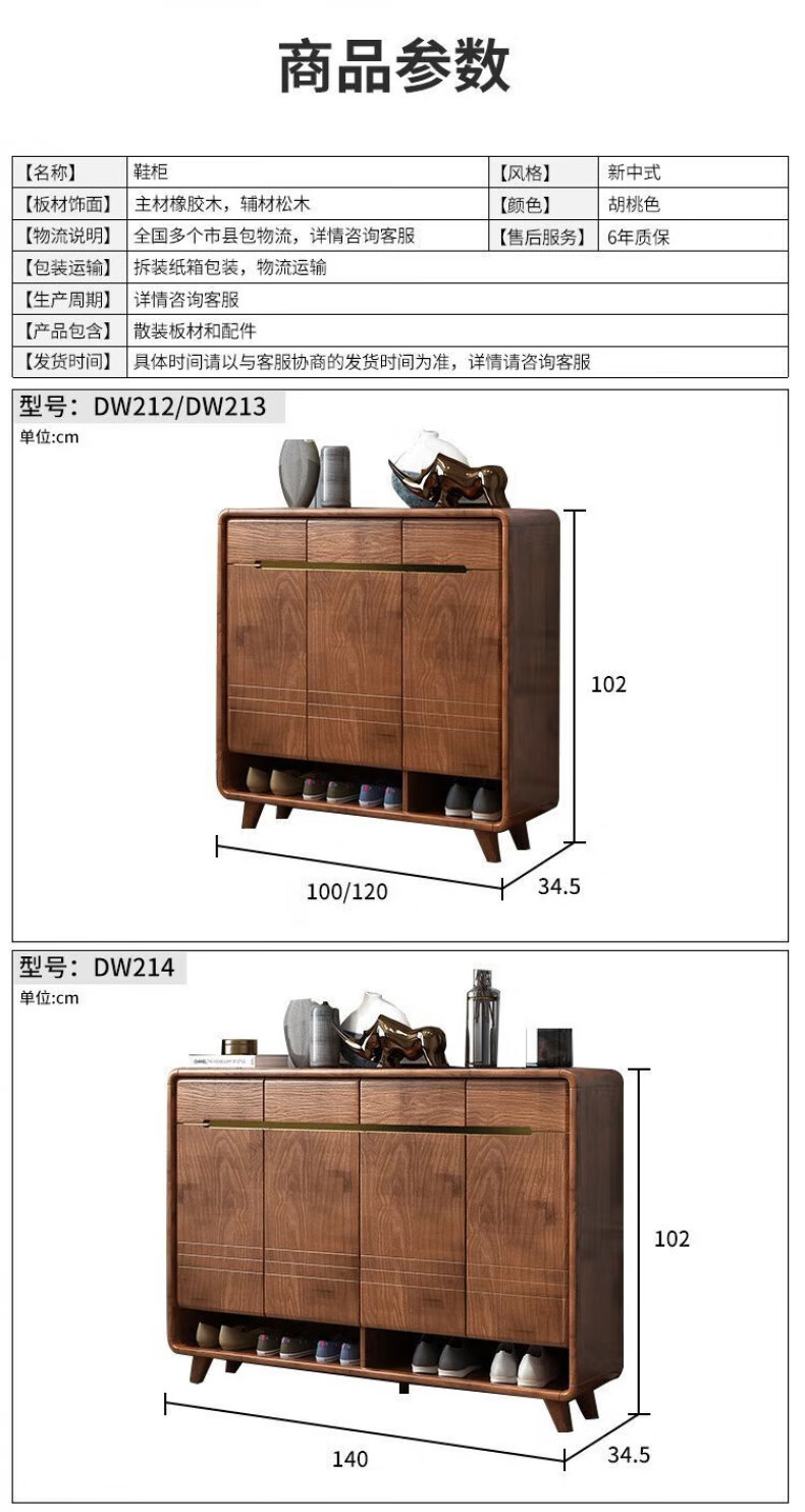 Qubainian's new walnut color solid wood shoe cabinet new Chinese style entry door all-in-one storage cabinet home entrance porch 120X345X1020 walnut color solid wood model complete delivery