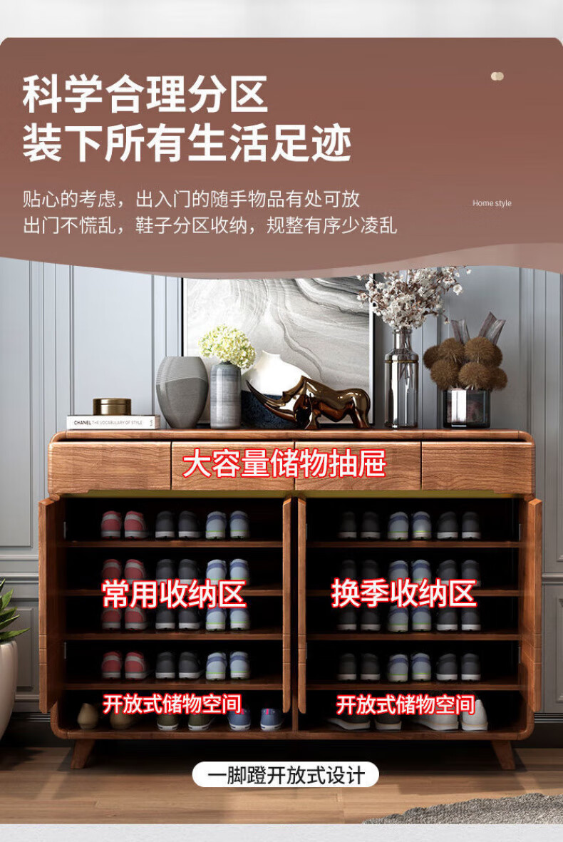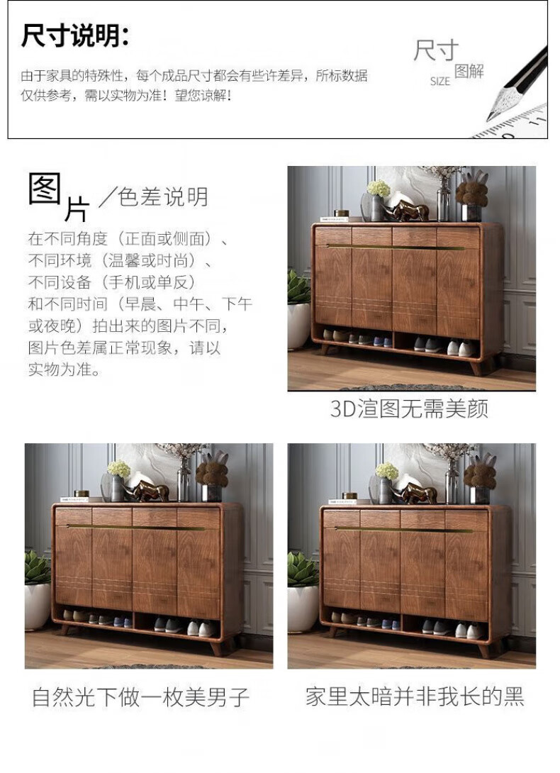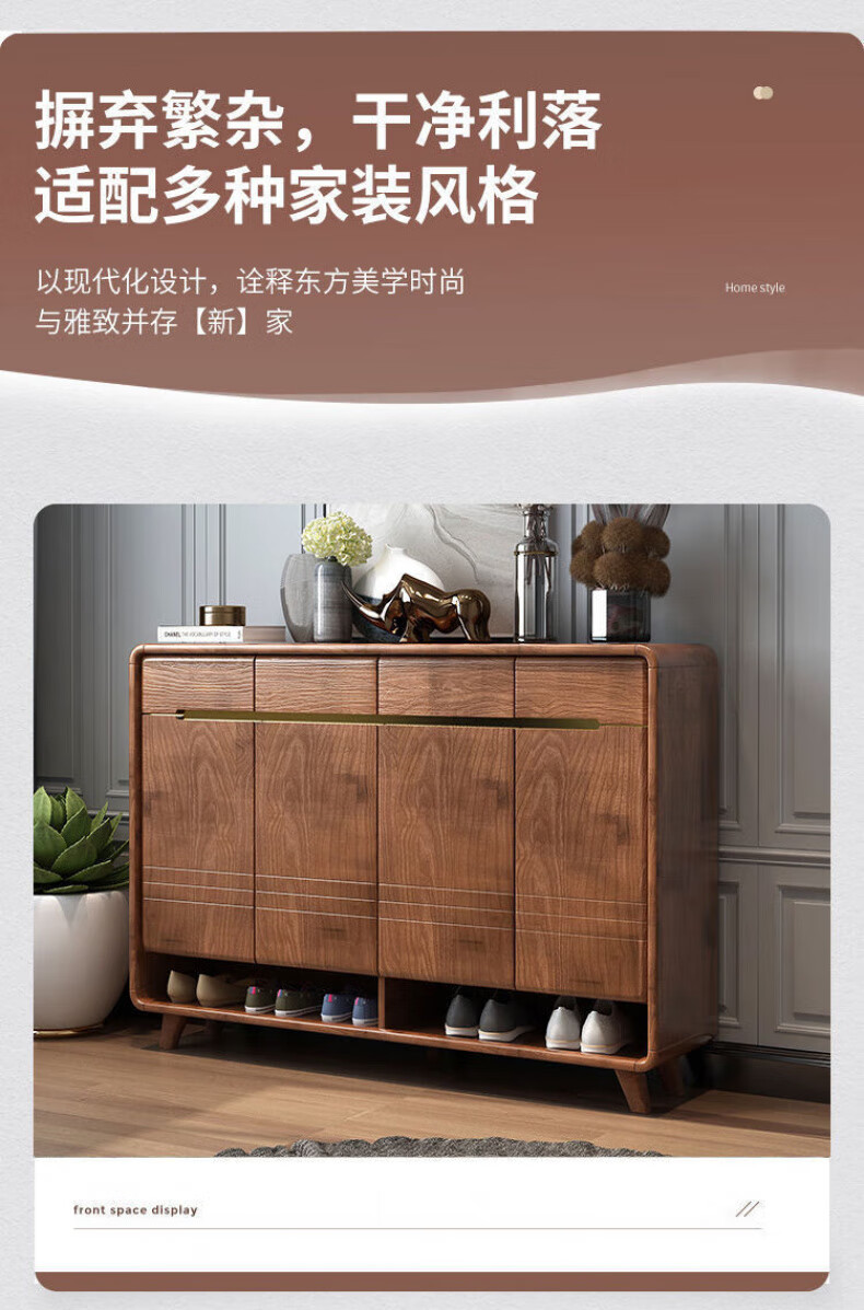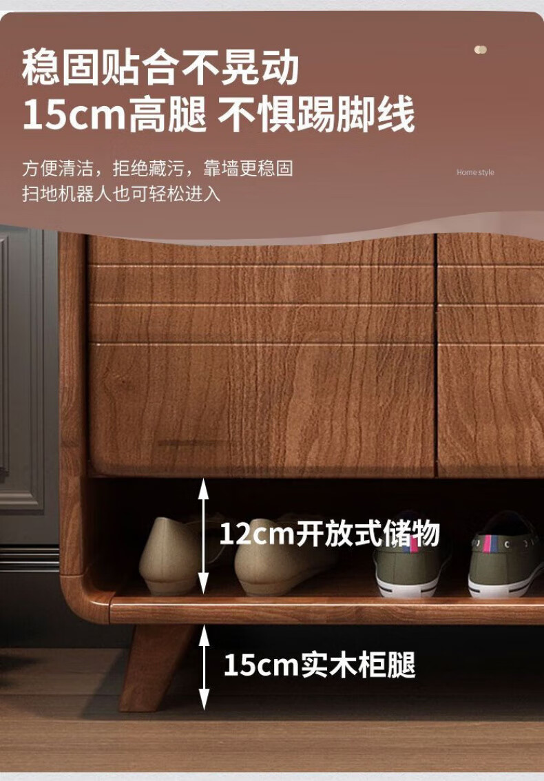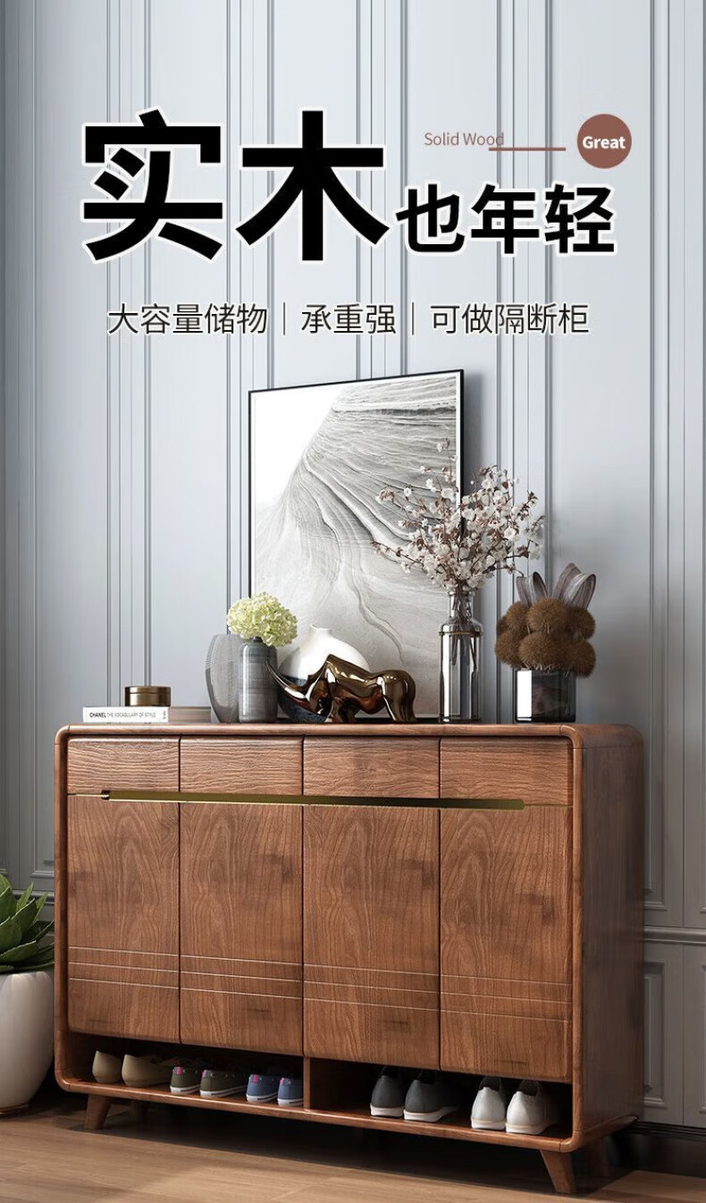 Qubainian's new walnut color solid wood shoe cabinet new Chinese style entry door all-in-one storage cabinet home entrance porch 120X345X1020 walnut color solid wood model complete delivery