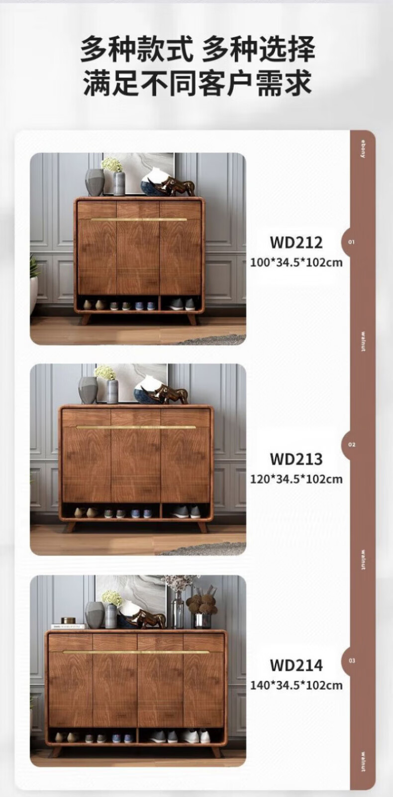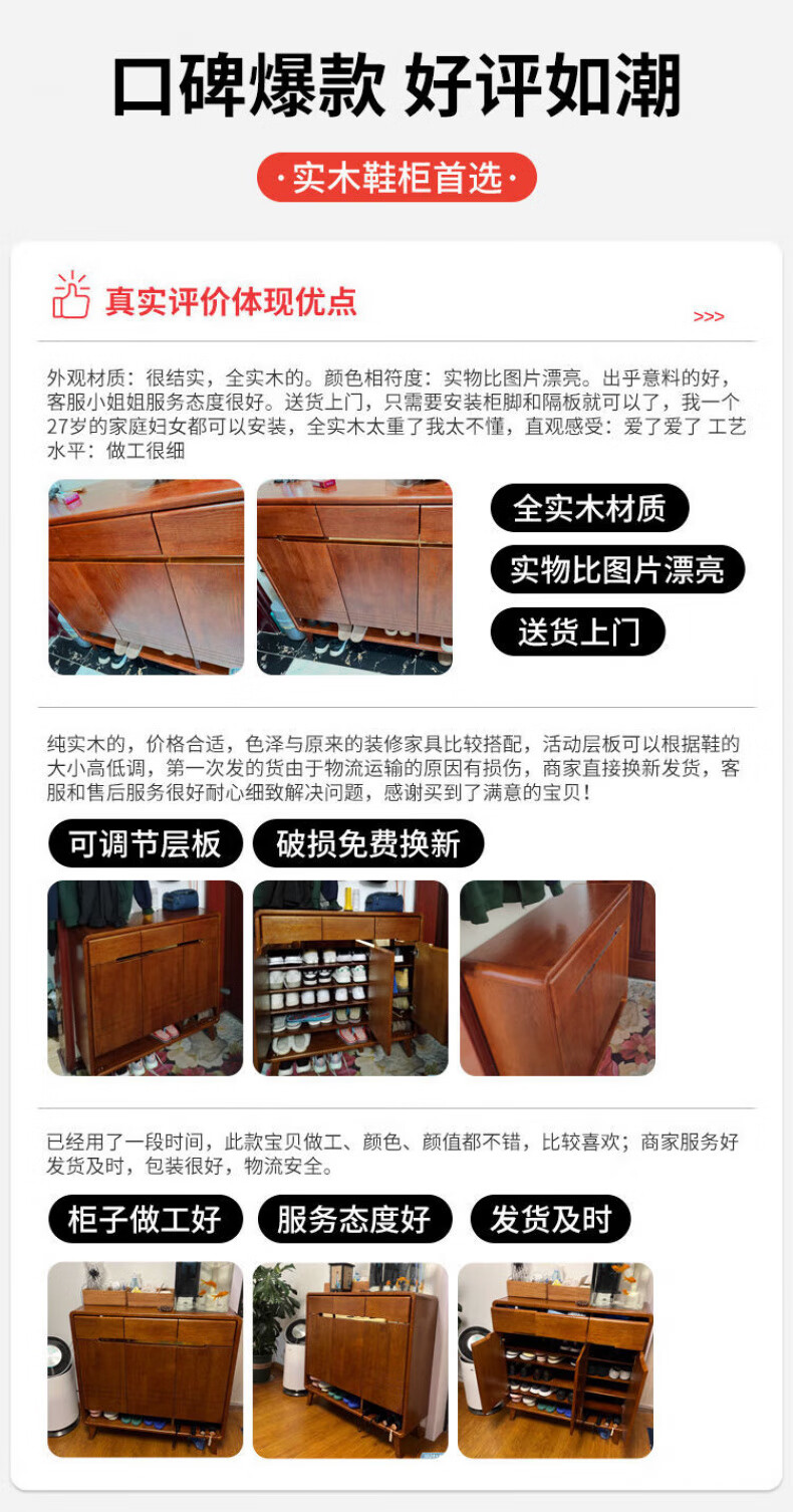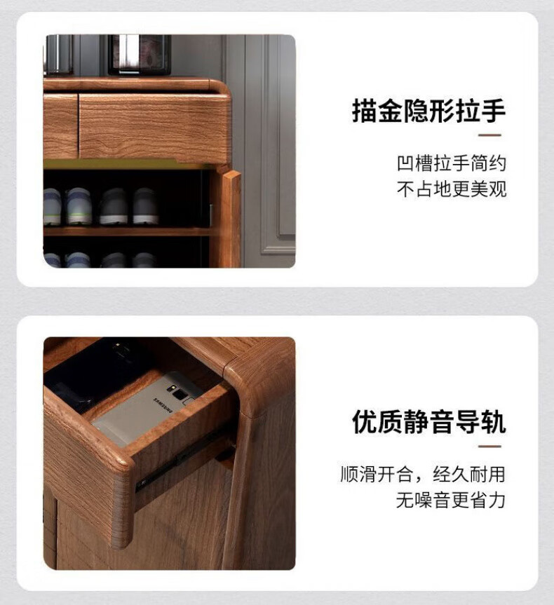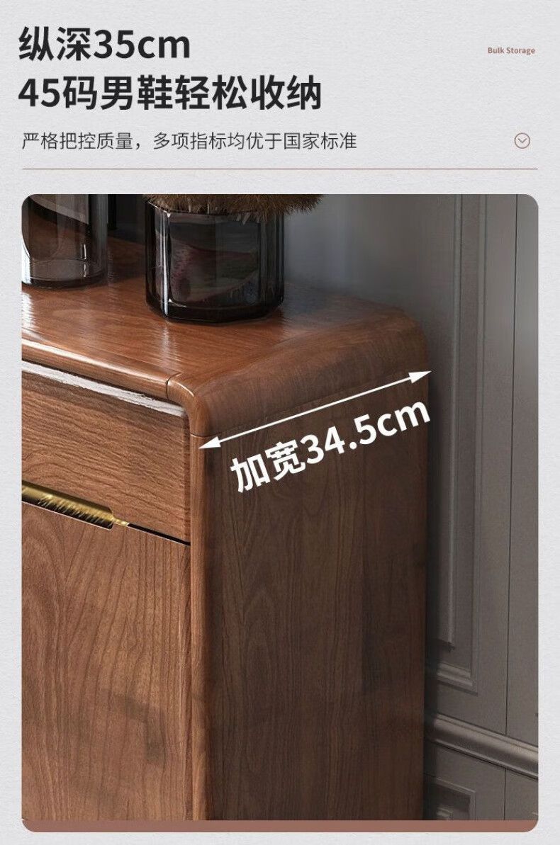 Qubainian's new walnut color solid wood shoe cabinet new Chinese style entry door all-in-one storage cabinet home entrance porch 120X345X1020 walnut color solid wood model complete delivery