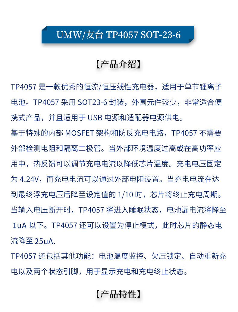 Original genuine UMW patch TP4056 TP4054 TP4057 battery power management chip UMW/Friend Taiwan TP4056ESOP-8 (5 pieces) No Specifications