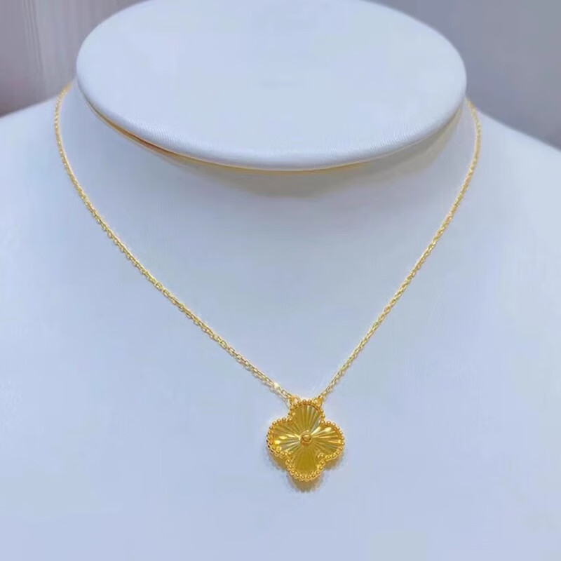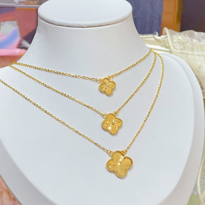 Lie Rui fashion 18K gold necklace women's gold four-leaf clover set chain 3D hard gold clavicle chain for Valentine's Day gift to girlfriend Four-leaf clover necklace