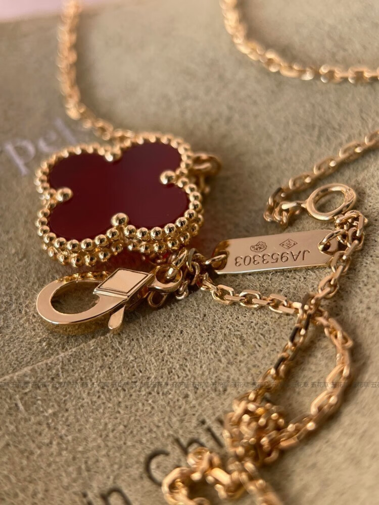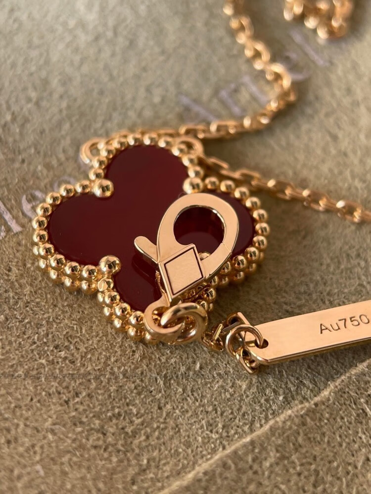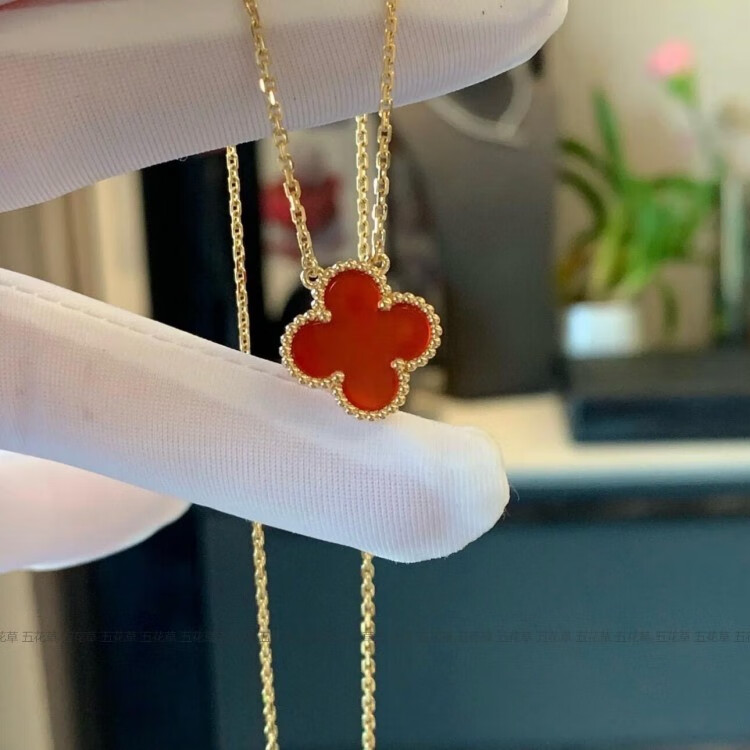 Hunter high version four-leaf clover 18K gold rose gold gold necklace women's clavicle chain carnelian red agate high-end trend medium necklace rose gold carnelian correct