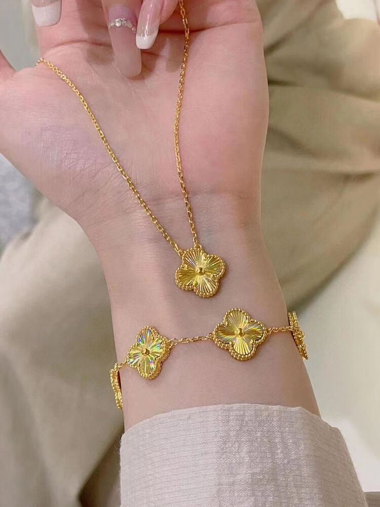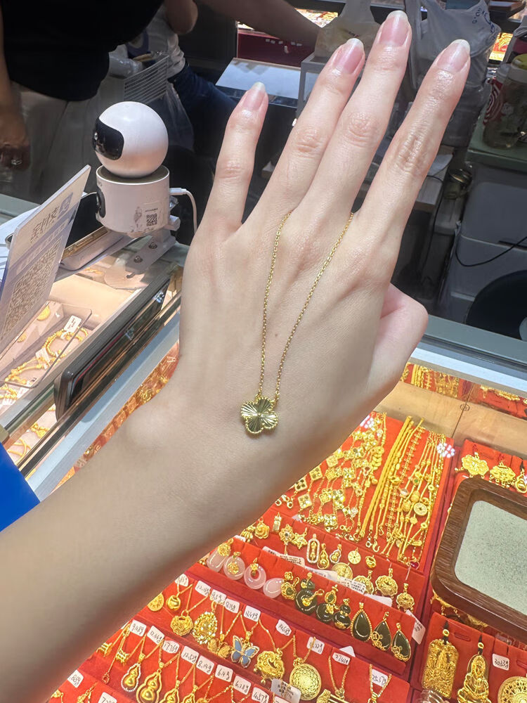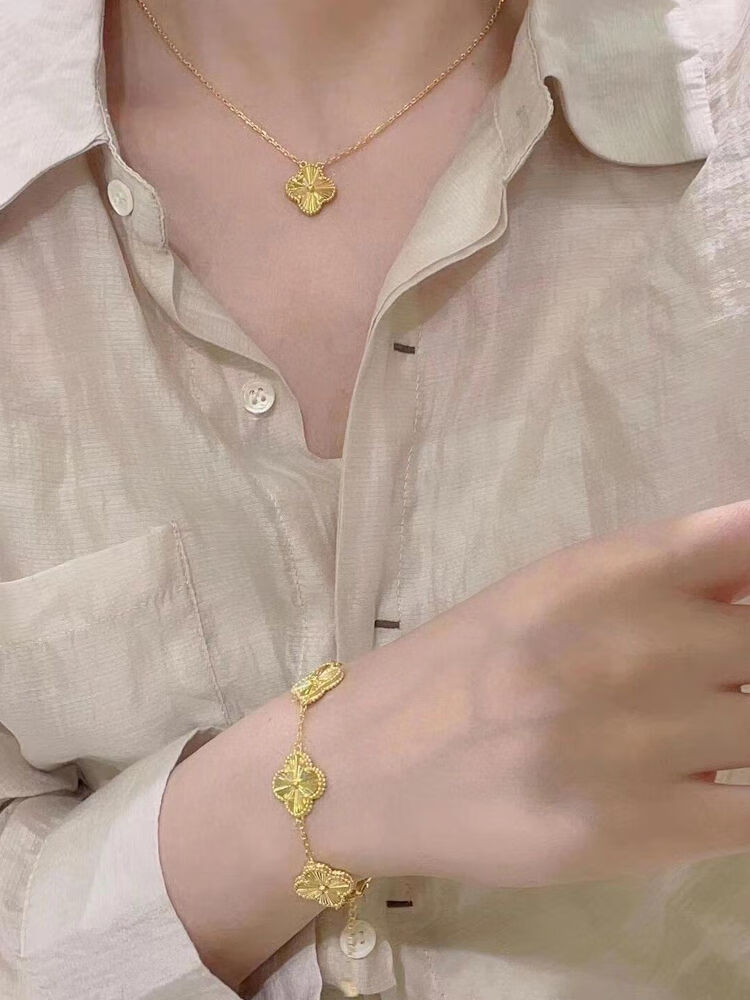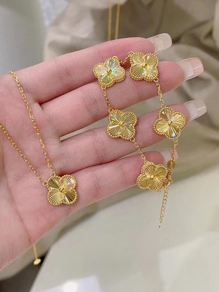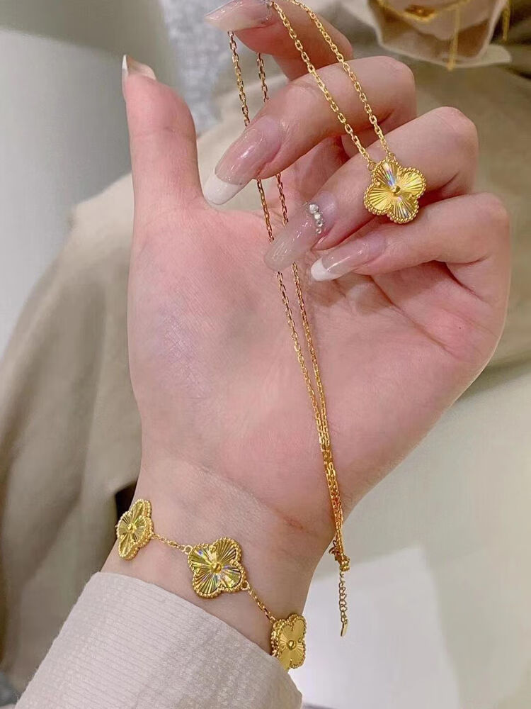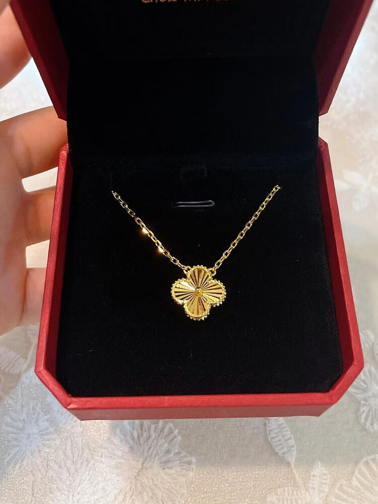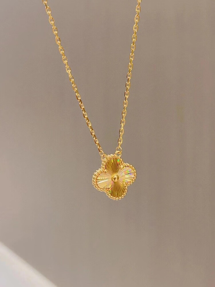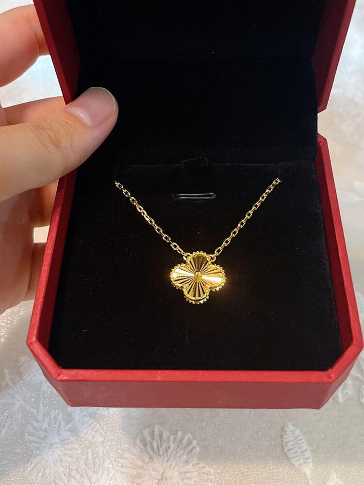 Hunter 18K gold-plated four-leaf clover necklace for women, gold clavicle chain, Valentine's Day gift, simulated gold pendant, lucky four-leaf flower, single flower-four-leaf clover necklace