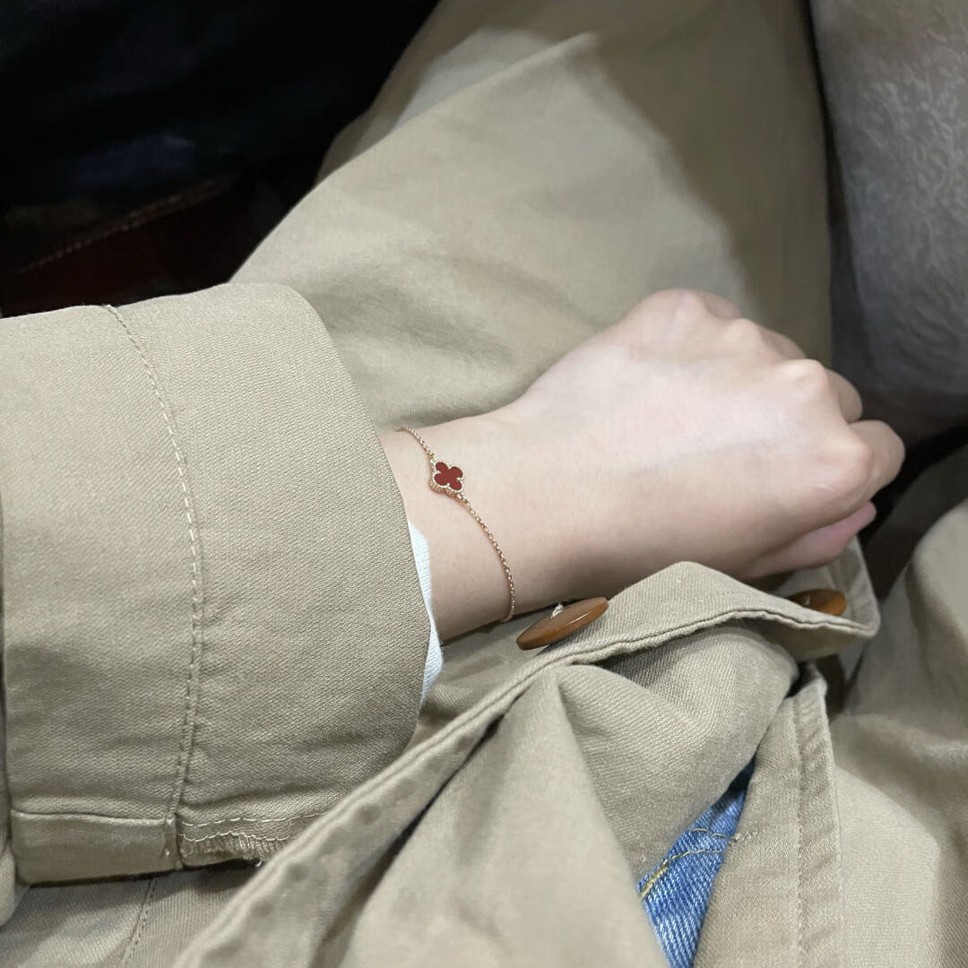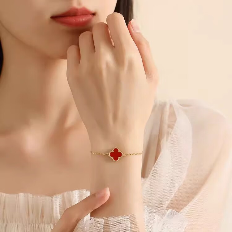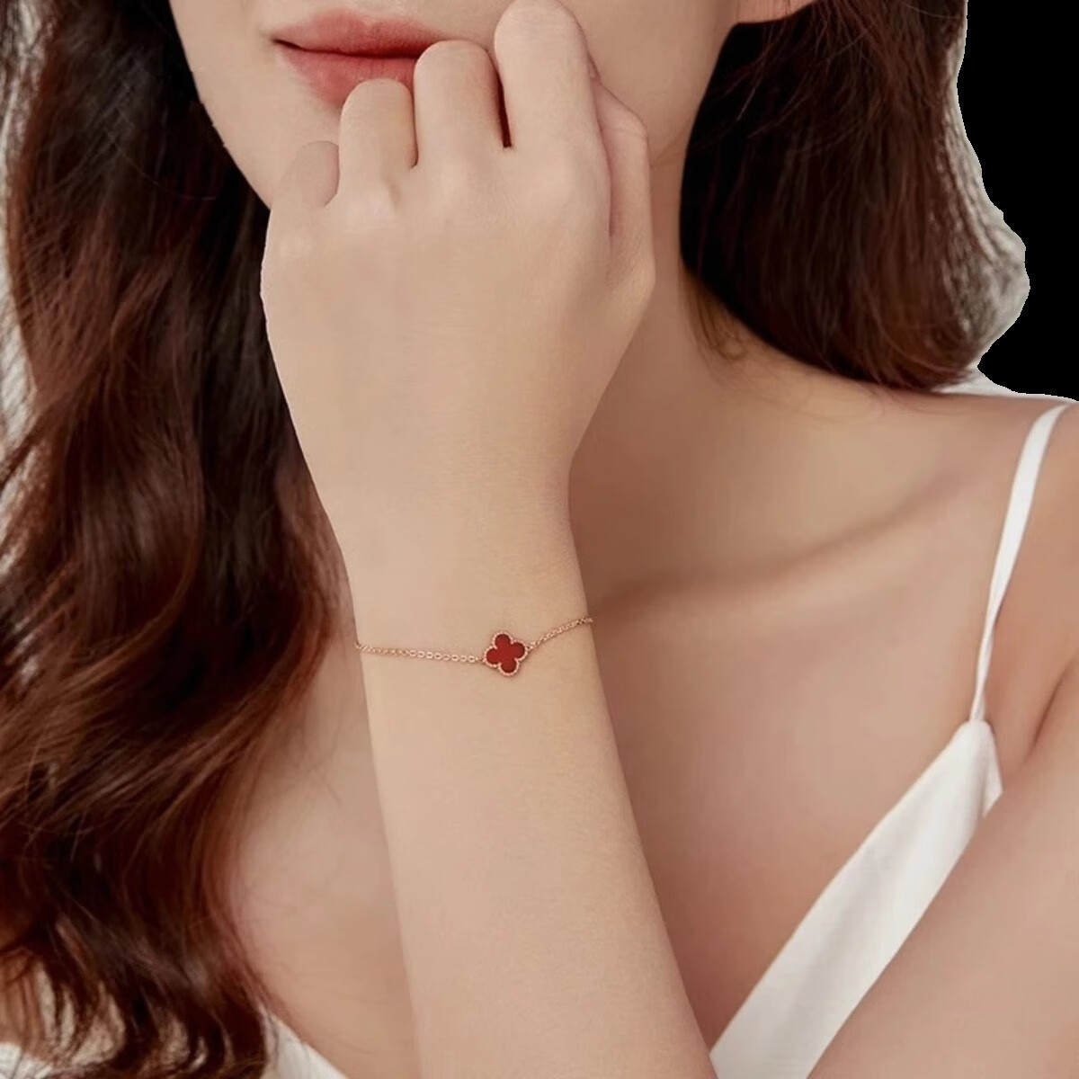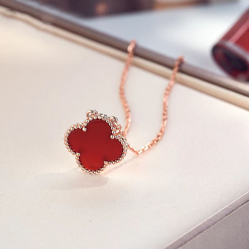 Lucky red four-leaf clover necklace 18k rose gold double-sided clavicle pendant bracelet light luxury internet celebrity same style female trend rose gold good luck necklace