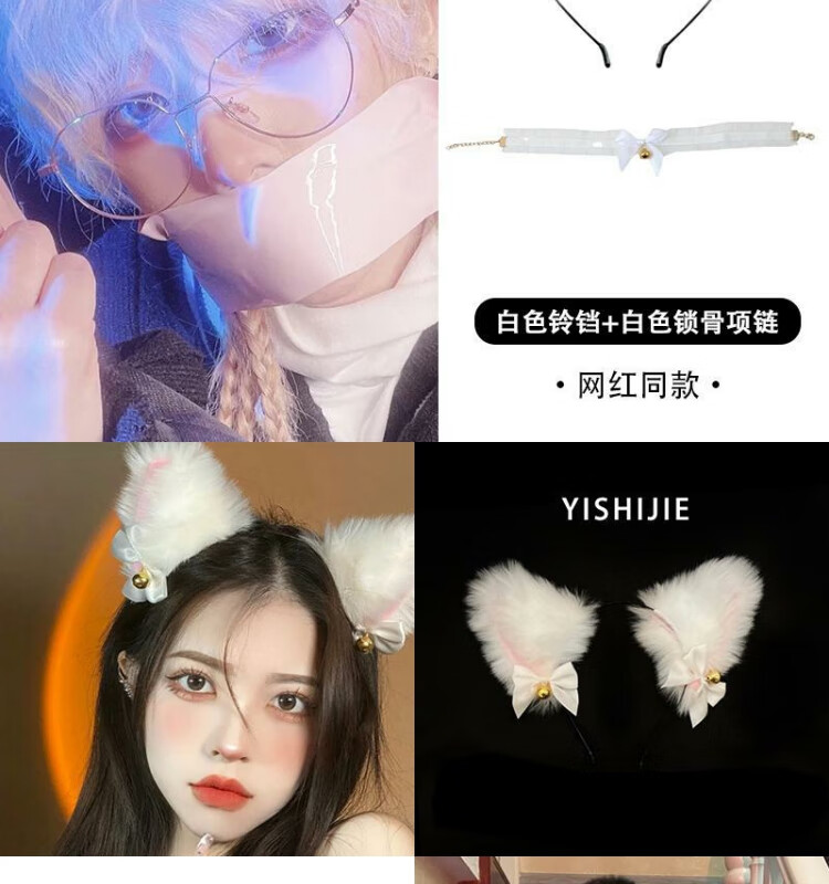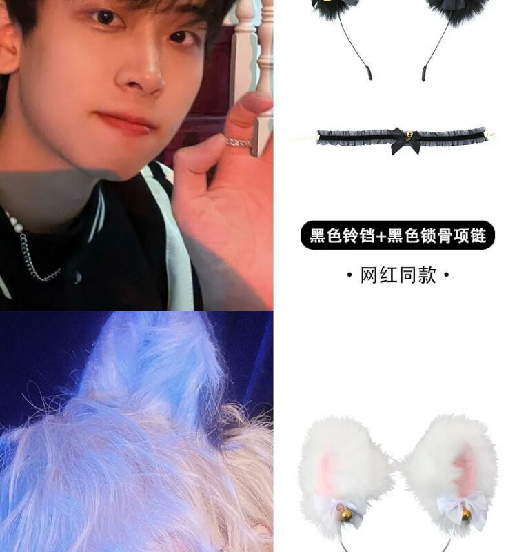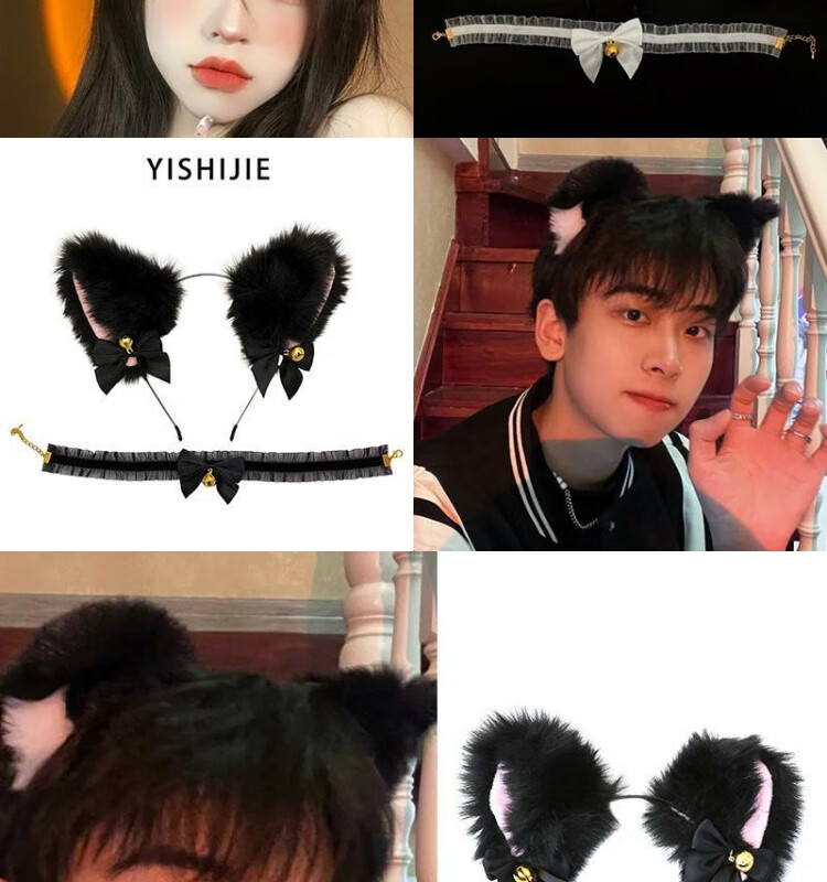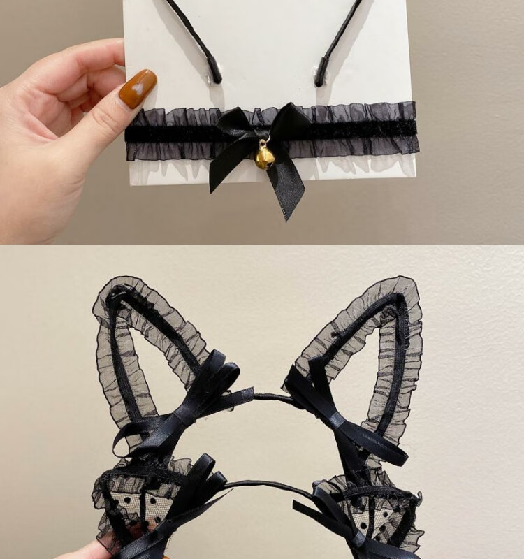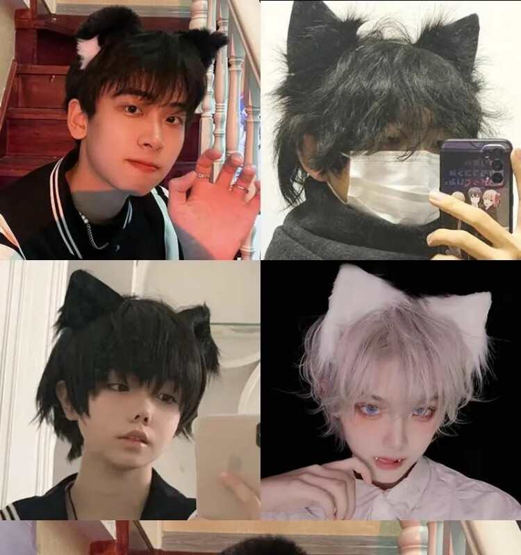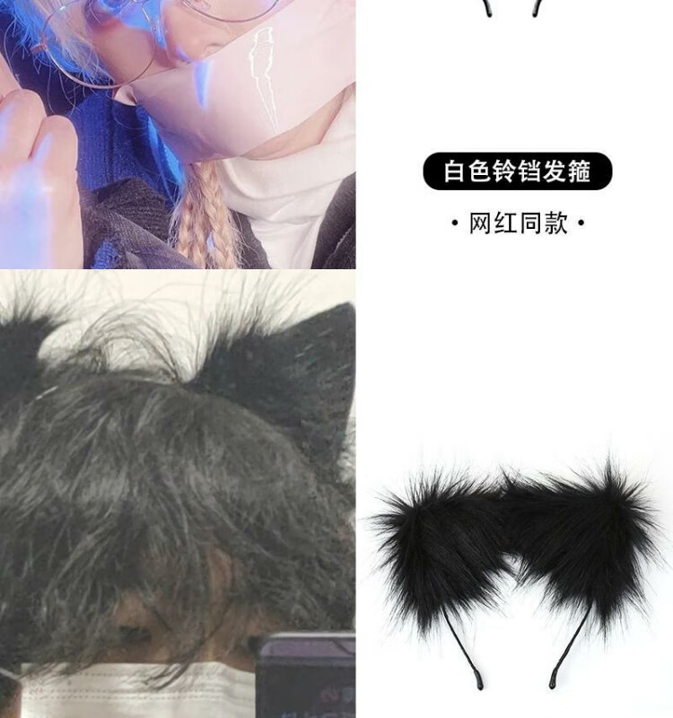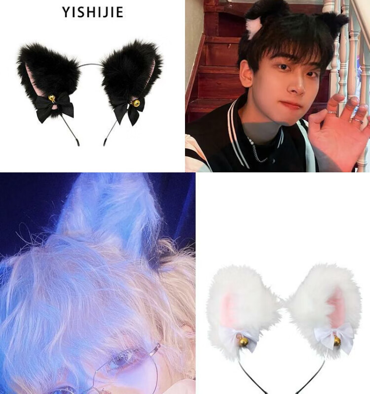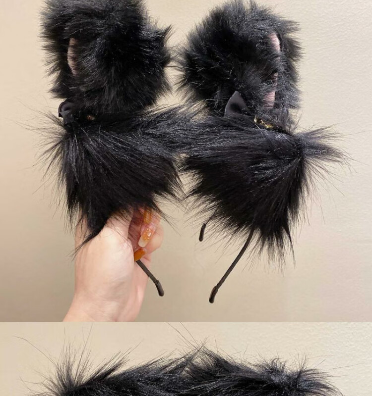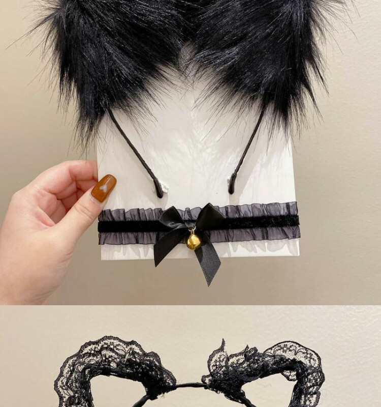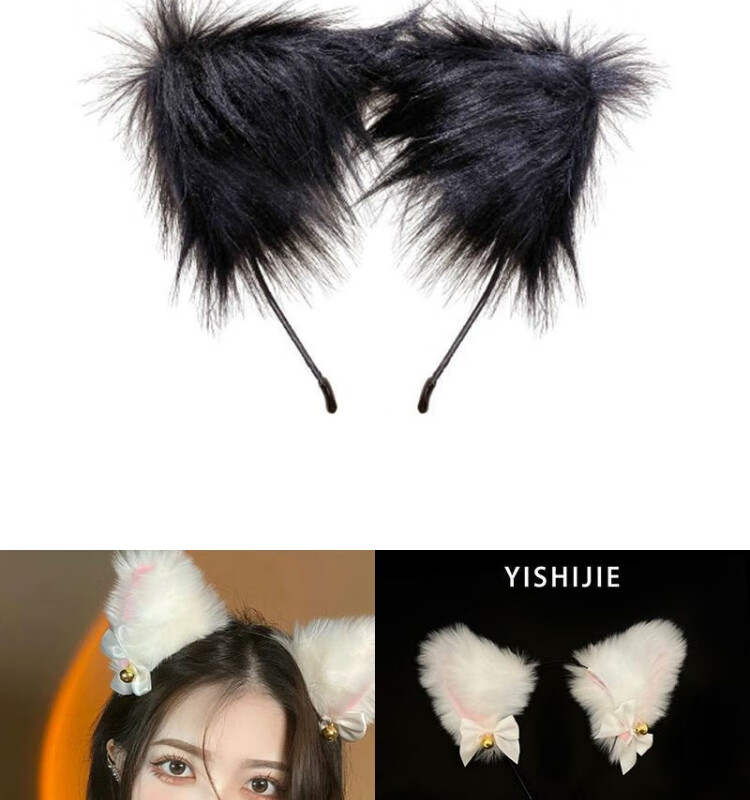 Shiyoushang Cat Ears Headwear Men's Simulated Wolf Ears Animal Ears Headband Headband Bell Cat Sexy Hair Accessories Hairpin Accessories 2 Pieces Black Bells