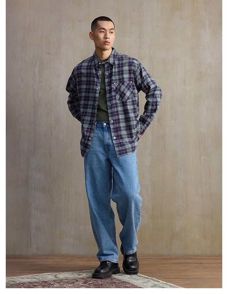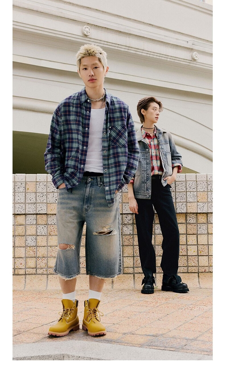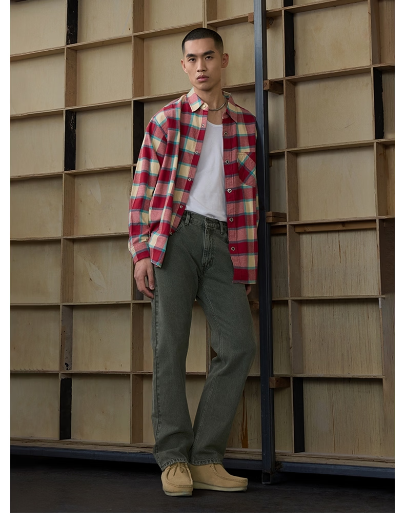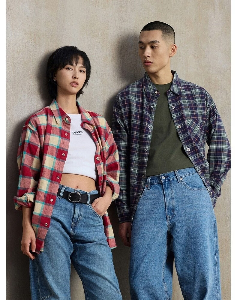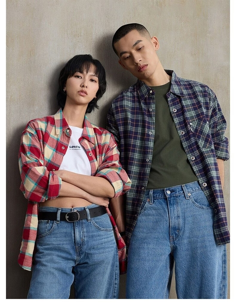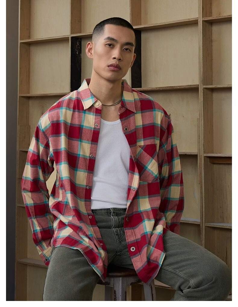 Levi's SilverTab new men's American retro plaid casual knitted shirt red and yellow L