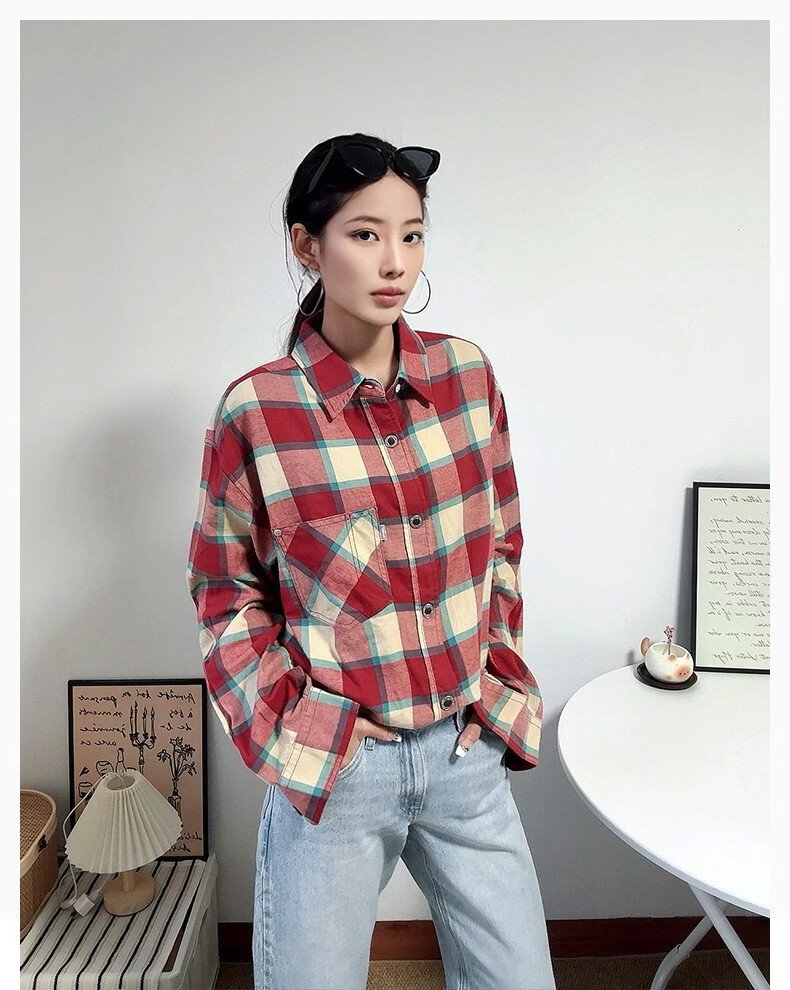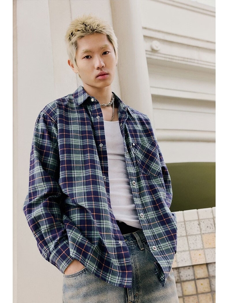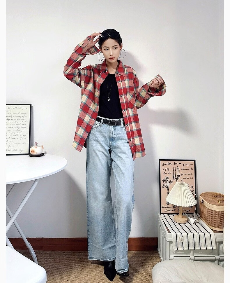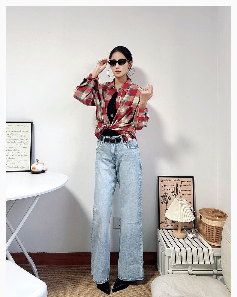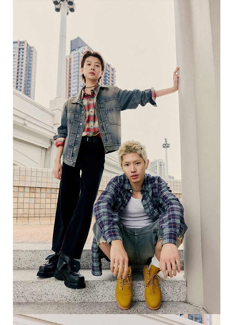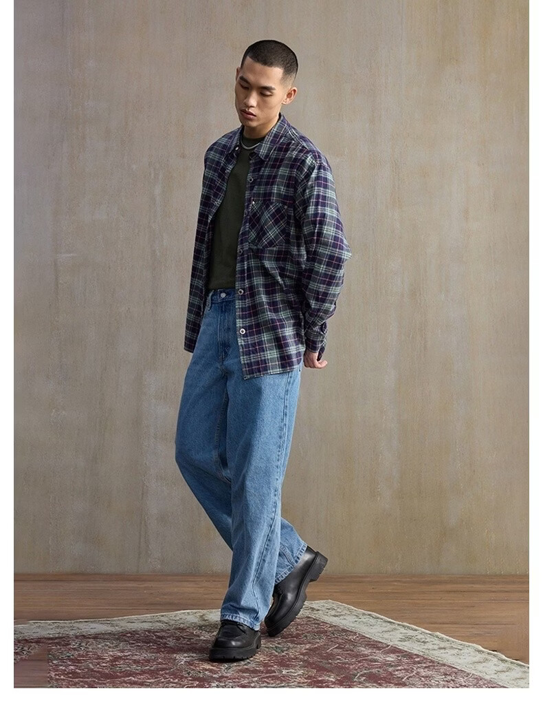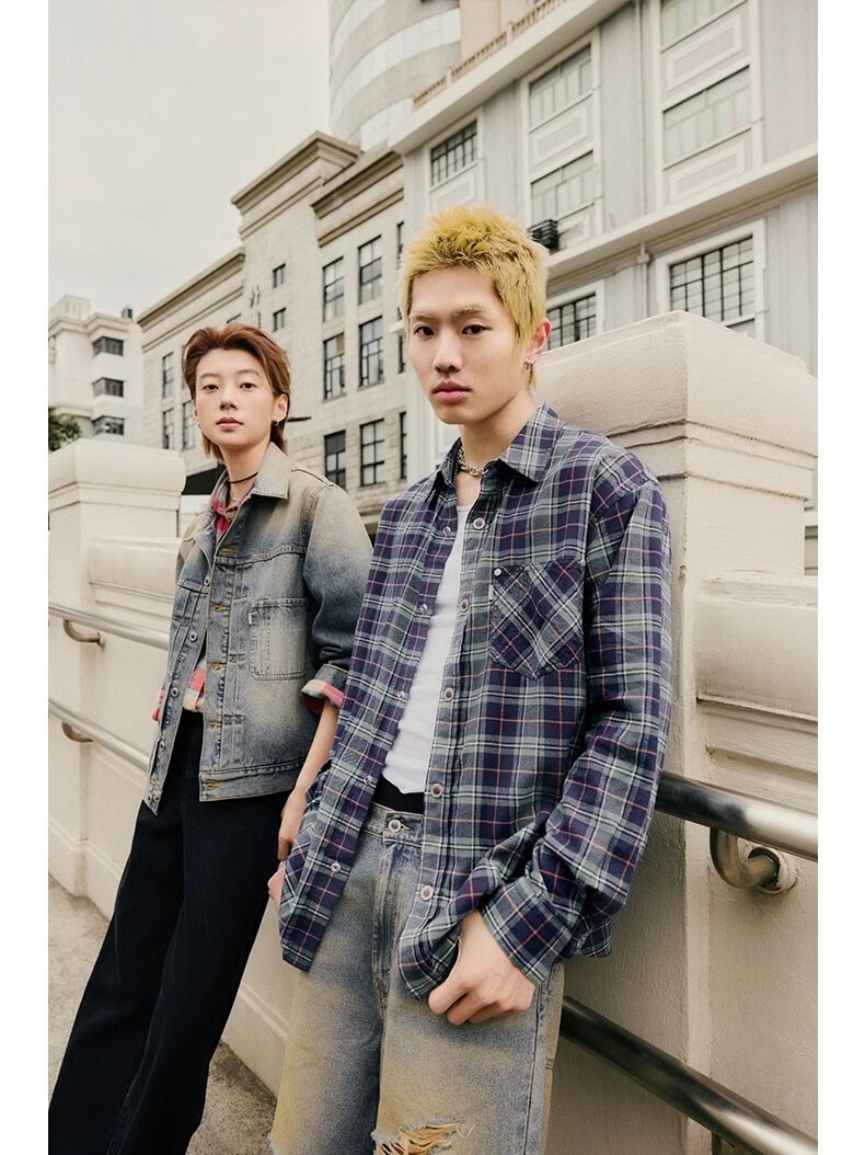 Levi's SilverTab new men's American retro plaid casual knitted shirt red and yellow L