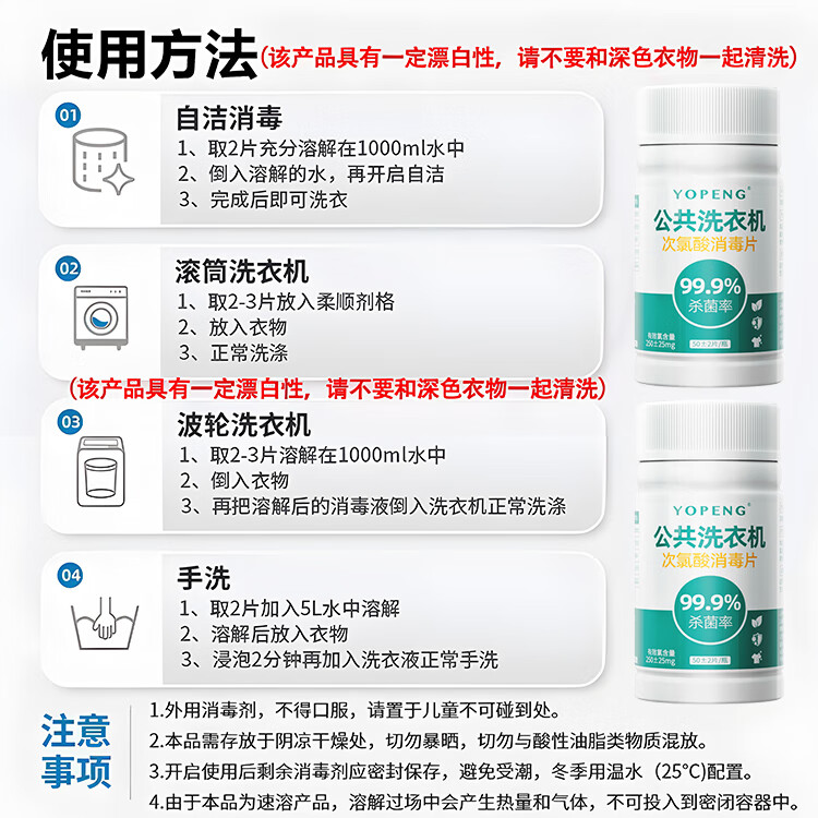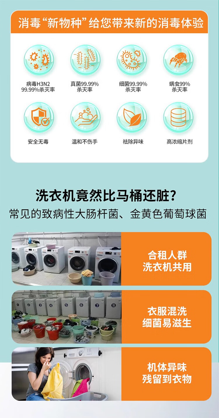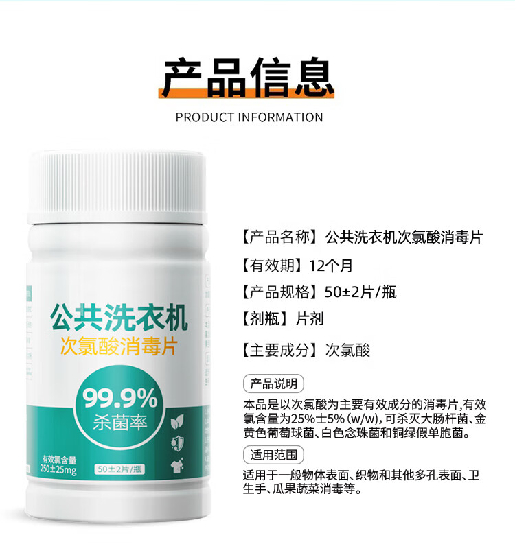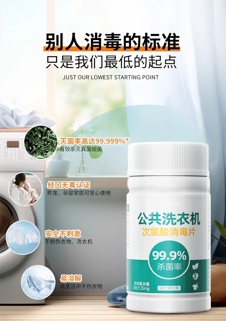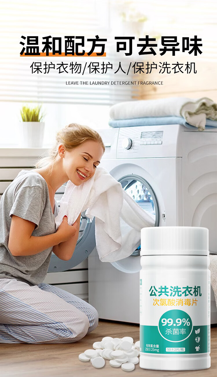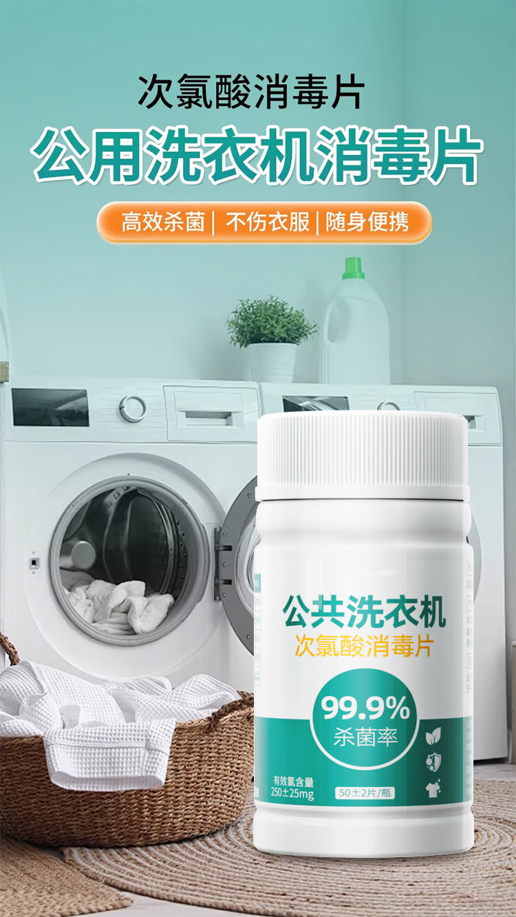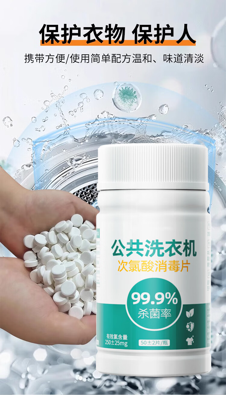 Public washing machine disinfection effervescent tablets clothing sterilization liquid hypochlorous acid disinfectant medical grade dormitory sterilization washing machine hypochlorous acid disinfection tablets 50 tablets-3 bottles