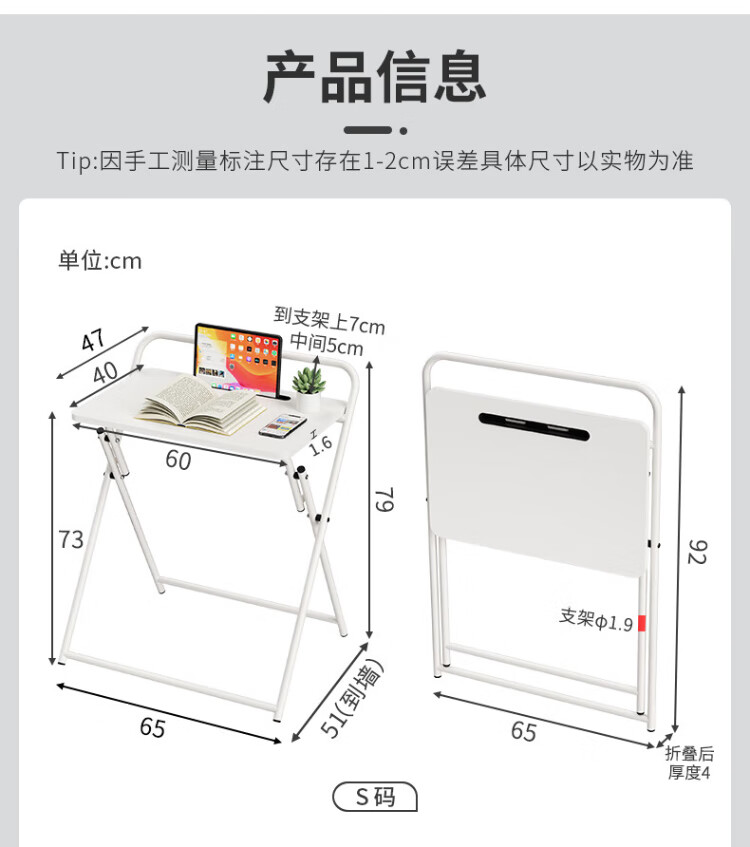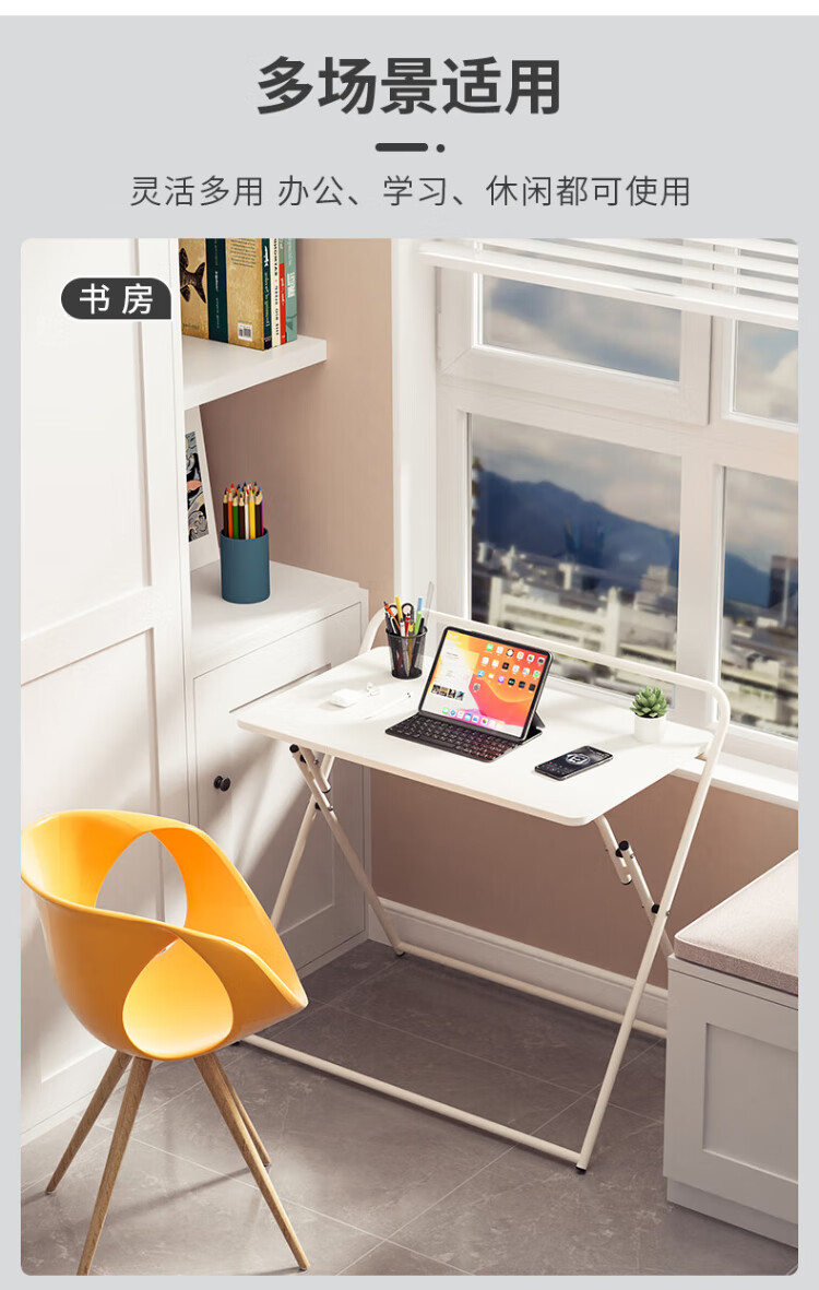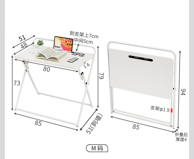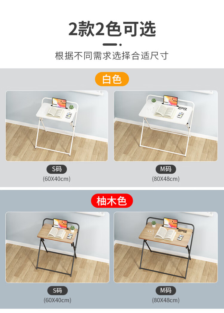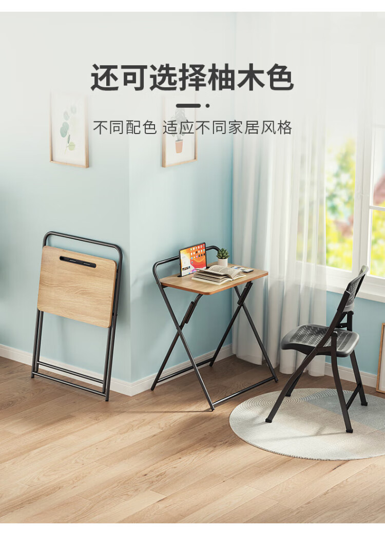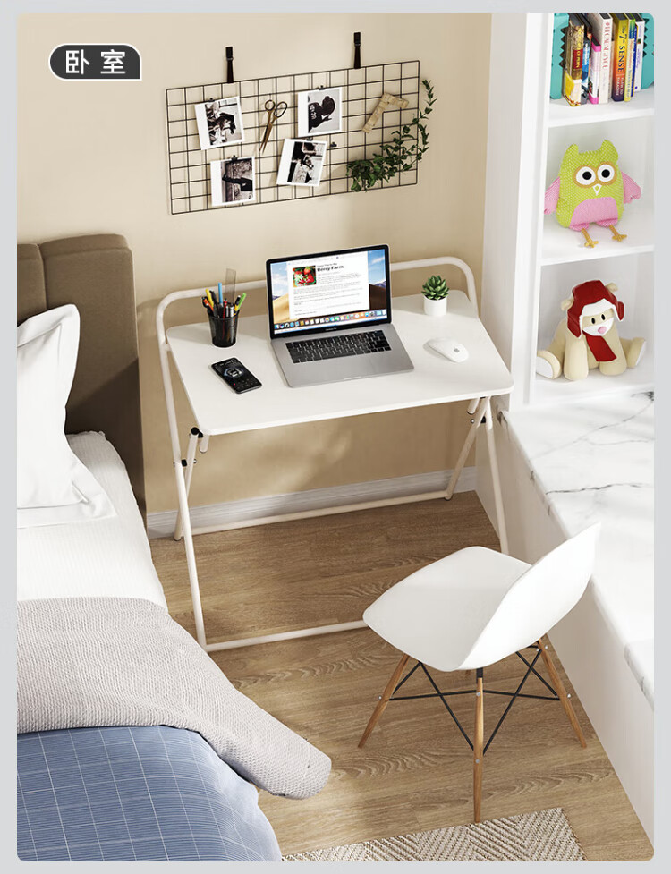 Shufusi foldable desk bedside computer table home student study table adult simple office writing table folding table M size 80x48cm teak color (no installation required)
