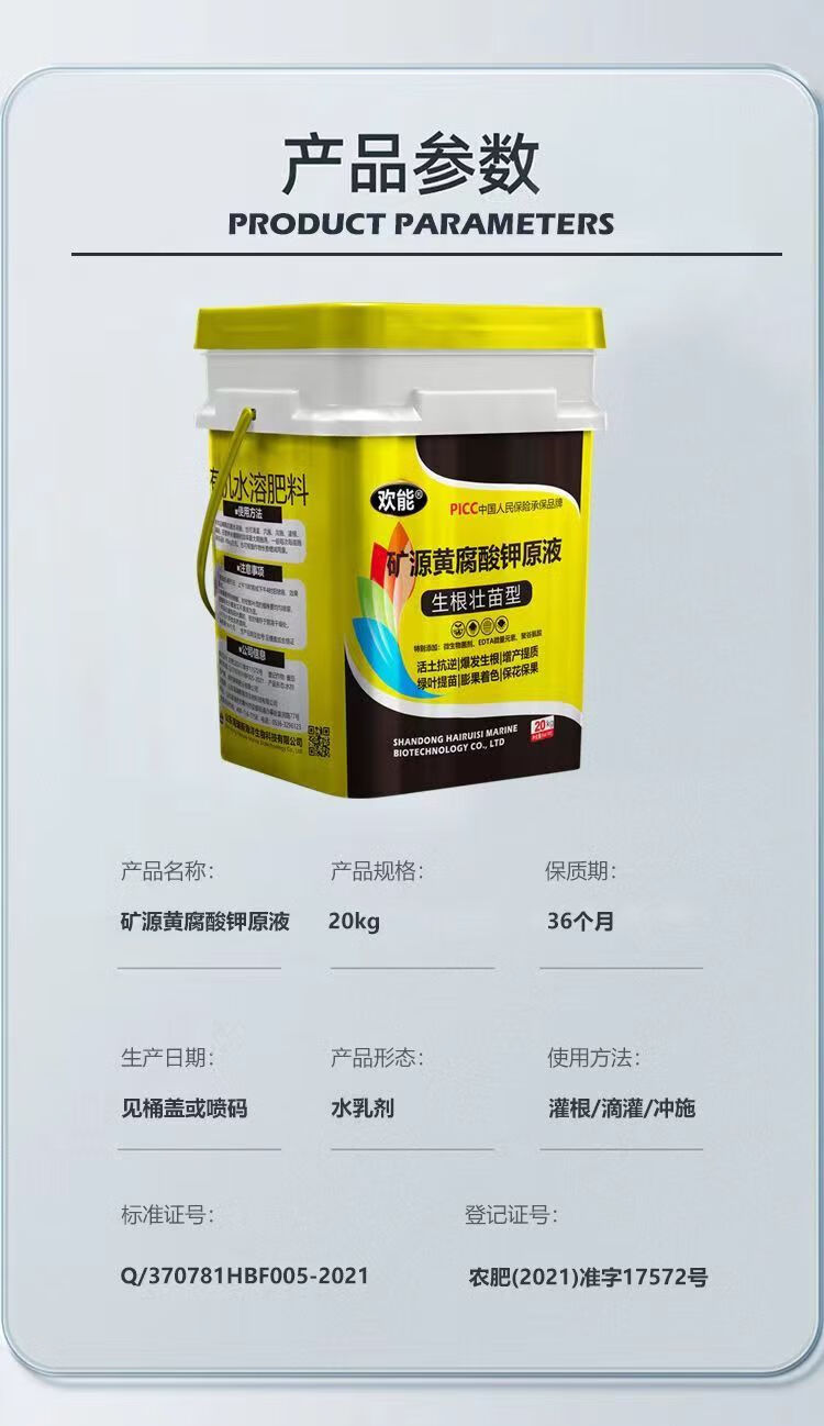Huaneng mineral source potassium fulvic acid water-soluble fertilizer for rooting and strengthening seedlings bucket fertilizer fertilization organic water-soluble fertilizer genuine vegetable and fruit tree mineral source potassium fulvic acid (square barrel) 20kg*1 barrel