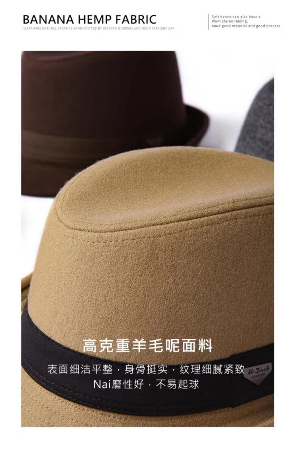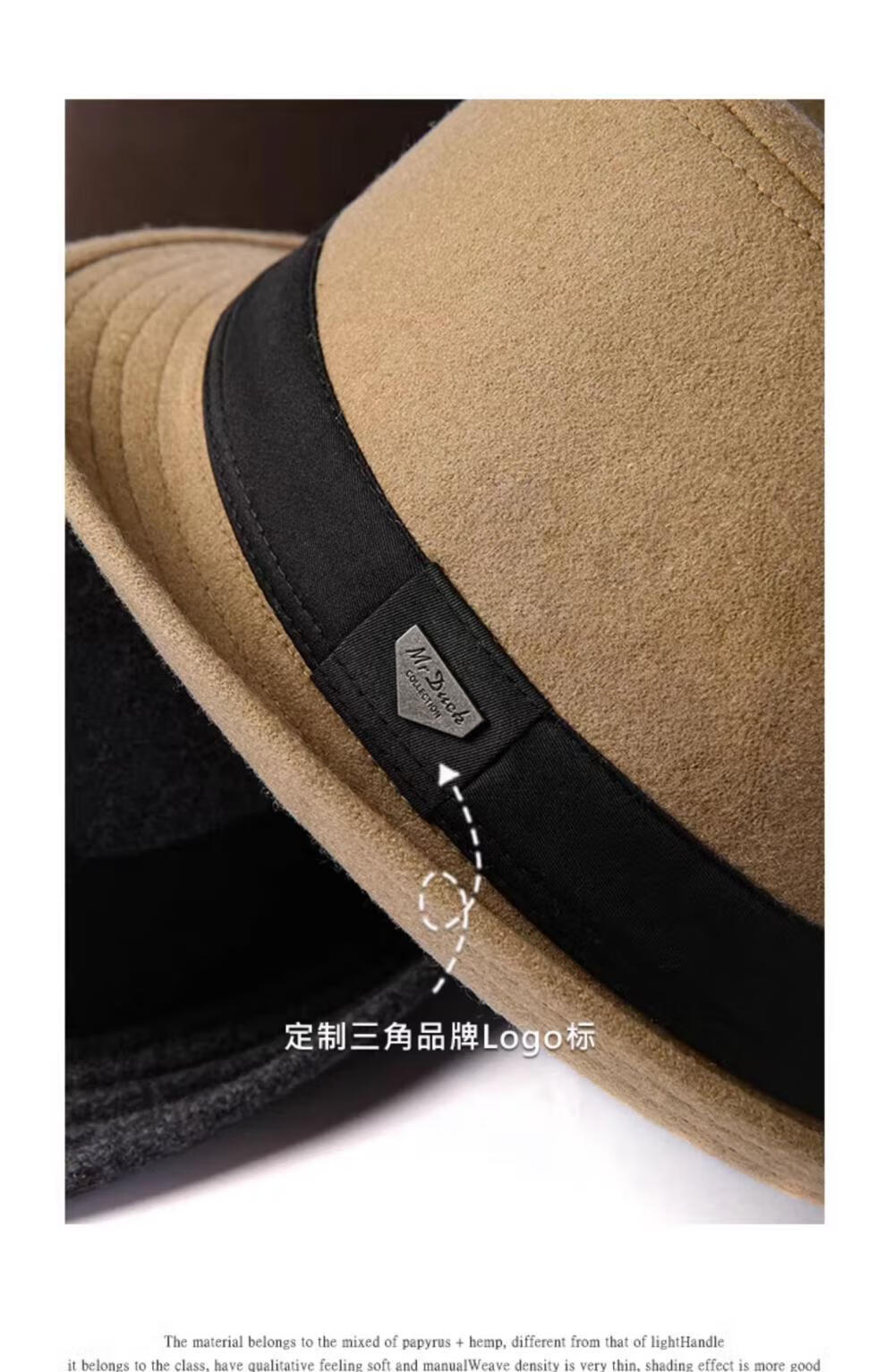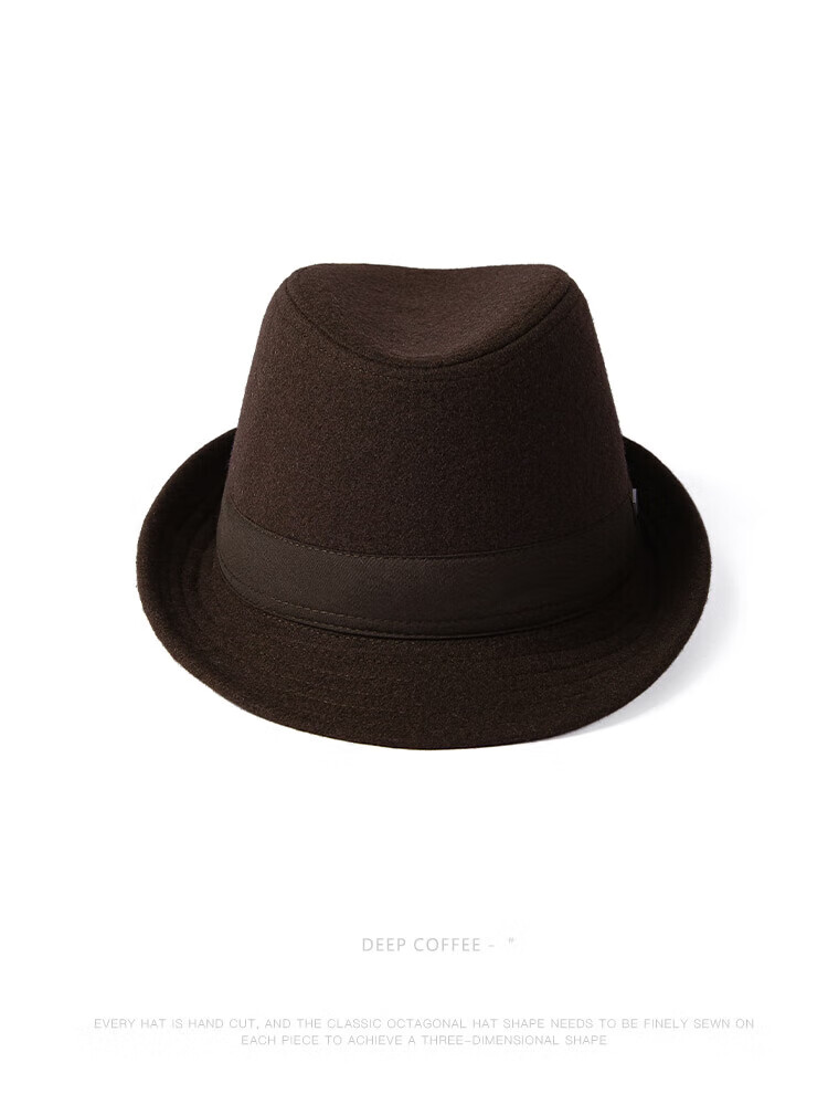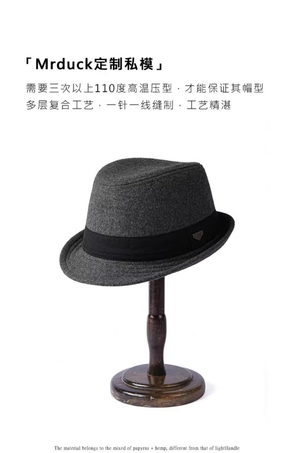 Mr DUCK British style retro hat High density densely woven wool semi-curled gentleman's hat for men and women autumn and winter MW13038 sheep wool material-dark coffee color (classic solid color L size (59-60cm)