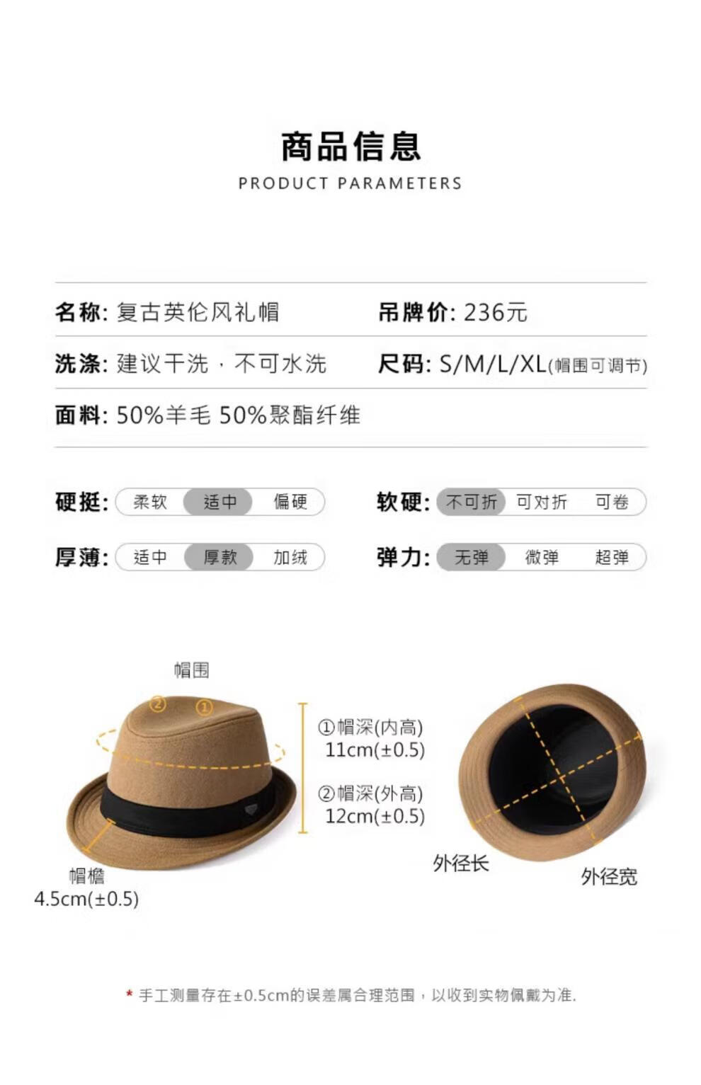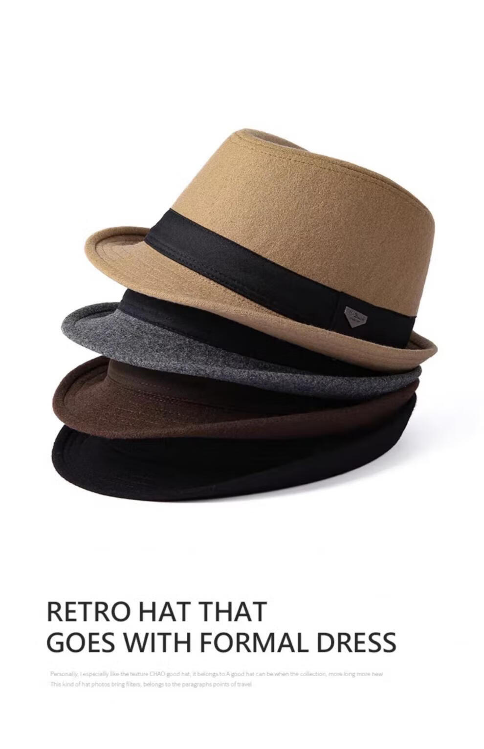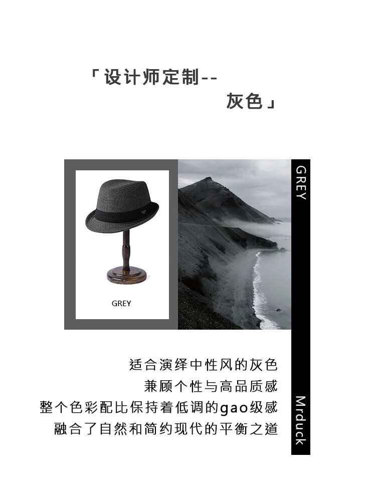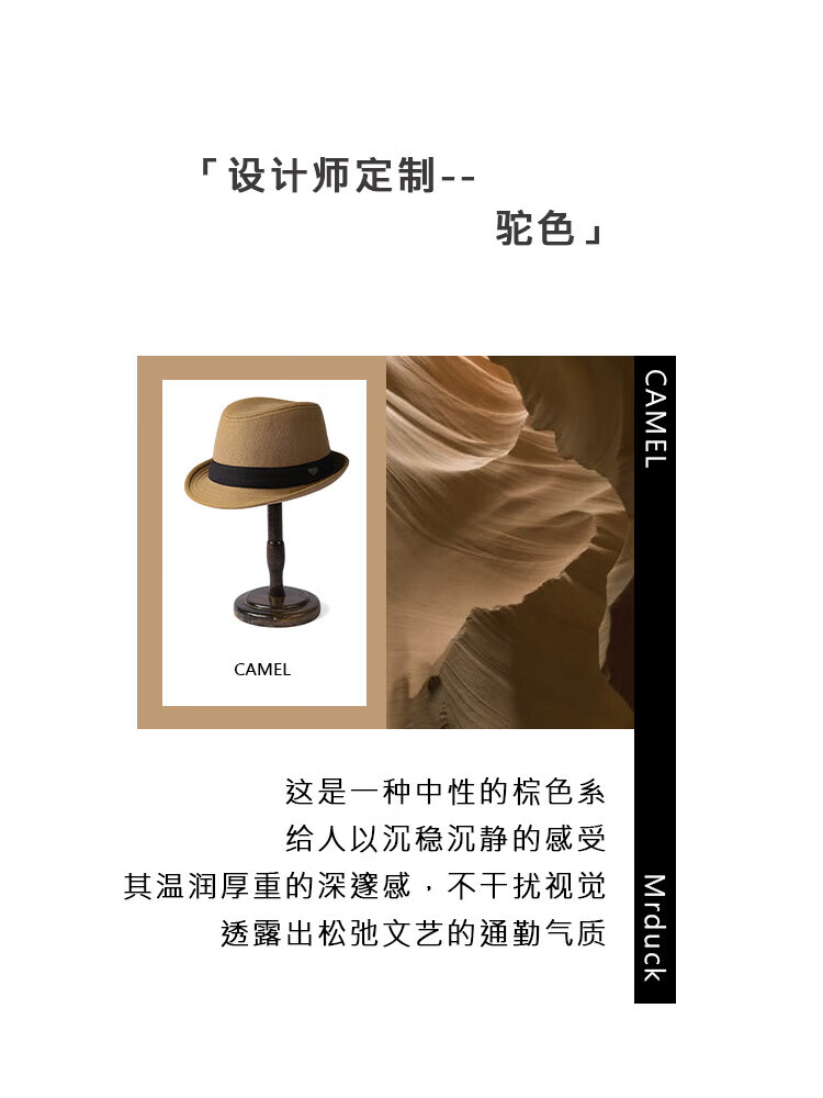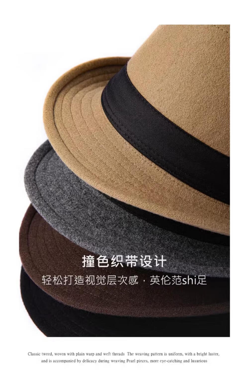 Mr DUCK British style retro hat High density densely woven wool semi-curled gentleman's hat for men and women autumn and winter MW13038 sheep wool material-dark coffee color (classic solid color L size (59-60cm)