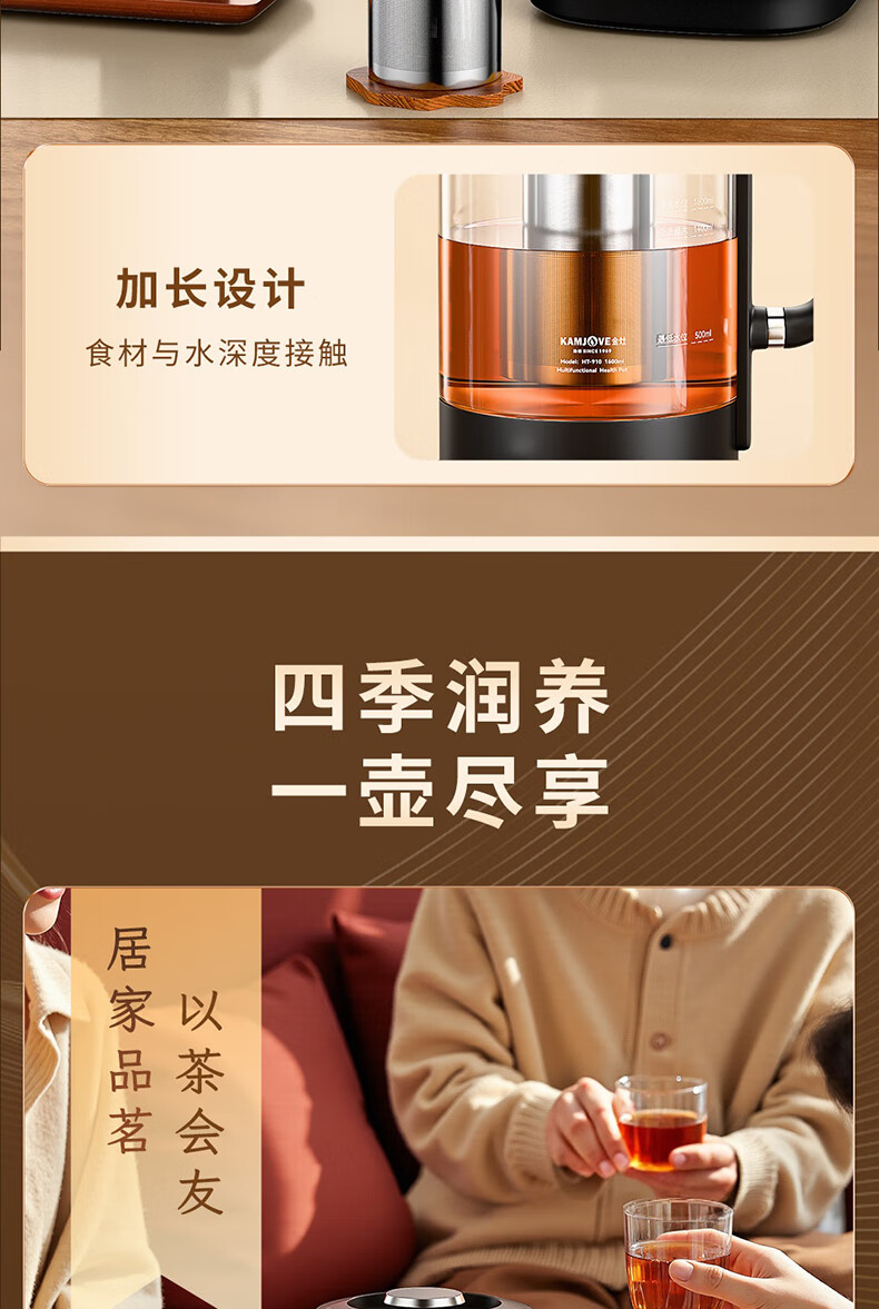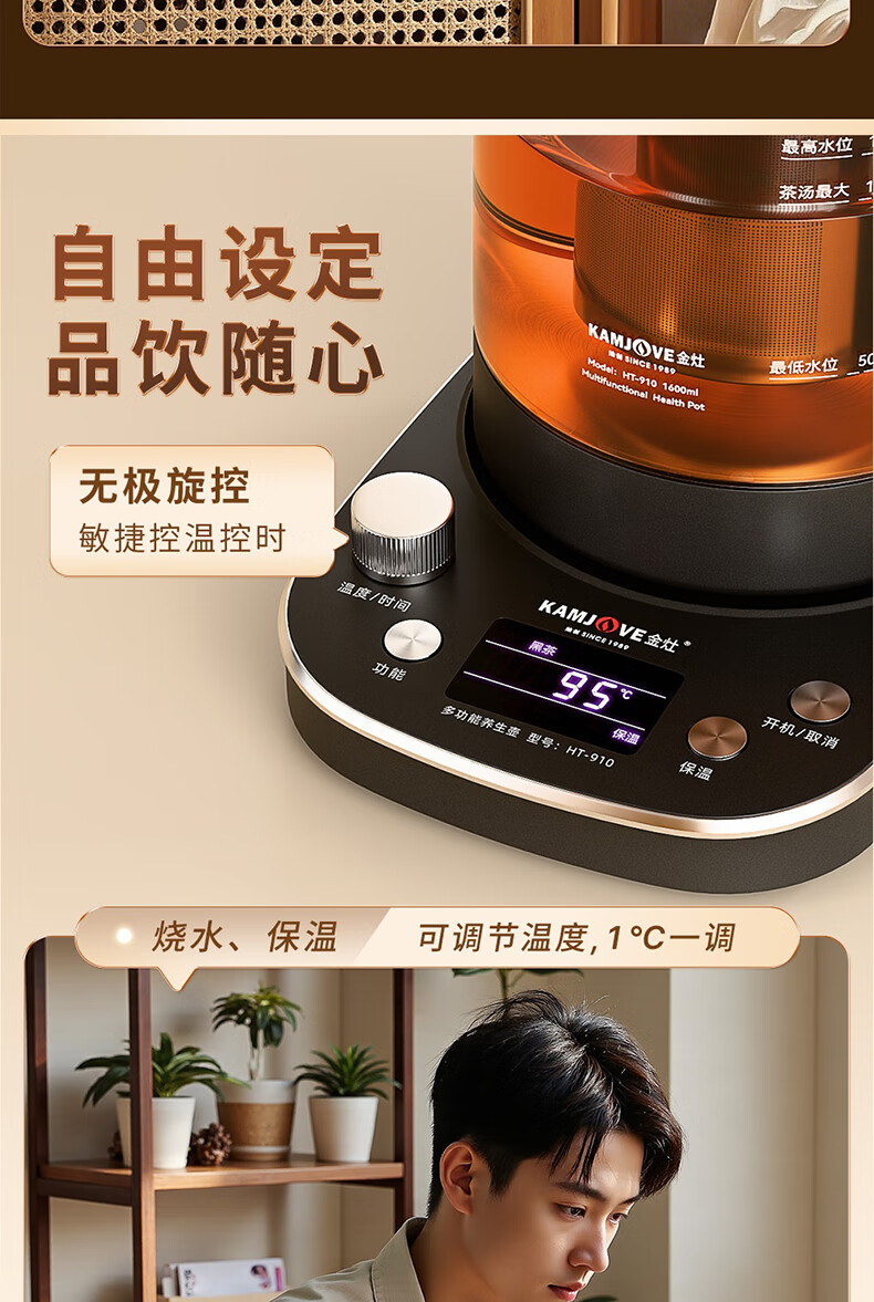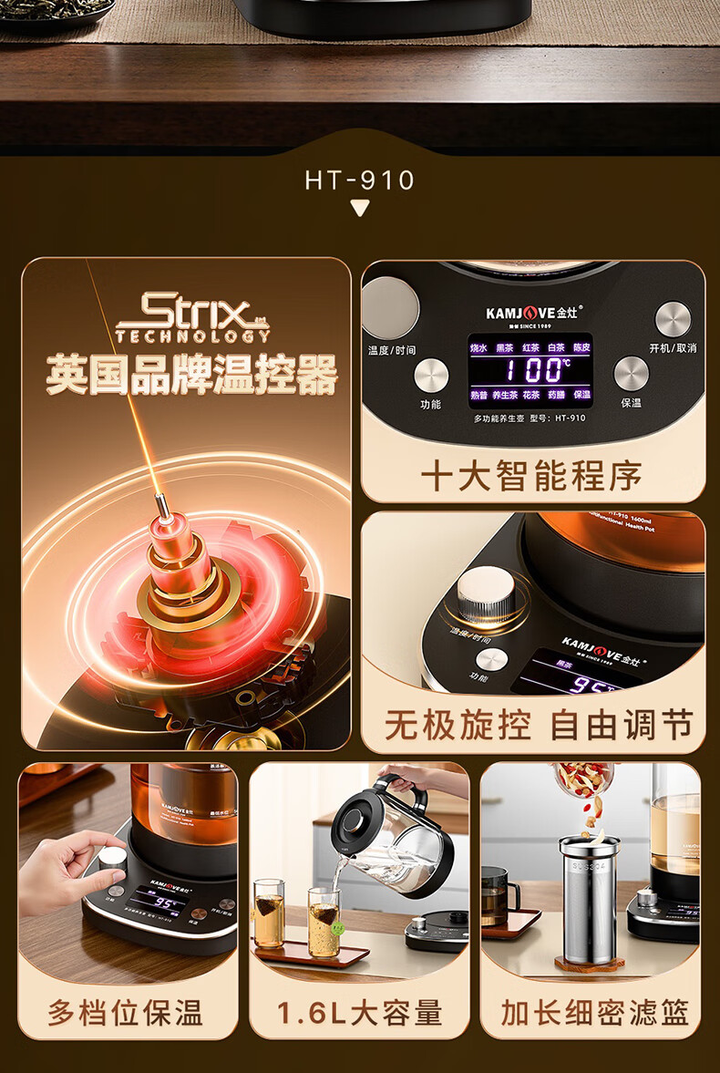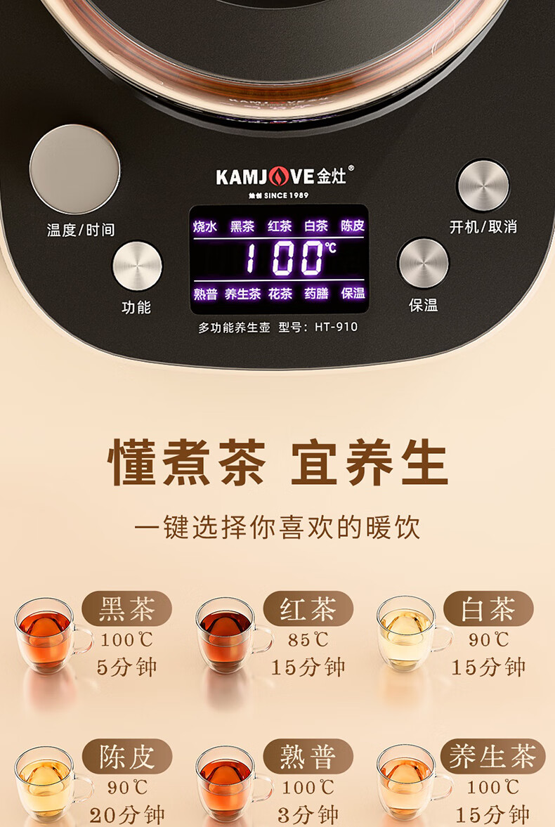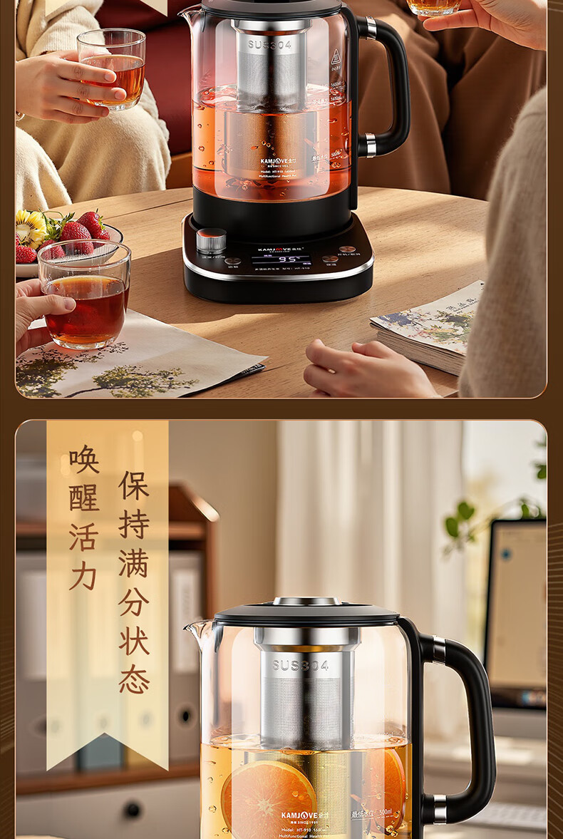 KAMJOVE tea maker, intelligent constant temperature tea kettle, home health pot, stew kettle, fully automatic 1.6L large capacity kettle, office boiling water and tea all-in-one machine HT-910, fully automatic tea kettle 1.6L