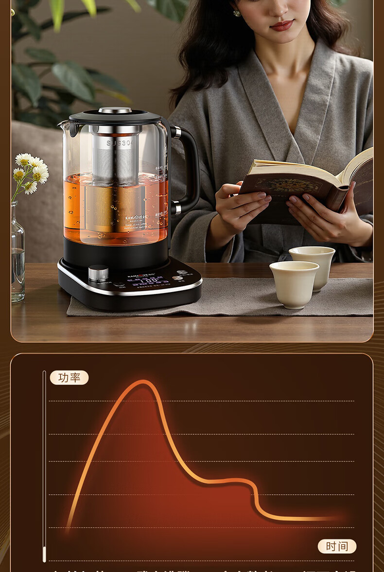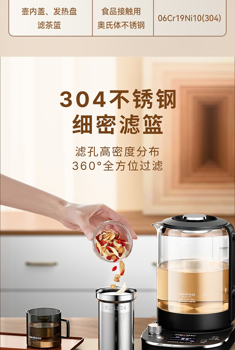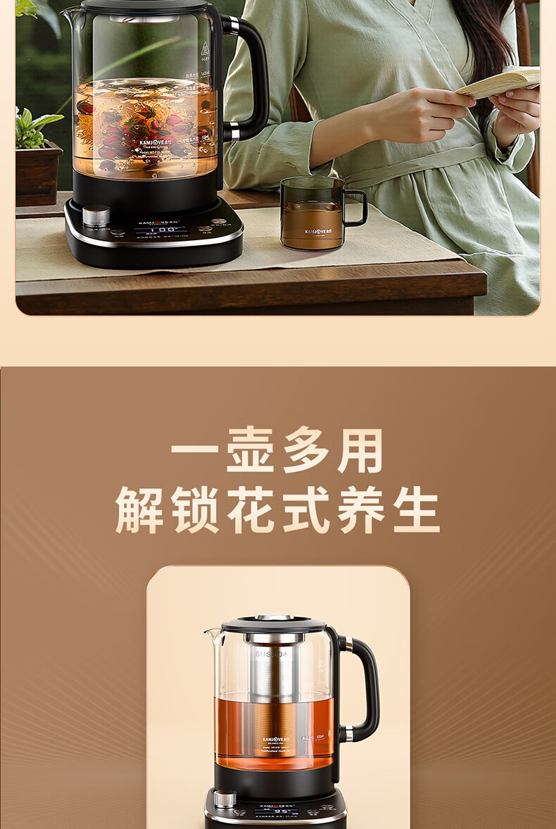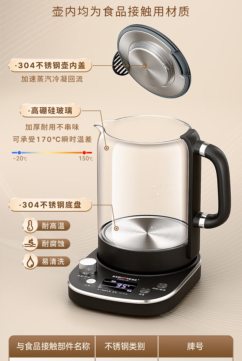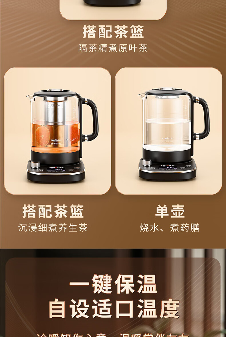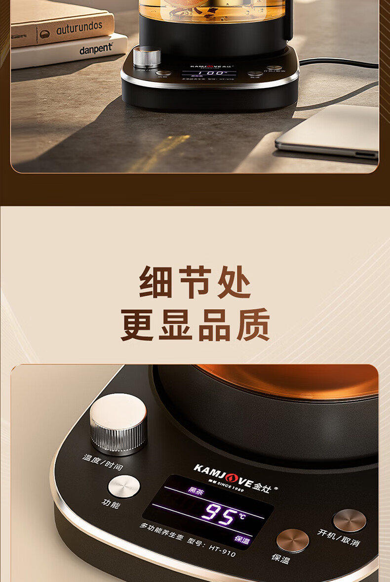 KAMJOVE tea maker, intelligent constant temperature tea kettle, home health pot, stew kettle, fully automatic 1.6L large capacity kettle, office boiling water and tea all-in-one machine HT-910, fully automatic tea kettle 1.6L