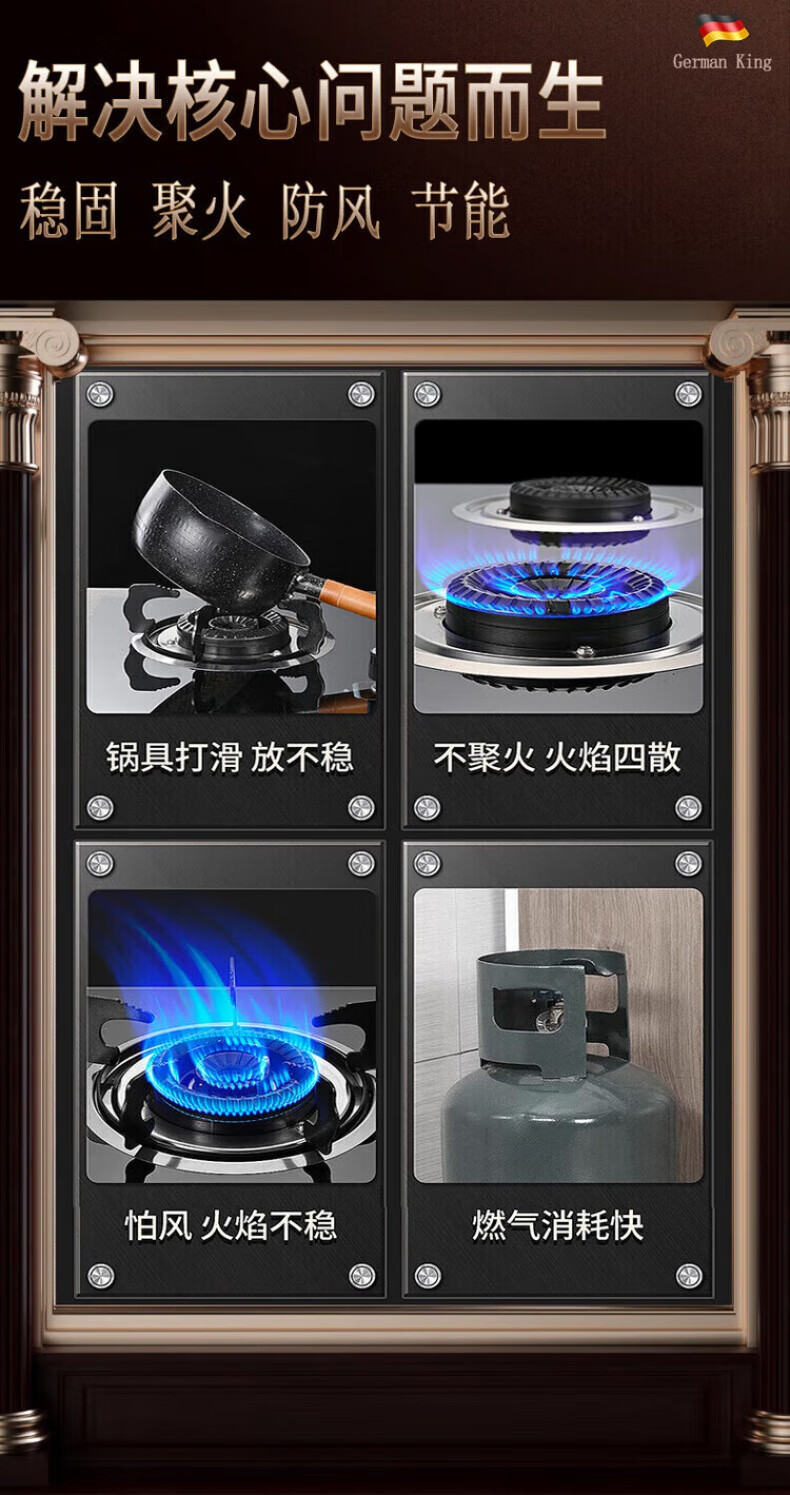 Немецкая газовая плита Sawang Ветрозащитная крышка для сбора огня Нержавеющая сталь Универсальный кронштейн для печи Бытовая стойка Противоскользящая Энергосберегающая крышка Энергосберегающая ветрозащитная крышка для сбора огня Четыре когтя 1