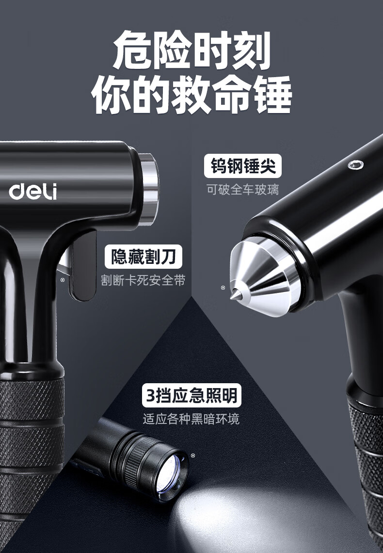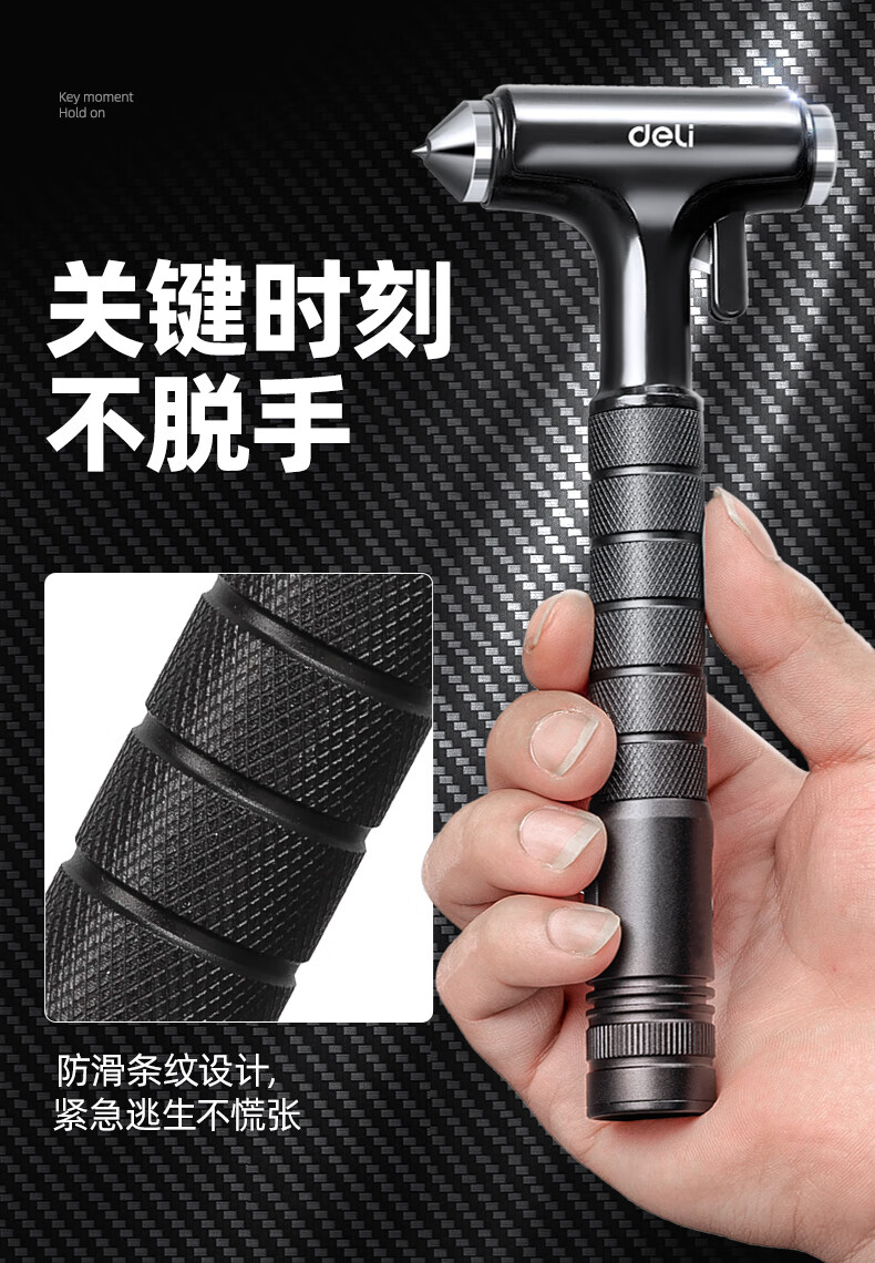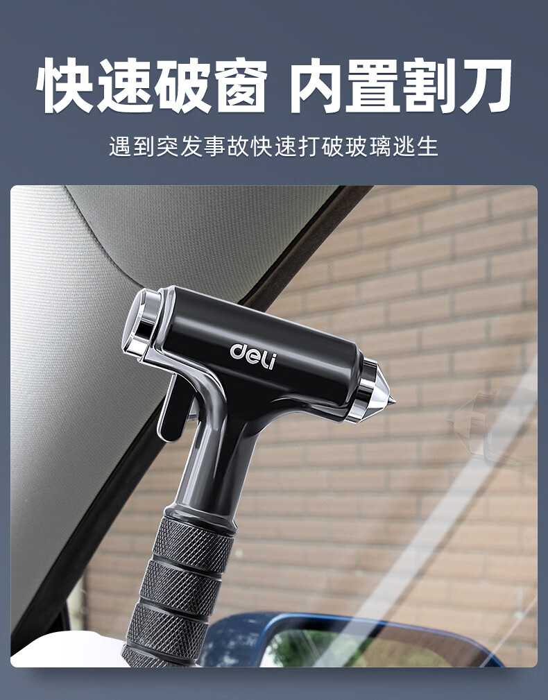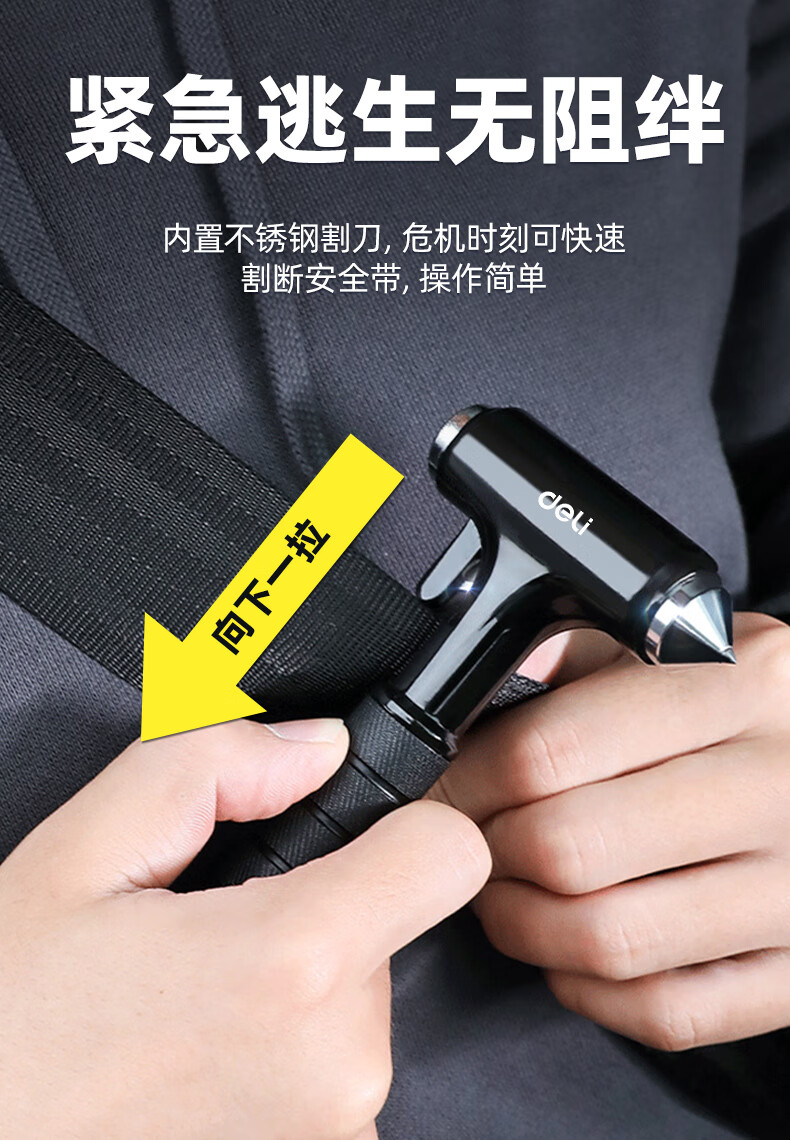 Jingyouyu German safety hammer, car window-breaking artifact with cutter, fire emergency life-saving hammer for escaping from broken glass in the car, special grade tungsten steel, black three-in-one